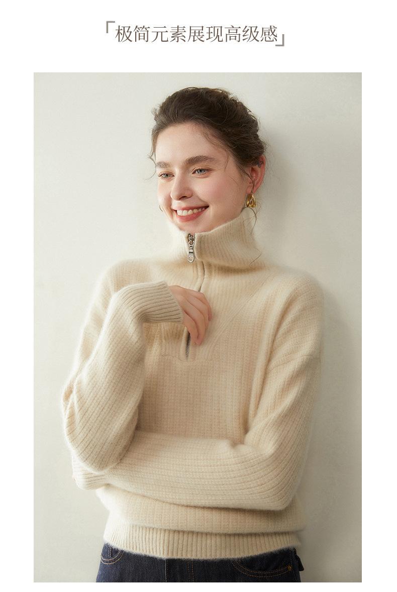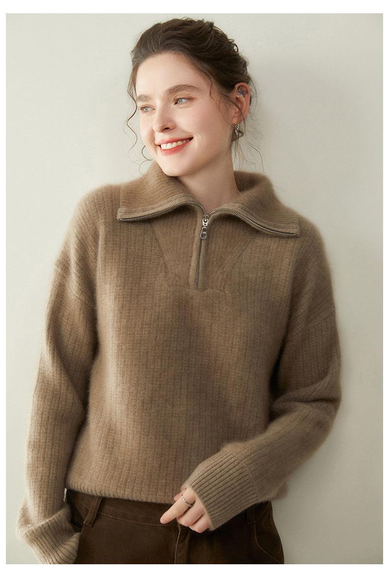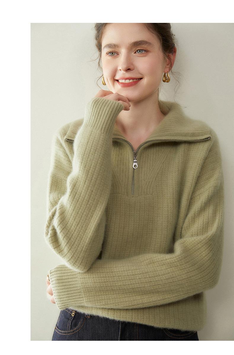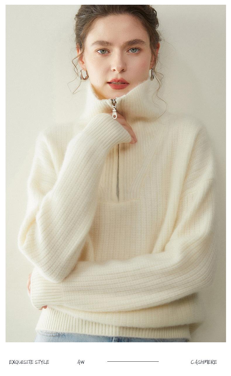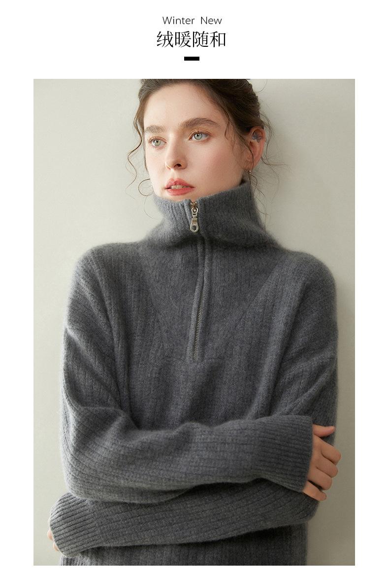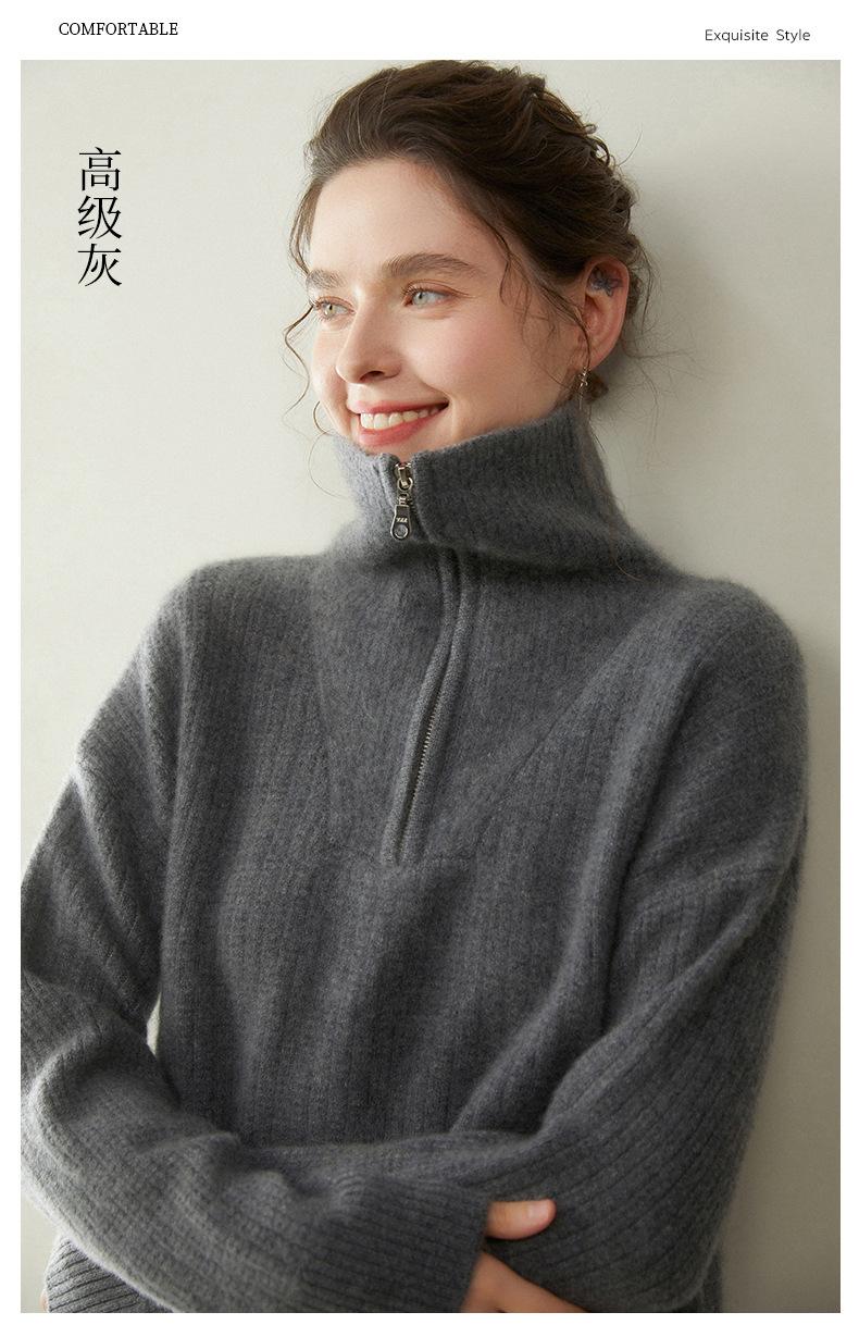 Suéter de Cachemira Otoño/Invierno 2025 para Mujer Cuello Alto con Media Cremallera Suéter de Punto Grueso Suéter Holgado Jersey de Capa Base