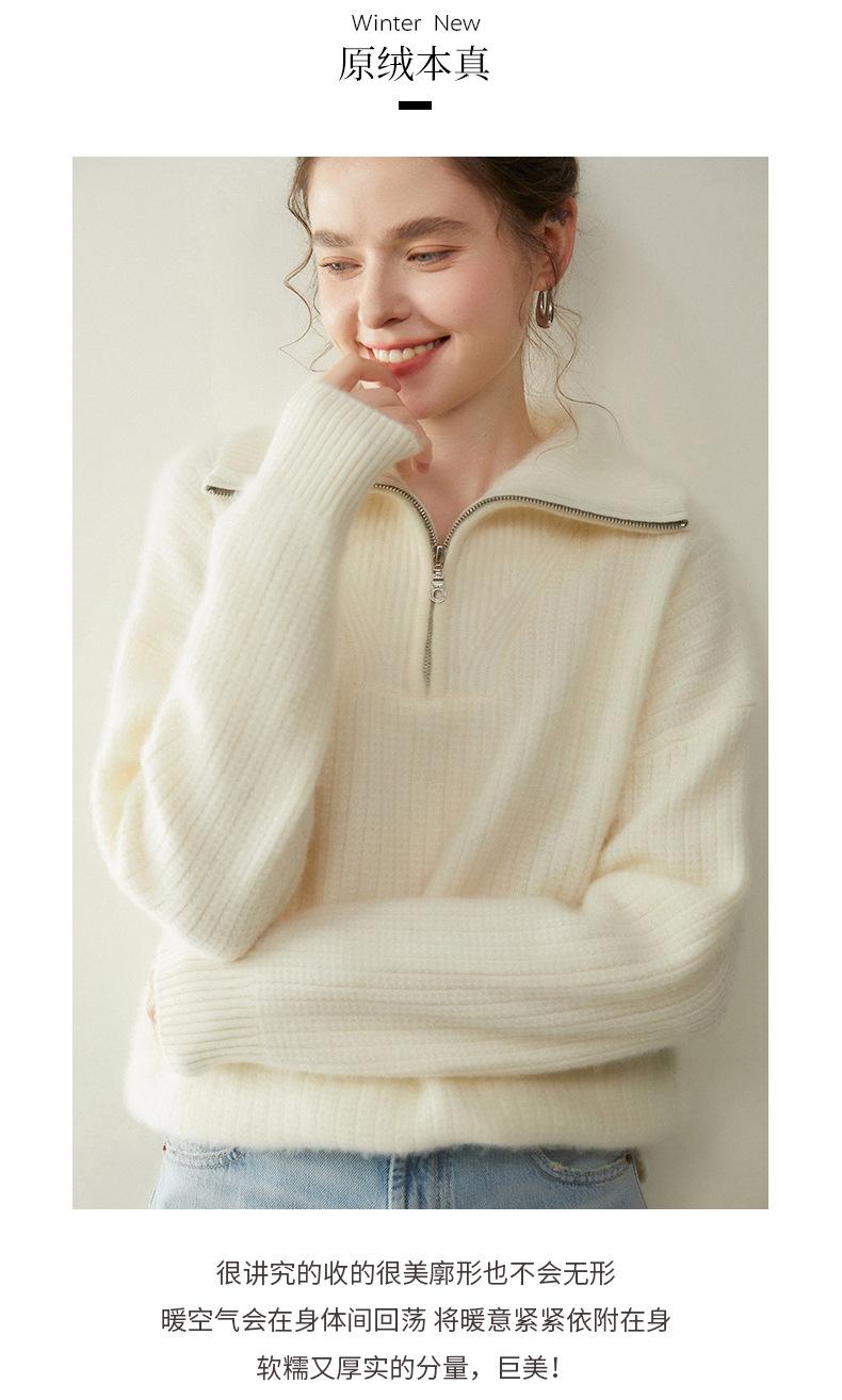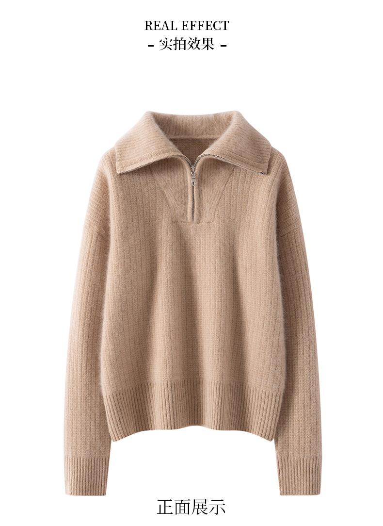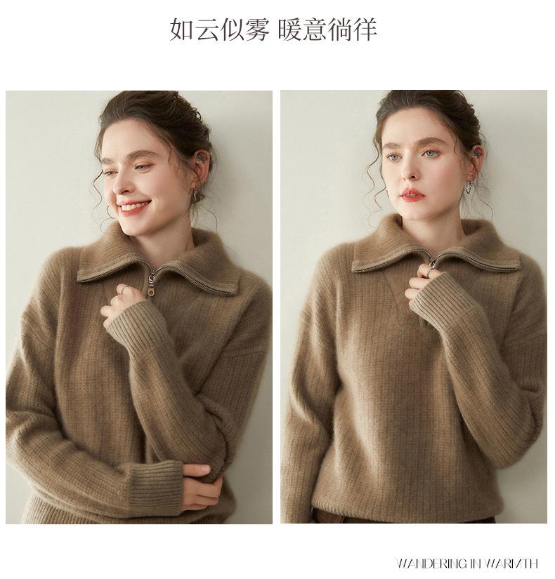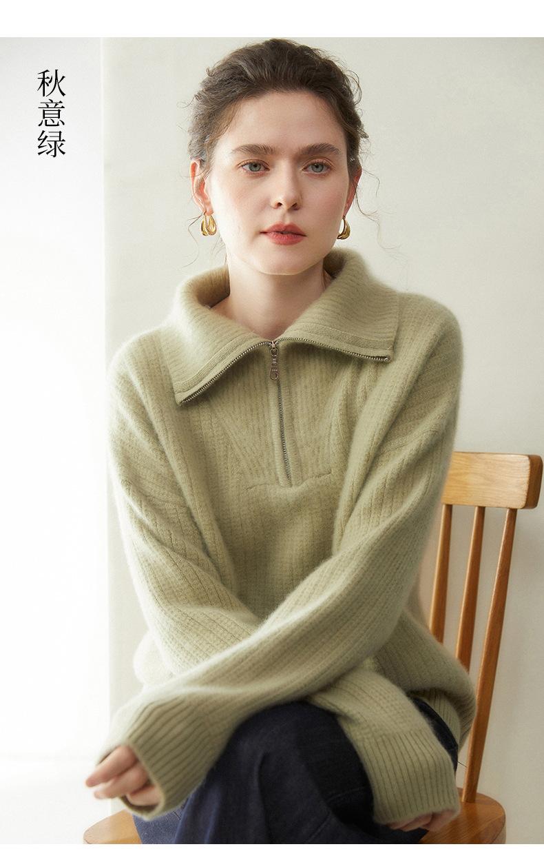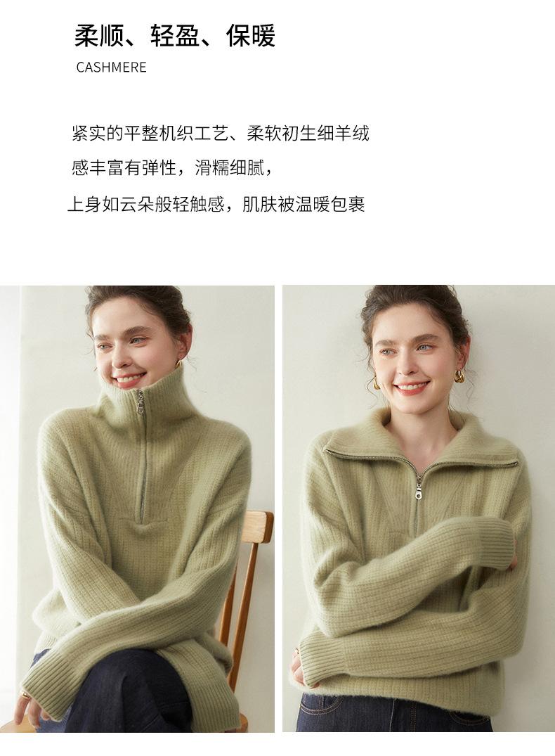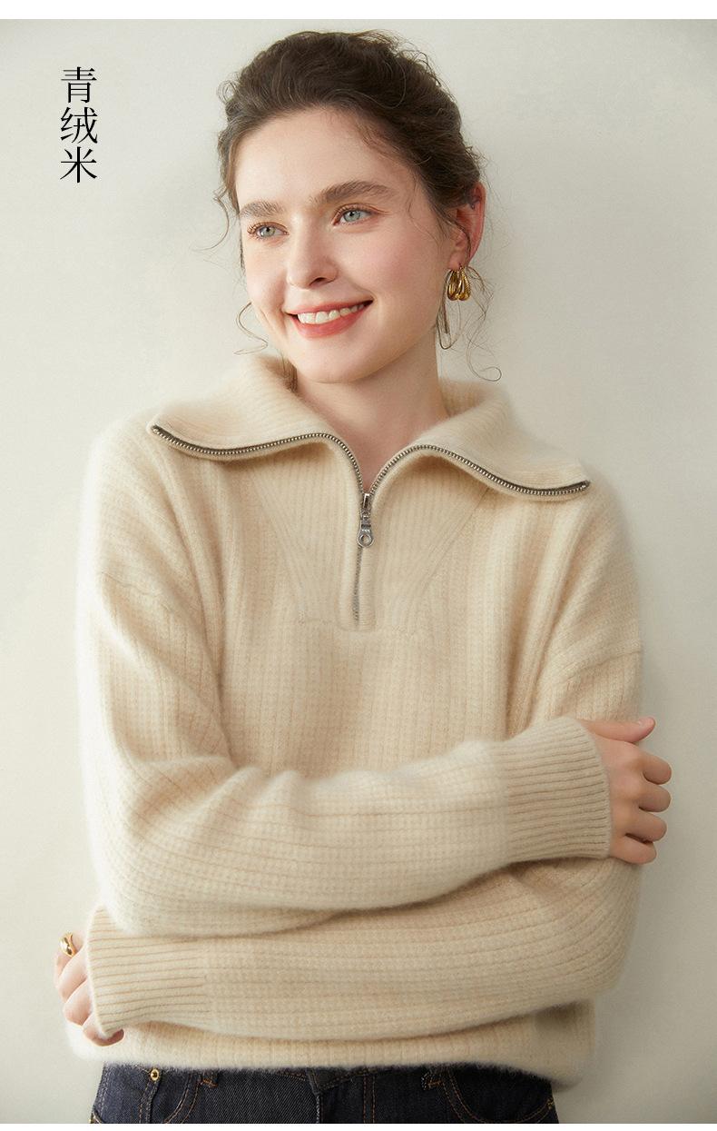 Suéter de Cachemira Otoño/Invierno 2025 para Mujer Cuello Alto con Media Cremallera Suéter de Punto Grueso Suéter Holgado Jersey de Capa Base