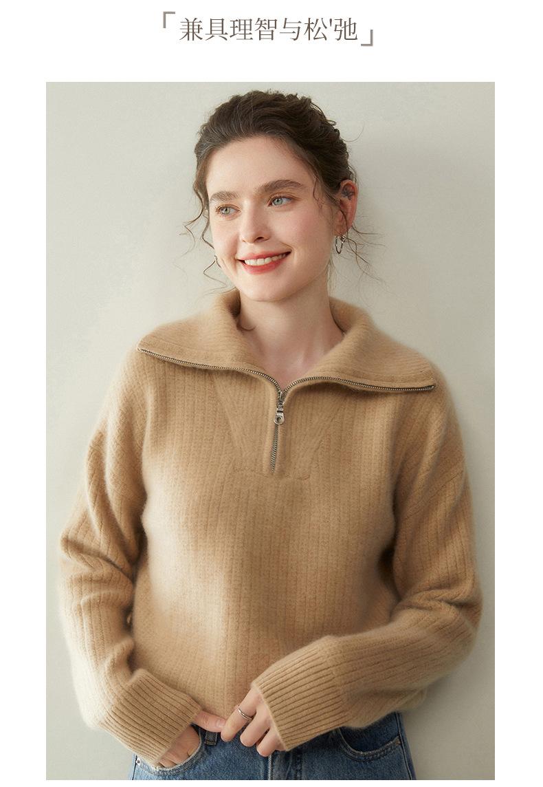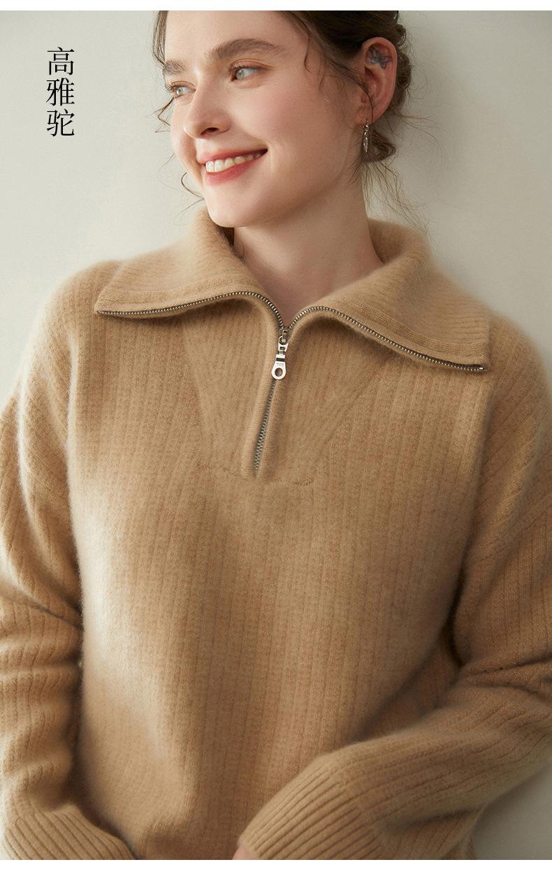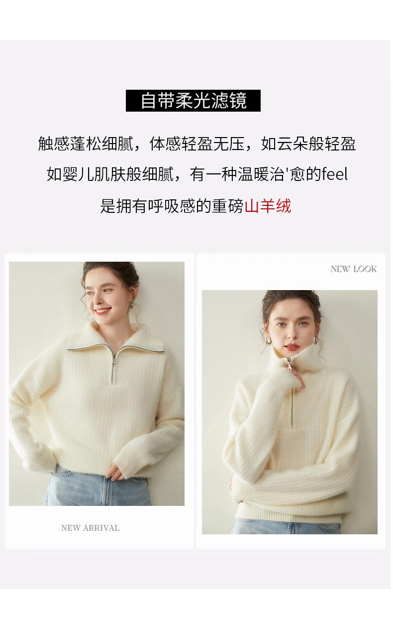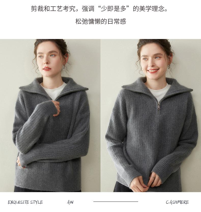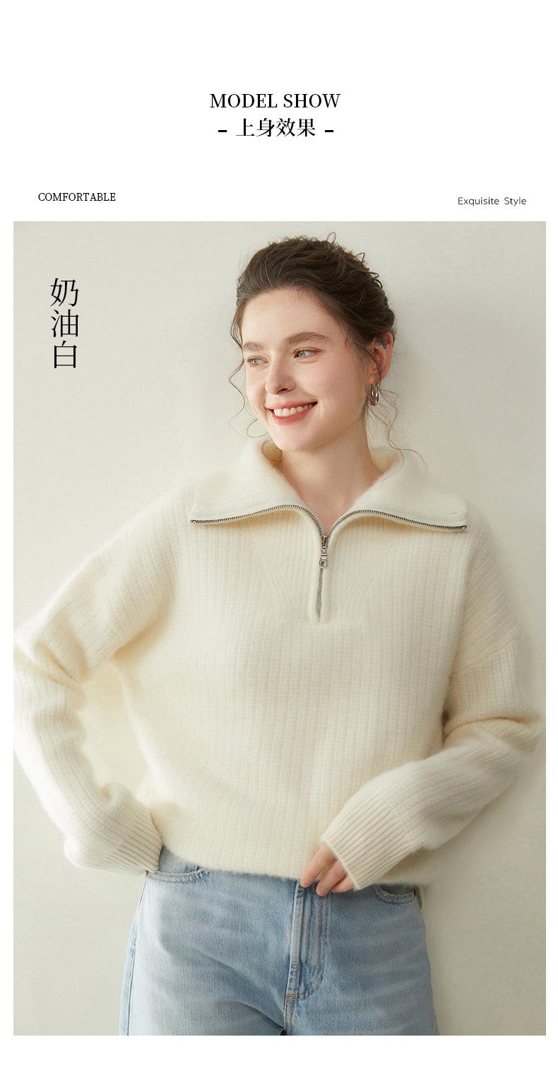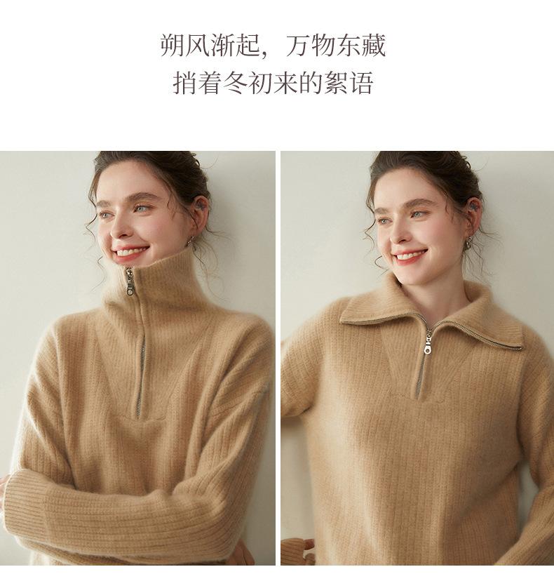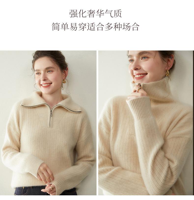 Suéter de Cachemira Otoño/Invierno 2025 para Mujer Cuello Alto con Media Cremallera Suéter de Punto Grueso Suéter Holgado Jersey de Capa Base
