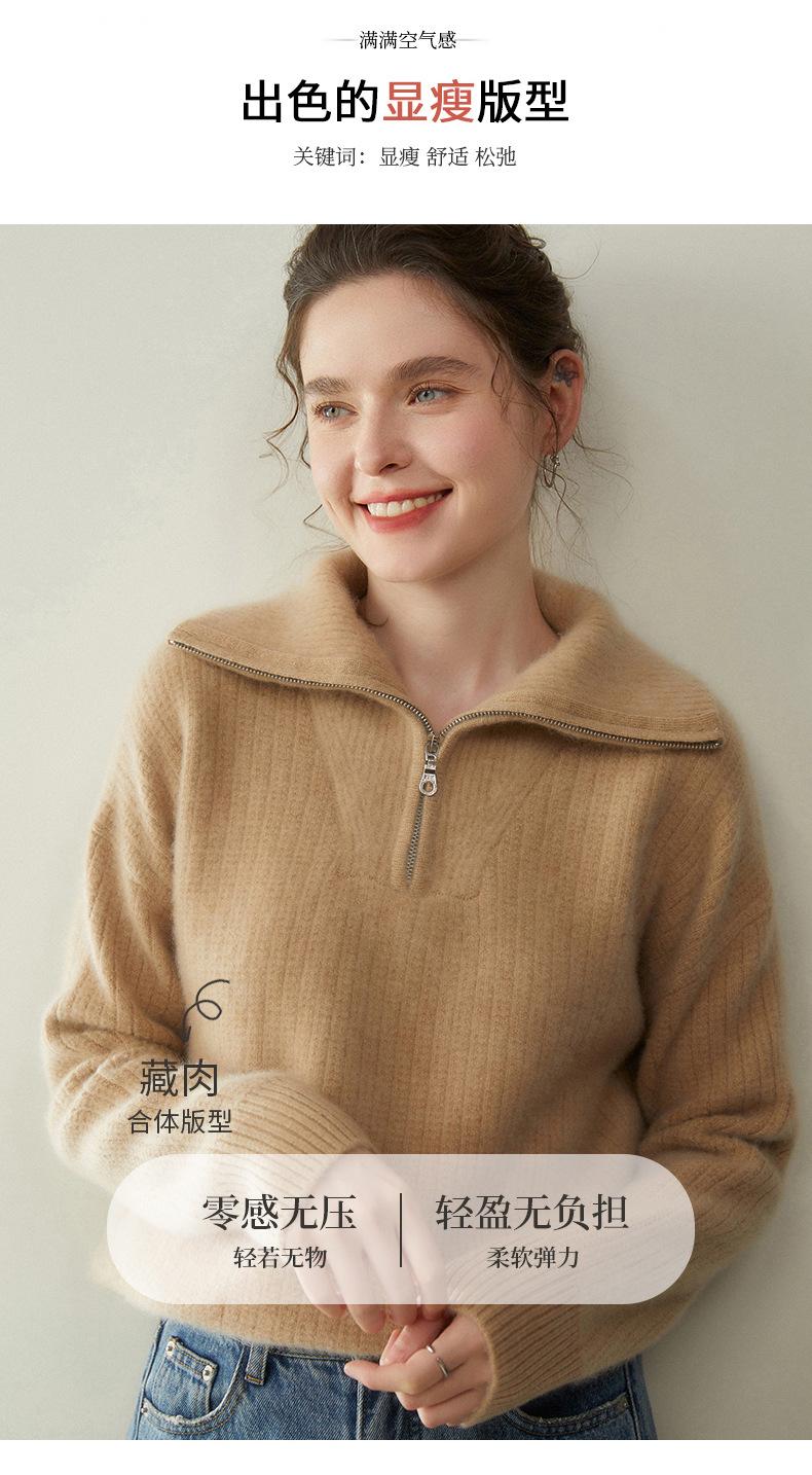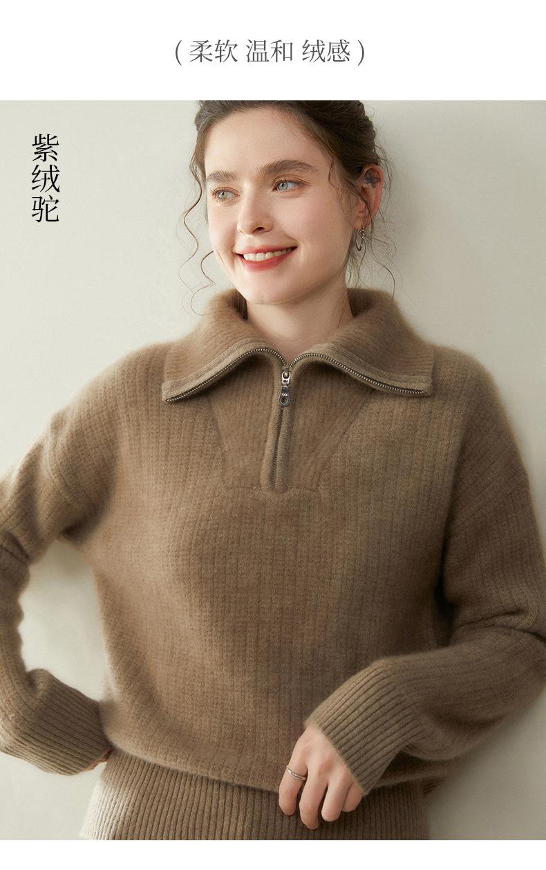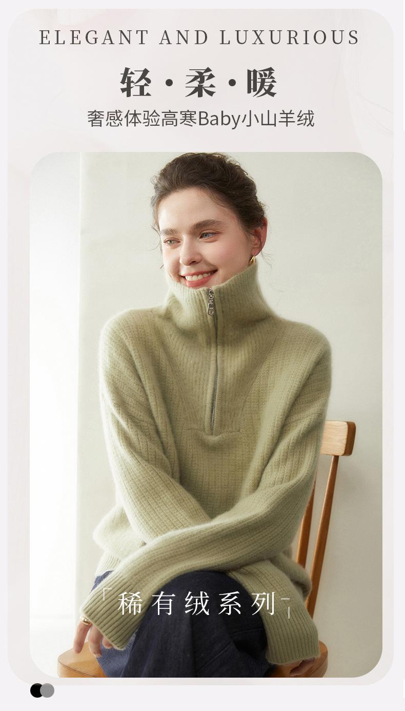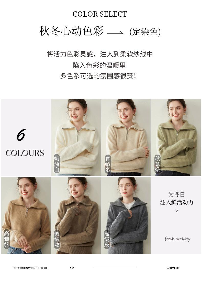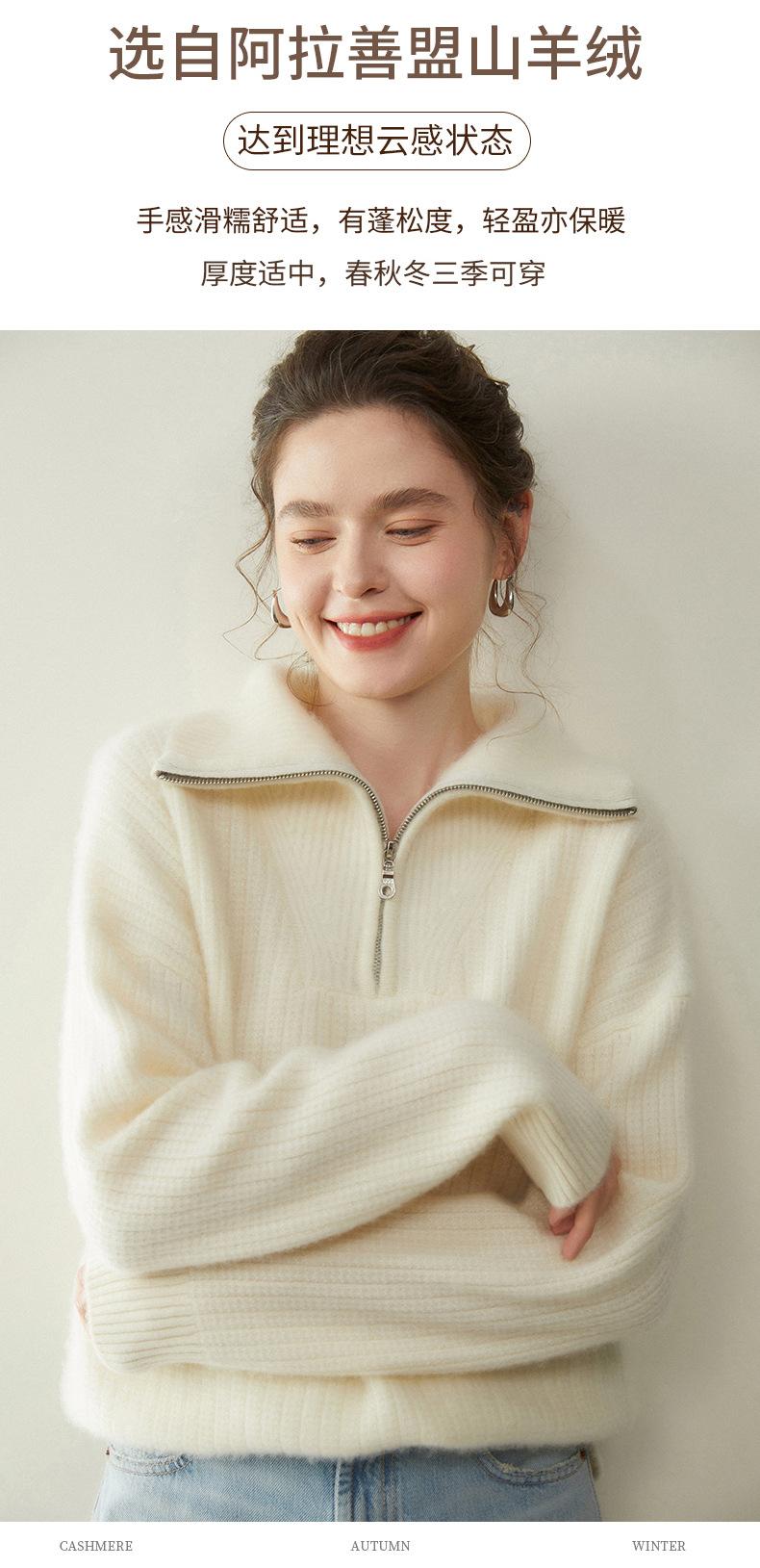 Suéter de Cachemira Otoño/Invierno 2025 para Mujer Cuello Alto con Media Cremallera Suéter de Punto Grueso Suéter Holgado Jersey de Capa Base