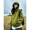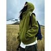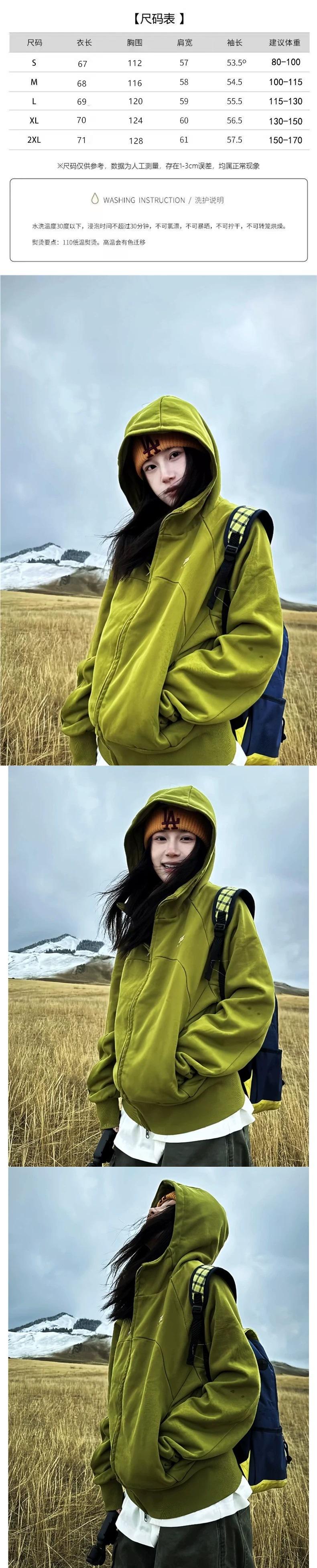 Sudadera con capucha de marca estadounidense de moda para mujer, otoño, holgada, peso pesado, sensación de alta gama, verde, cárdigan con cremallera, top casual