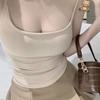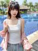 Chaleco ajustado estilo chica caliente de primavera y verano con almohadilla en el pecho Top básico para mujer Color sólido Alta gama Combinación con todo Tirantes para cubrir el pecho