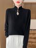 Nuevo Estilo Chino Estilo Nacional Cuello Vertical Hebilla Manga Larga Suéter Base de Punto para Mujer 2024 Nuevo Suéter Interior Adelgazante Ajustado