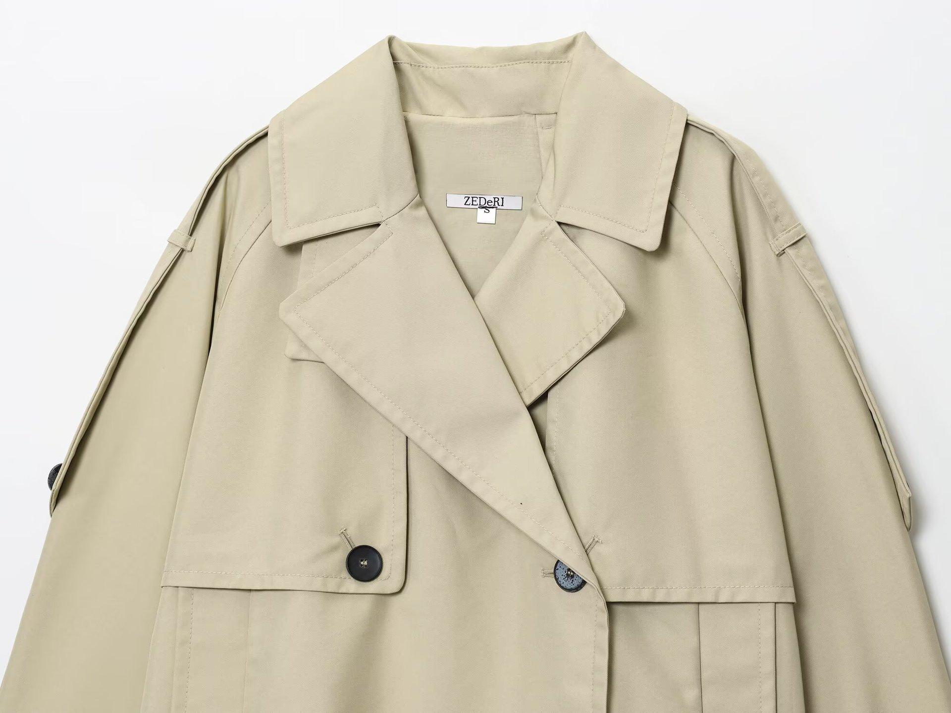 Europa y América Amazon AliExpress Estilo Caliente Tendencia de Moda Versátil Estilo Francés Serie para Ir al Trabajo Gabardina Corta Repelente al Agua