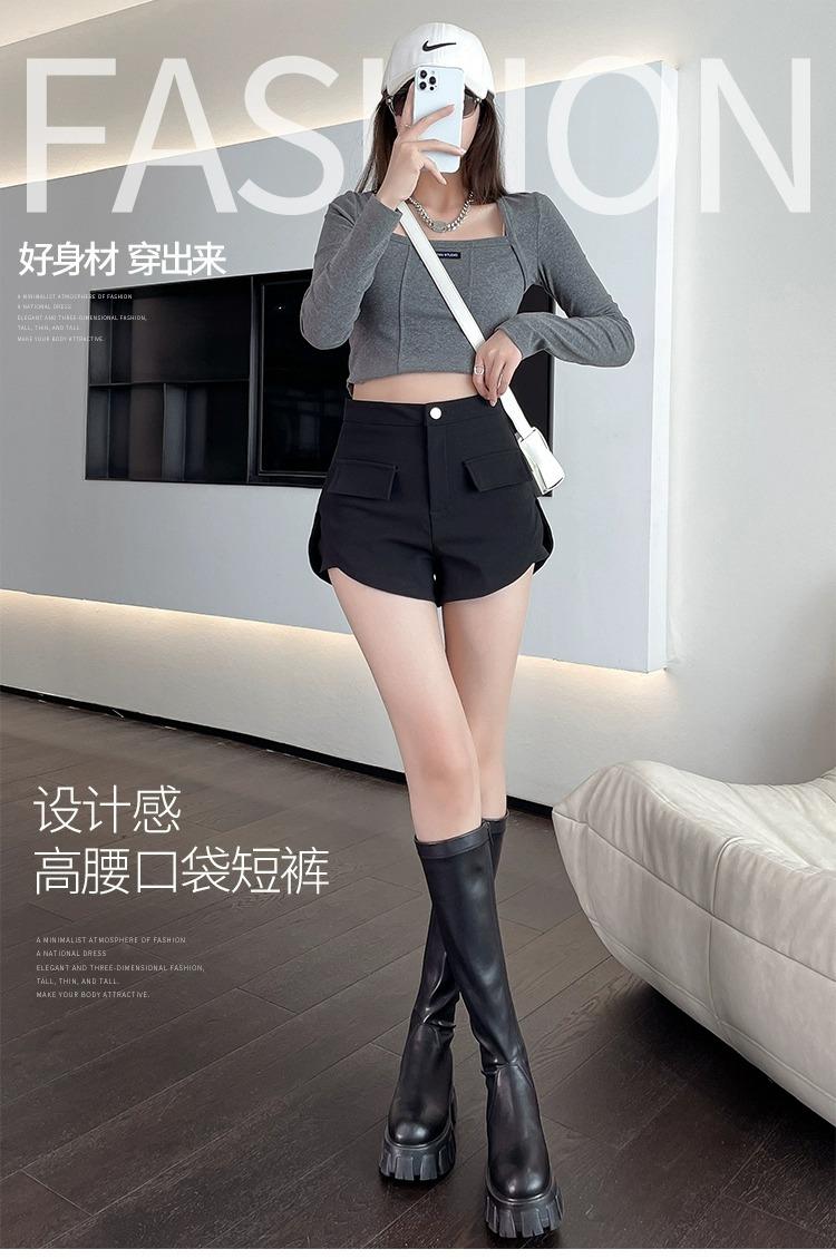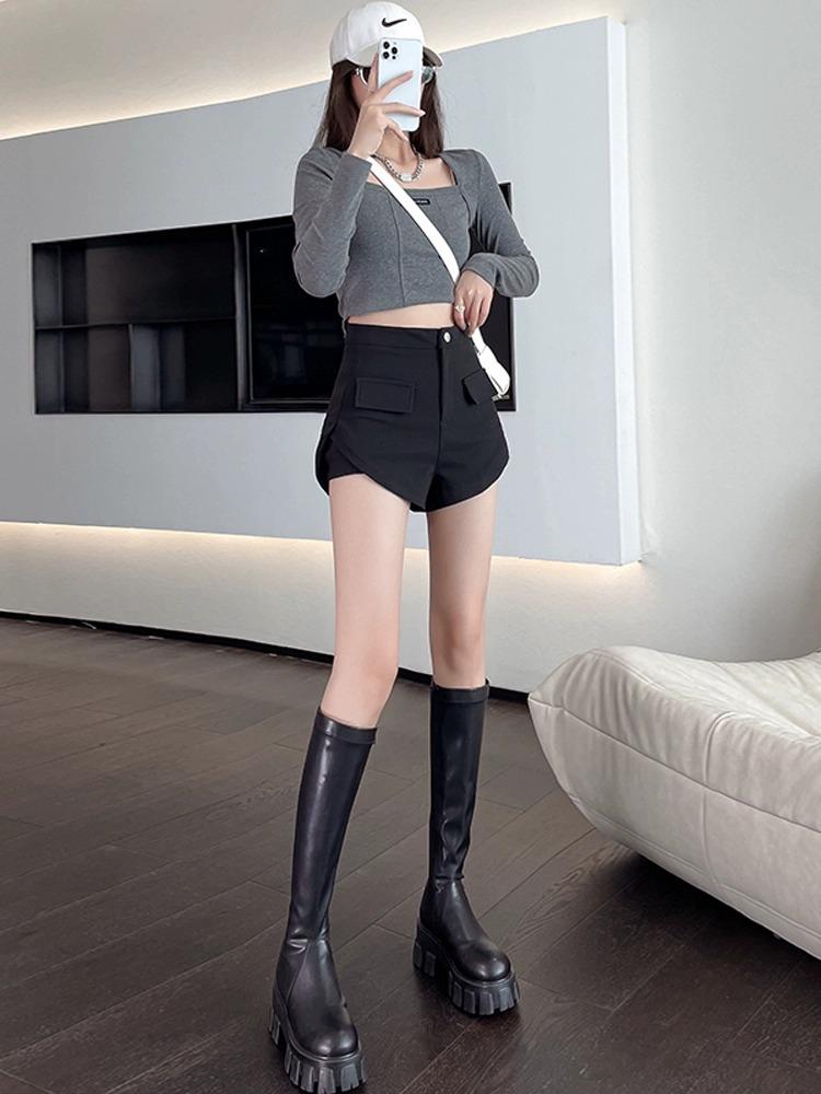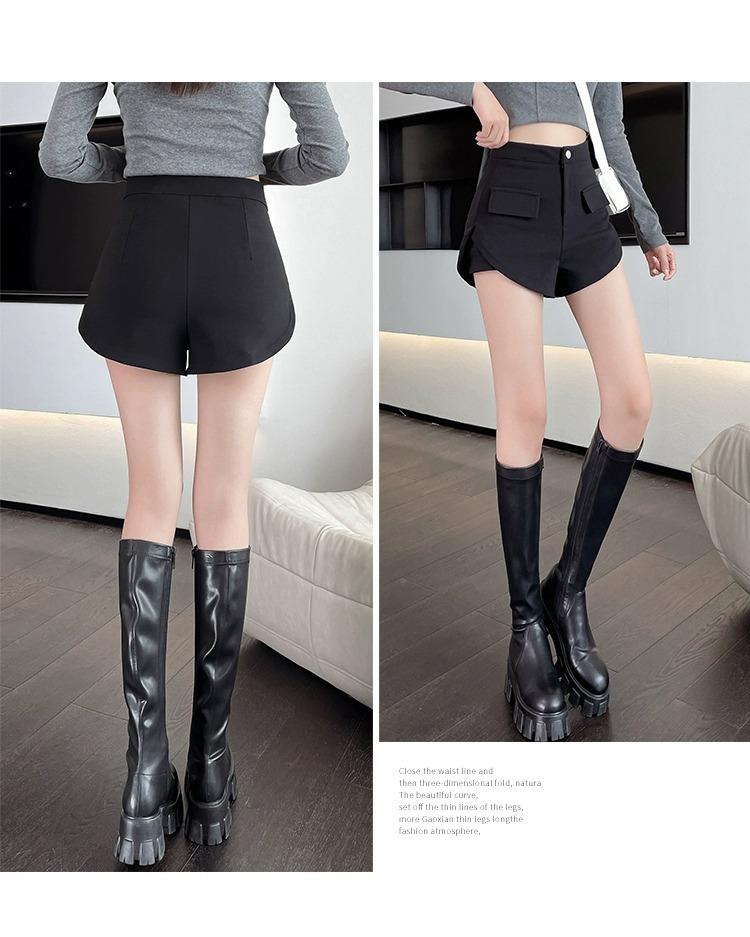 Compra Traje Shorts Casuales para Mujer Verano Sueltos Otoño 2024 Nuevo Pantalón Negro A-Line Pierna Ancha Cintura Alta Silueta Adelgazante al por mayor en Joom.pro
