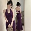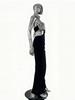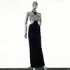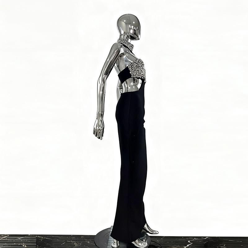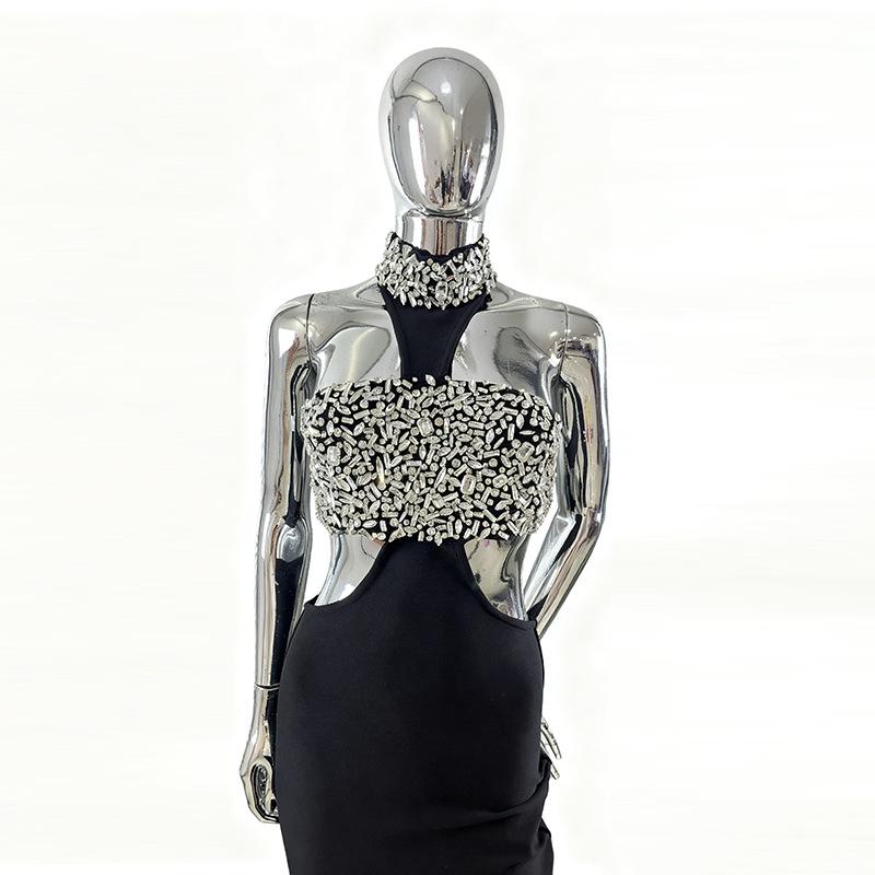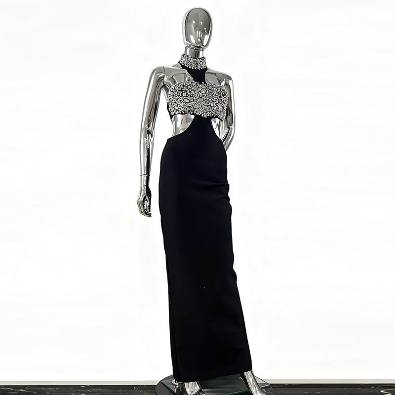 Vestido Largo Sexy de Promoción con Pedrería Halter Sin Mangas Vendaje Negro Bodycon 2025 Otoño Nuevo Vestido de Mujer