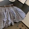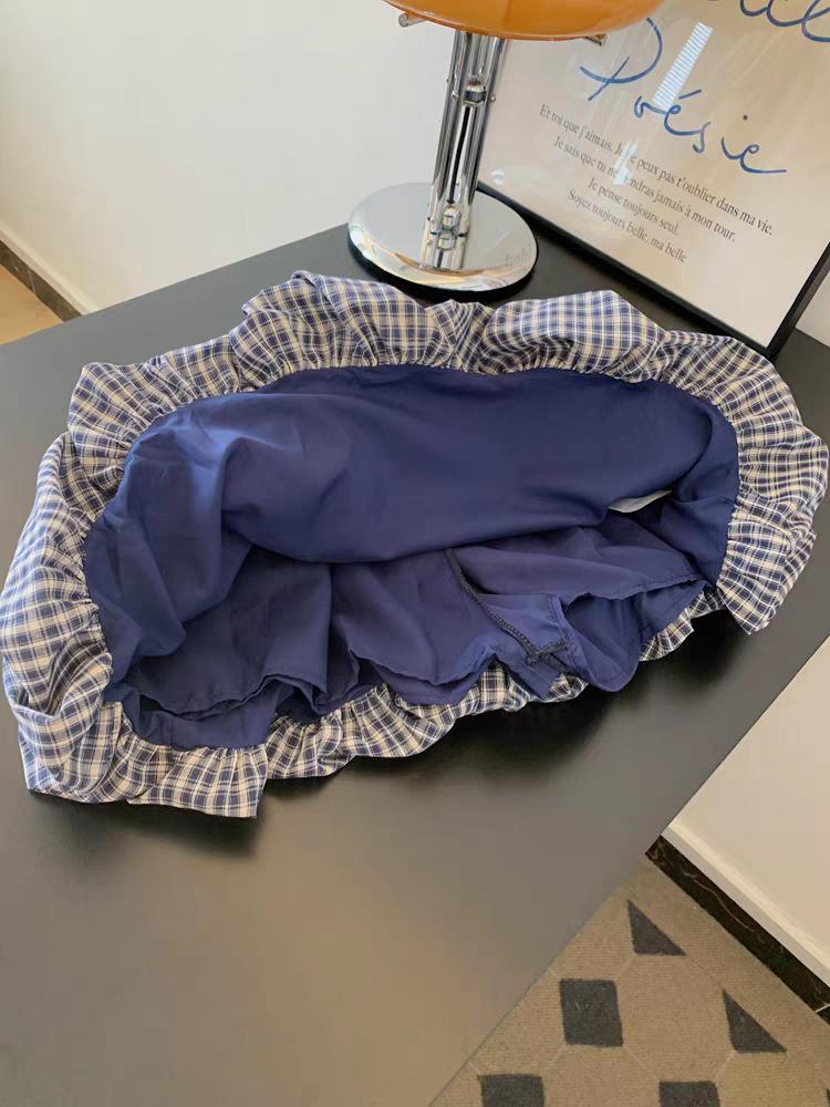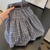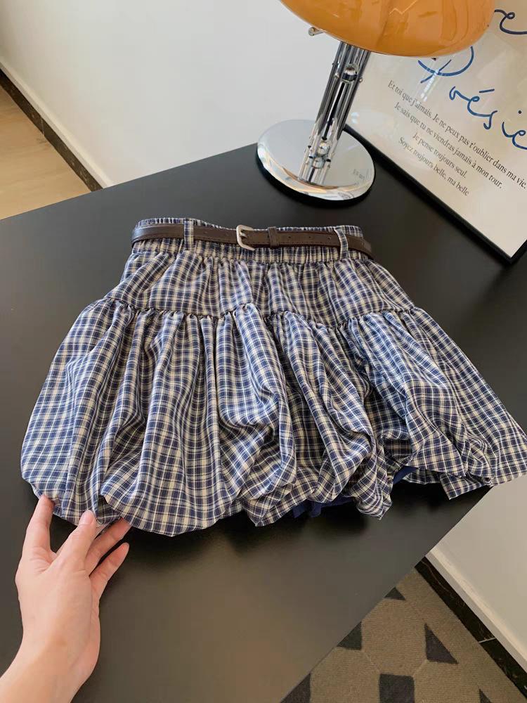 Falda Azul Marino a Cuadros Cubre-Busto Corte A con Cinturón, Falda Estilizada para Personas Pequeñas, Nuevo Estilo para Mujer 2025