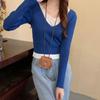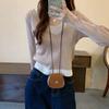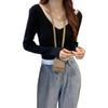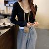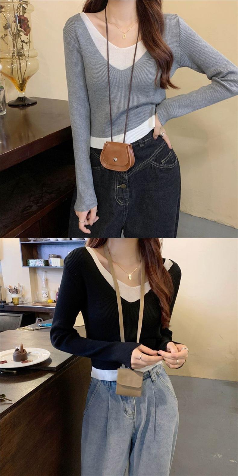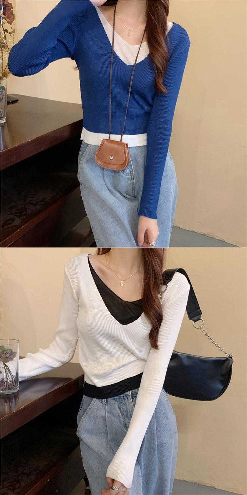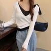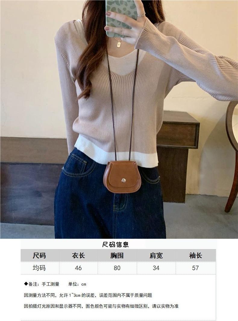 Elegante Top de Punto Falso de Dos Piezas para Mujer de Manga Larga Ajustado Capa Interior Suéter Fino Otoño/Invierno 2025 Cárdigan con Temperamento