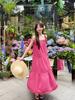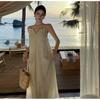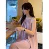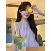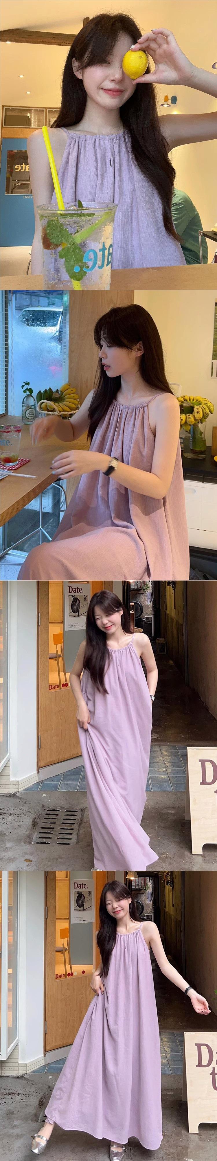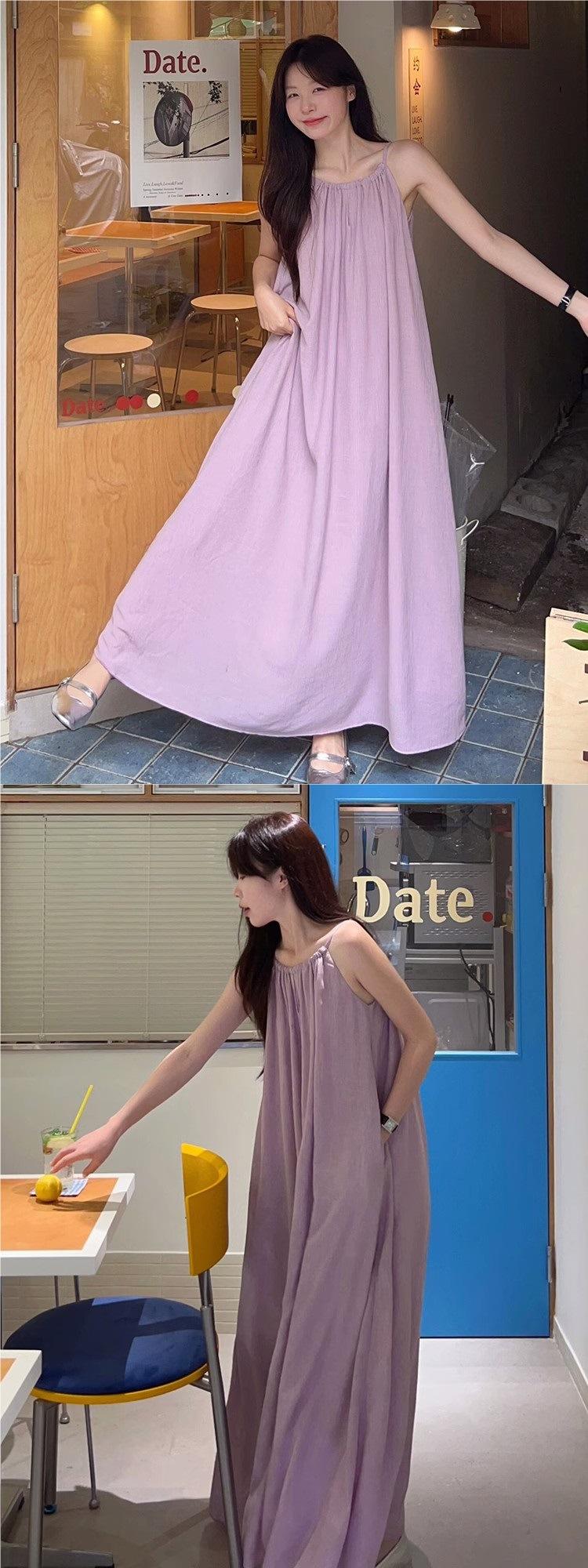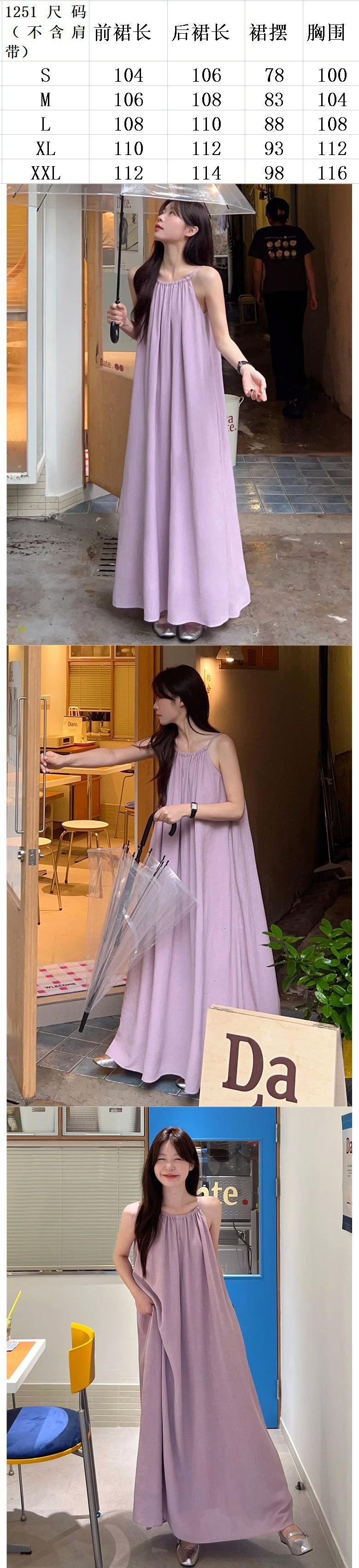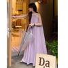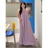 Vestido de verano francés con tirantes y cuello halter morado suave de primer amor para mujer, estilo de vacaciones, falda larga holgada y ajustada de corte A