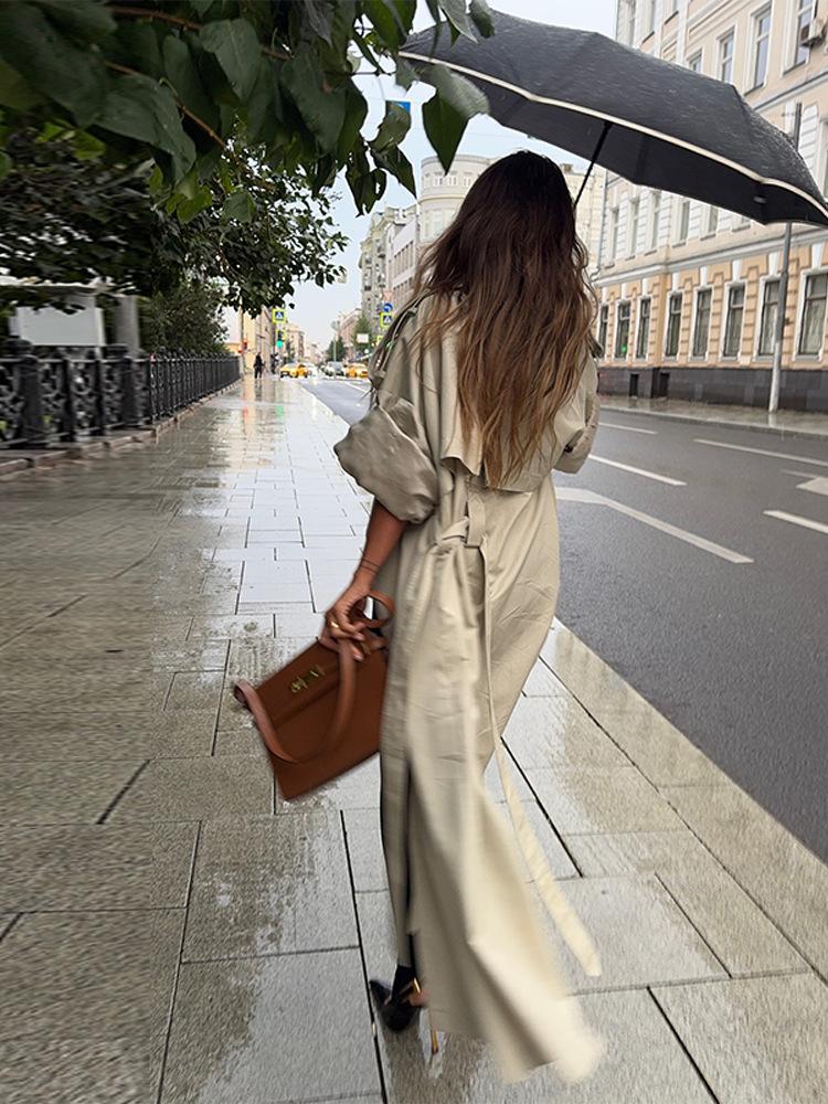 Abrigo largo de mujer de estilo europeo y americano transfronterizo 2025 otoño e invierno nuevo temperamento suelto para ir al trabajo abrigo trench de mujer abrigo largo adelgazante versátil
