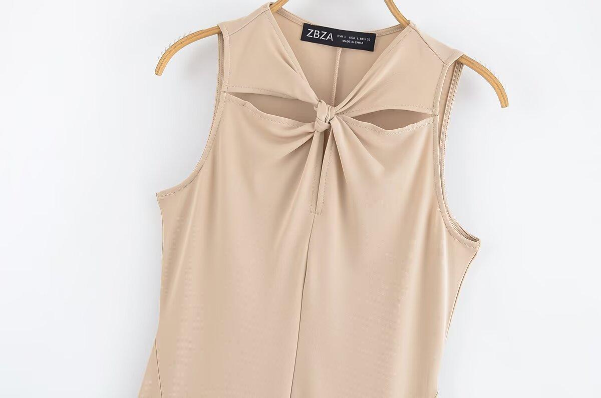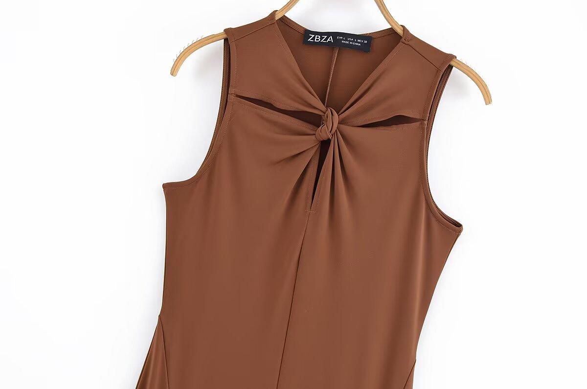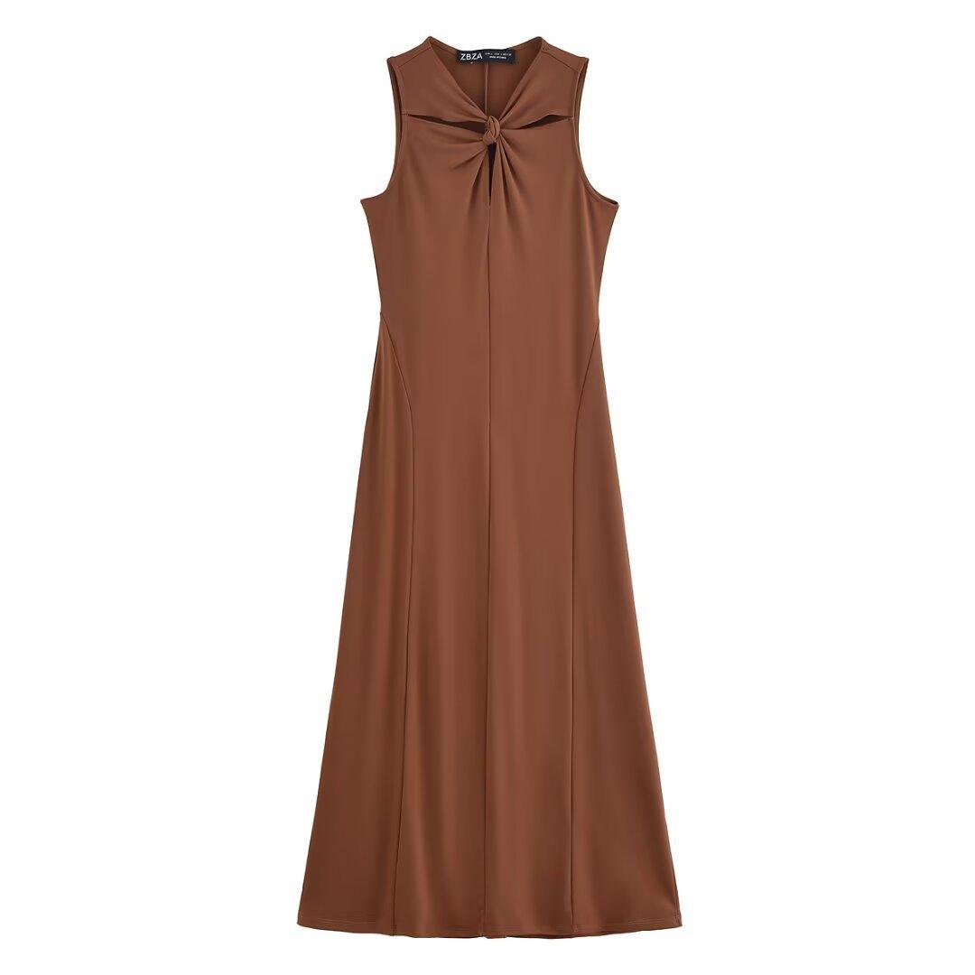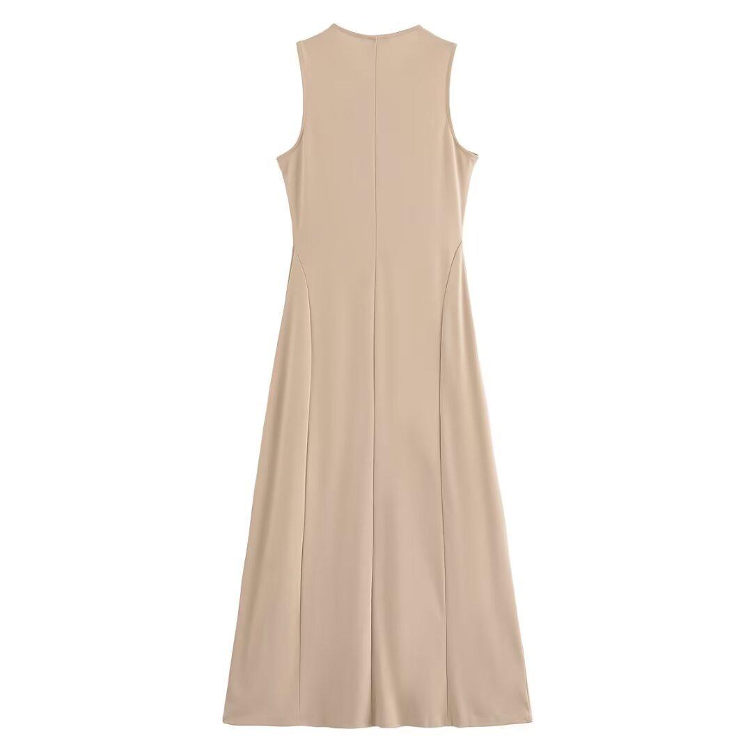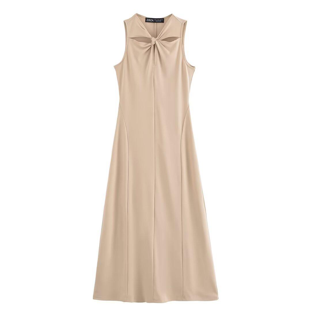 Estilo Europeo y Americano Transfronterizo Ropa de Mujer de Comercio Exterior de Aliexpress Zr Nuevo Vestido Cuadrado Nudo Cuello Redondo Sin Mangas Falda Larga