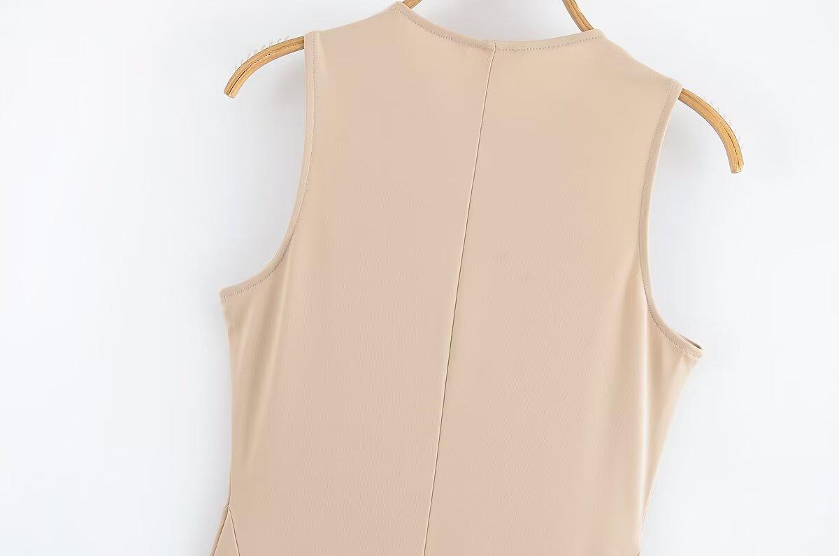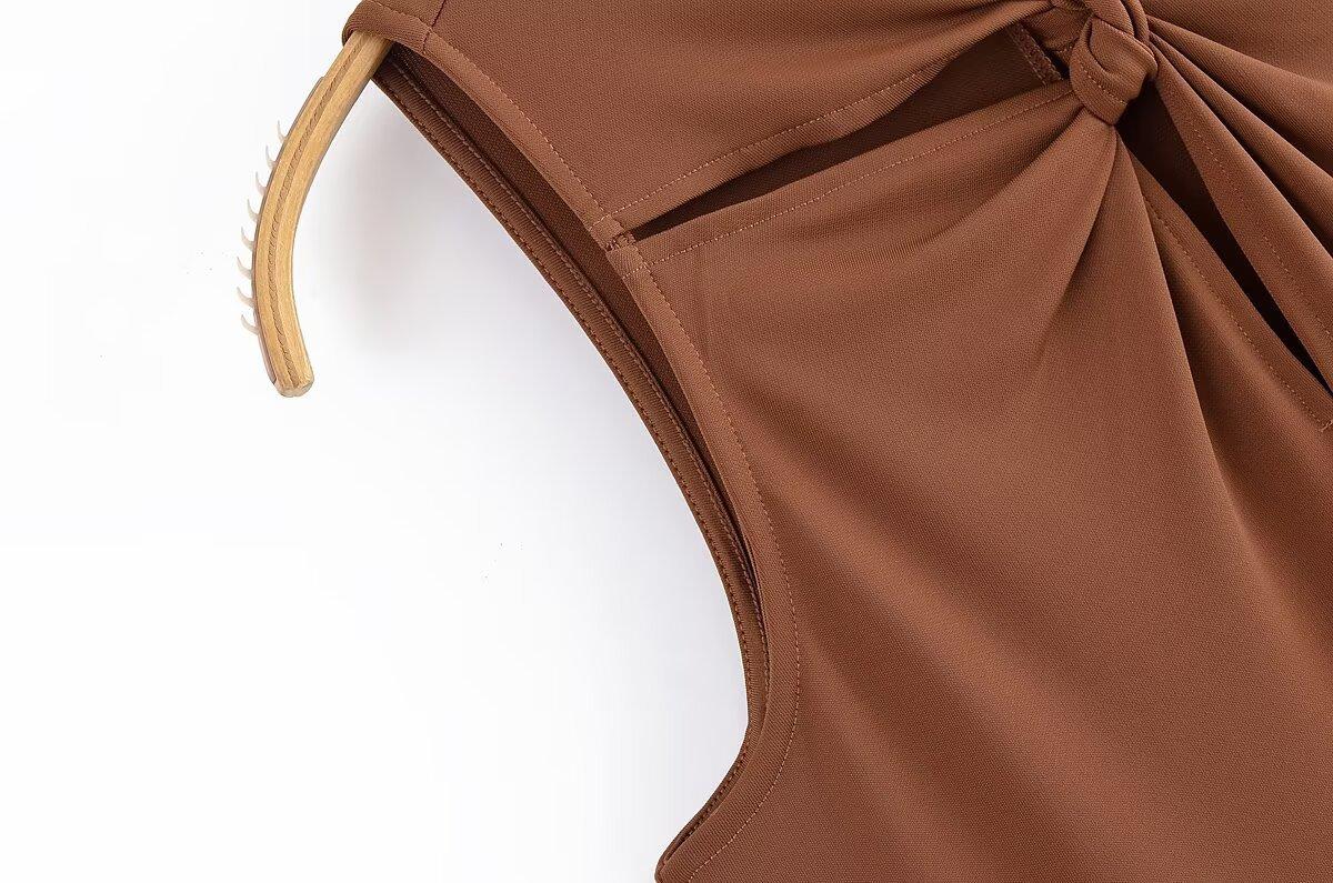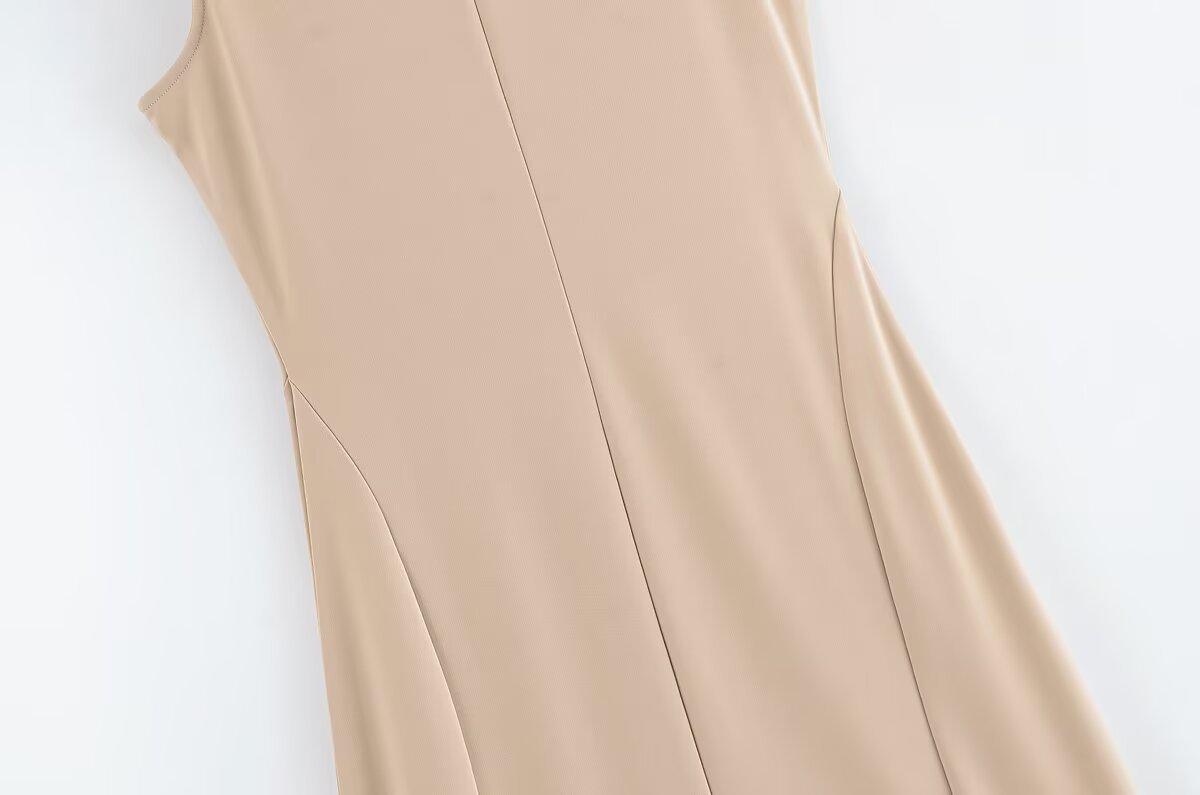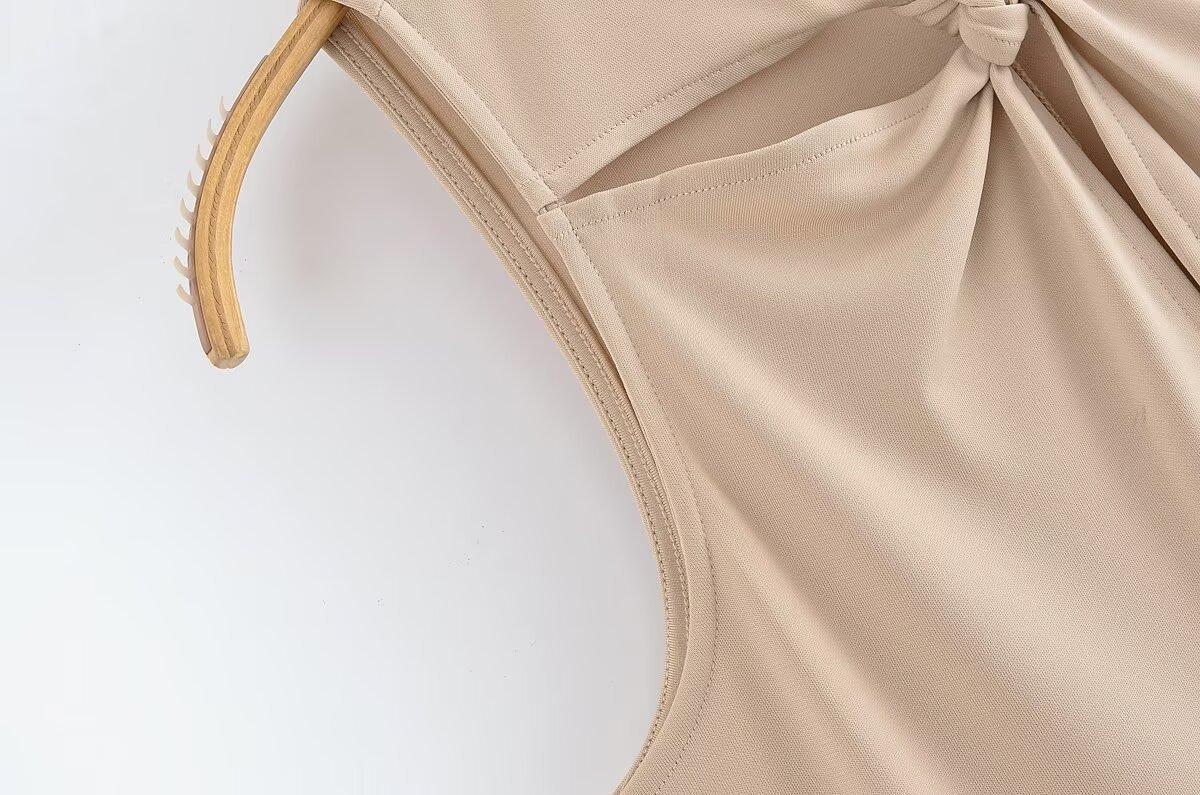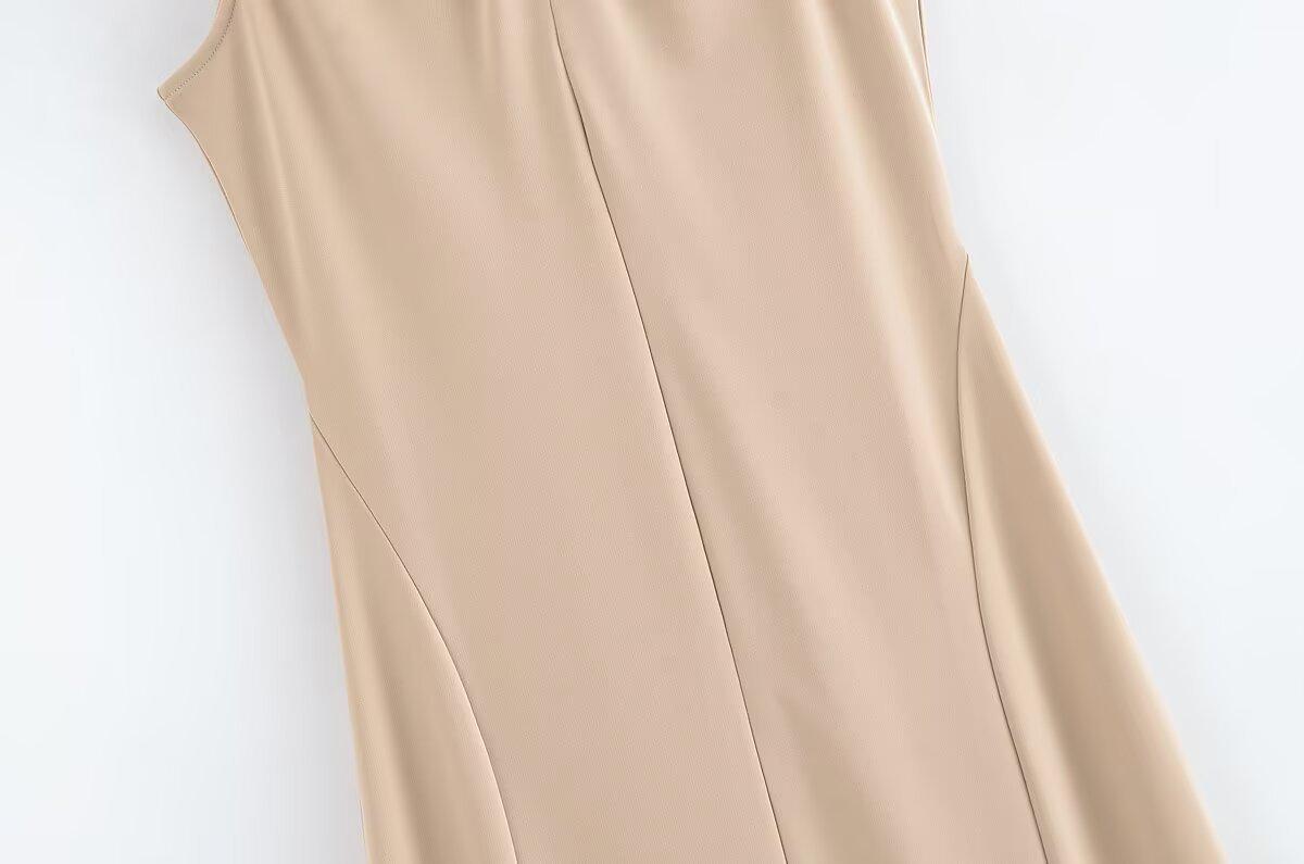 Estilo Europeo y Americano Transfronterizo Ropa de Mujer de Comercio Exterior de Aliexpress Zr Nuevo Vestido Cuadrado Nudo Cuello Redondo Sin Mangas Falda Larga
