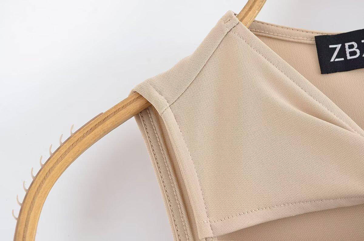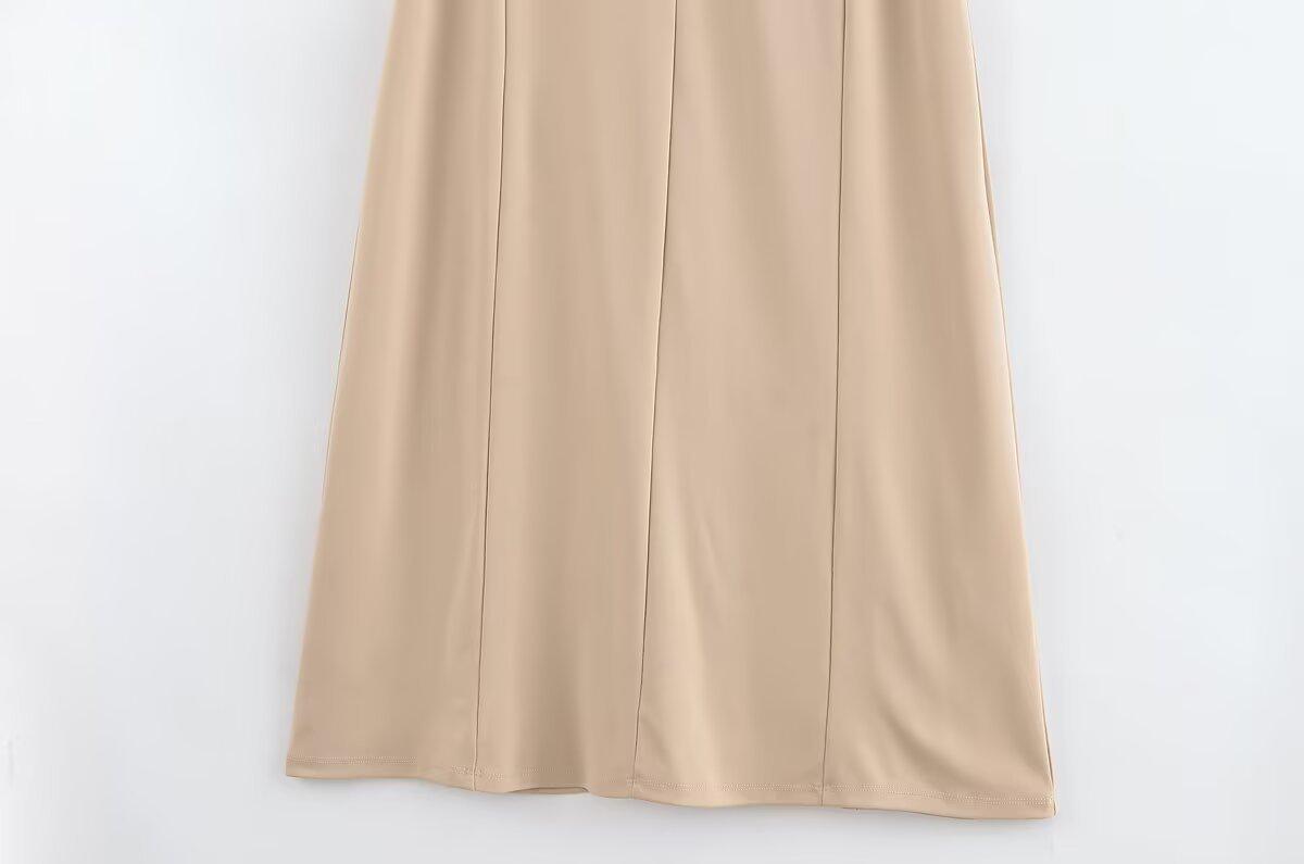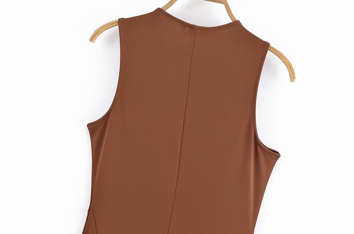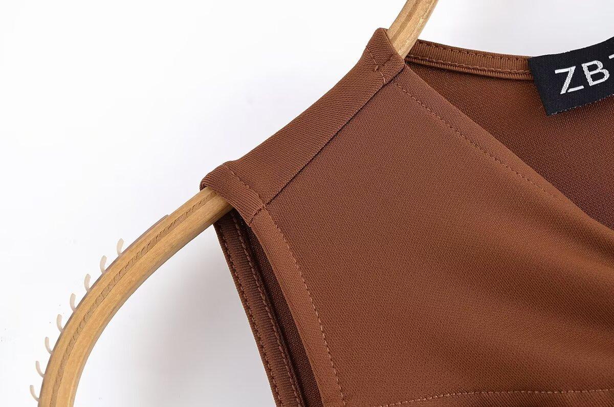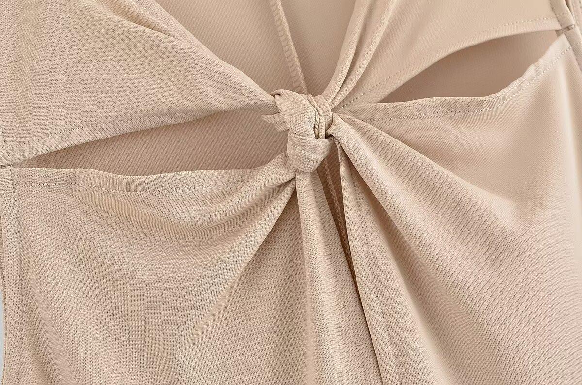 Estilo Europeo y Americano Transfronterizo Ropa de Mujer de Comercio Exterior de Aliexpress Zr Nuevo Vestido Cuadrado Nudo Cuello Redondo Sin Mangas Falda Larga