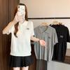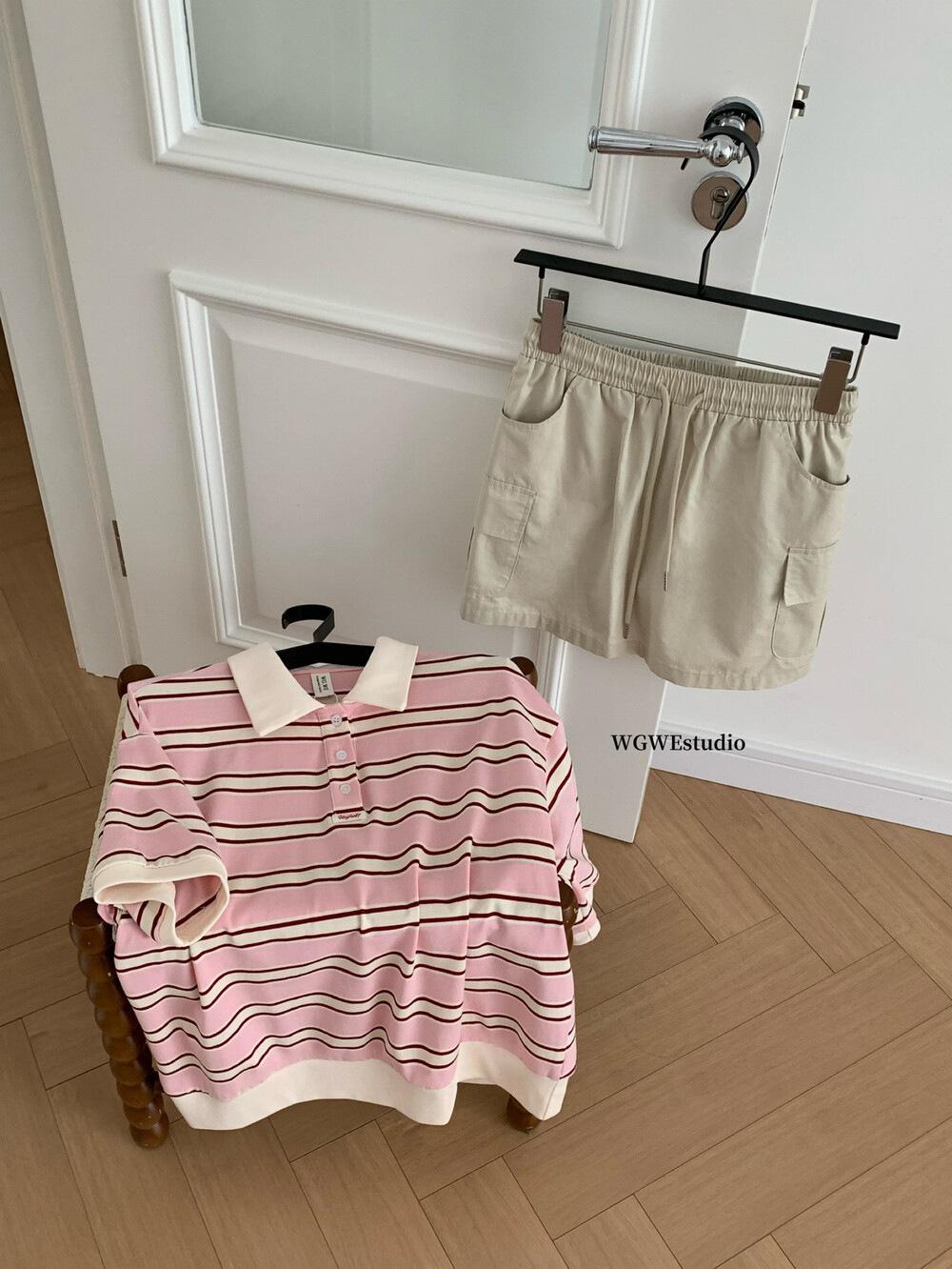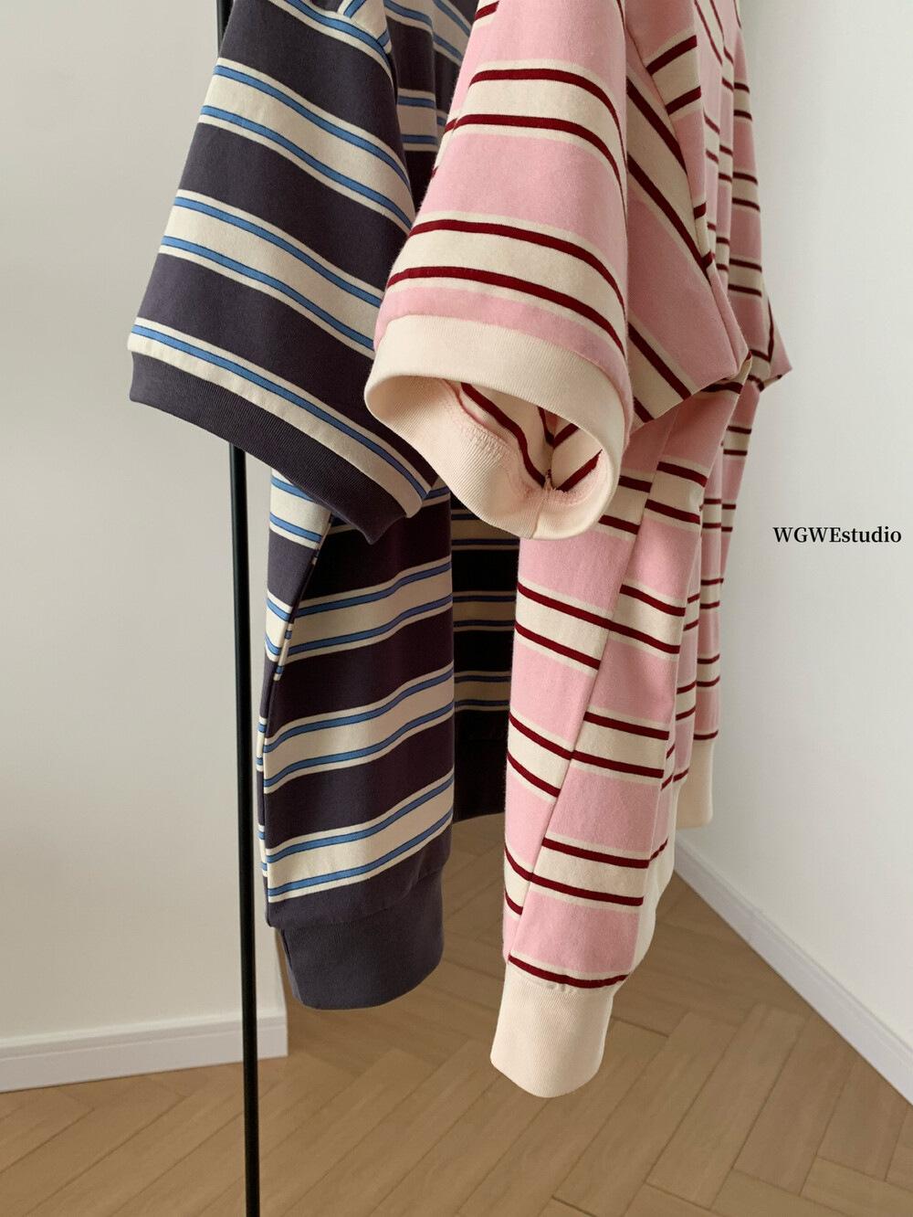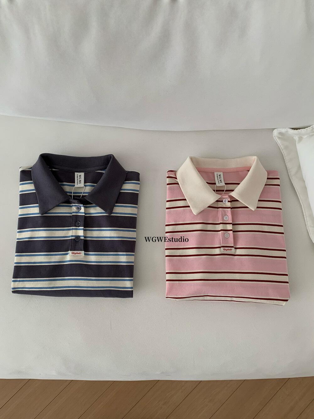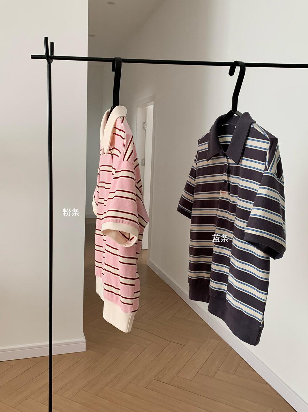 Wgwe Verano Retro Estilo Preppy Rayas Contrastantes Reductor de Edad Casual Versátil Look Adelgazante Camiseta de Manga Corta con Cuello Polo W6514