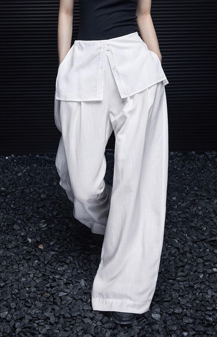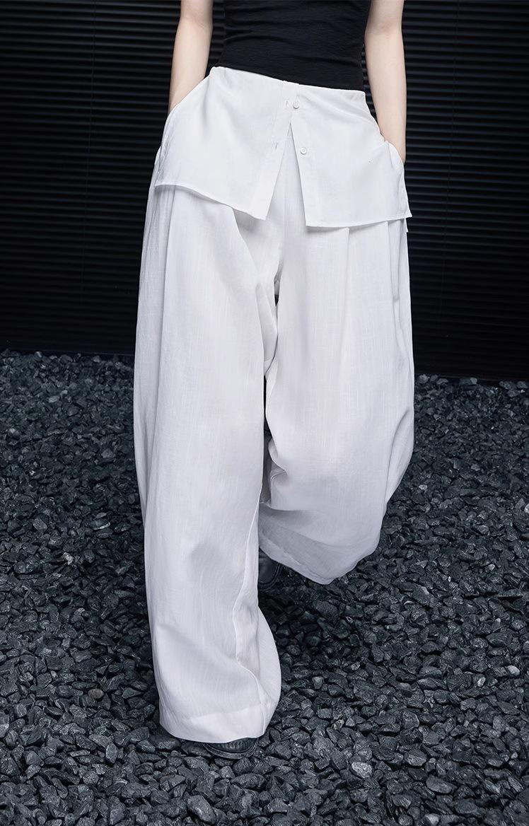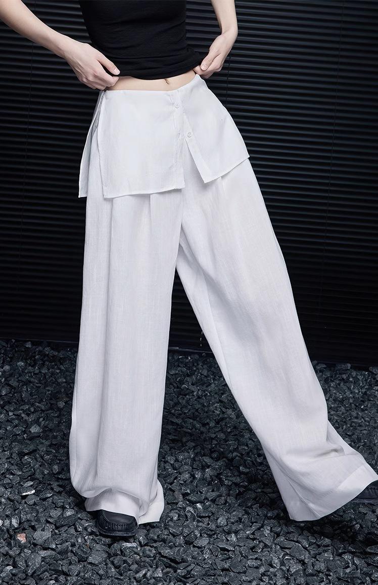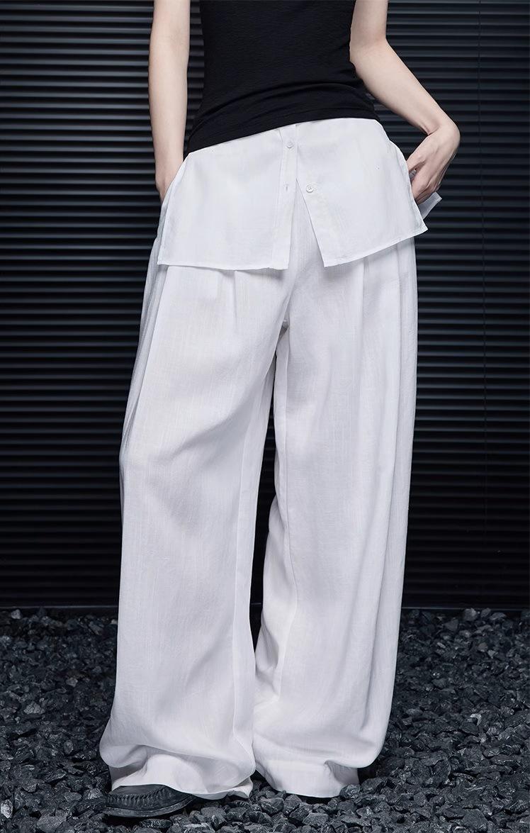 Pantalones casuales de pierna ancha de dos piezas falsas blancas moment para mujer 2025 otoño nuevo estilo holgado perezoso caída de alta gama
