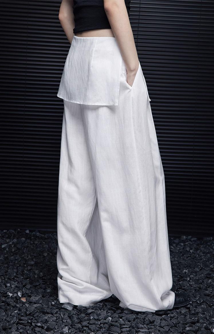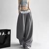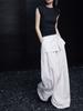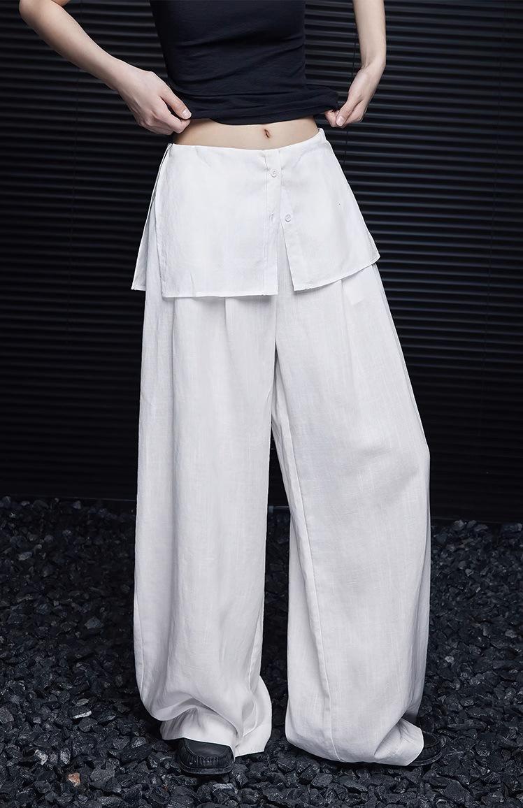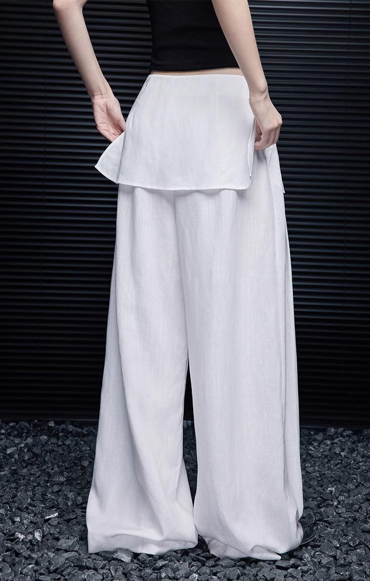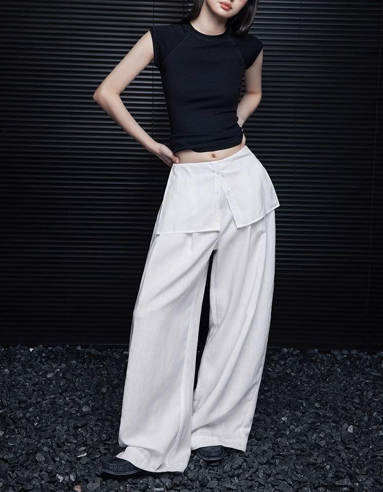 Pantalones casuales de pierna ancha de dos piezas falsas blancas moment para mujer 2025 otoño nuevo estilo holgado perezoso caída de alta gama