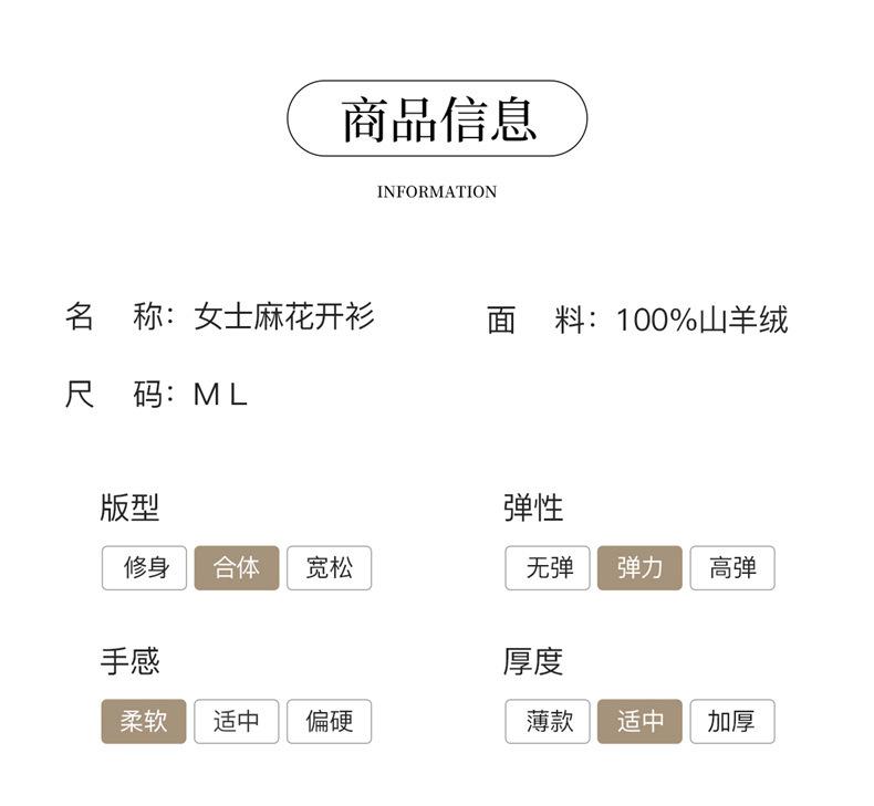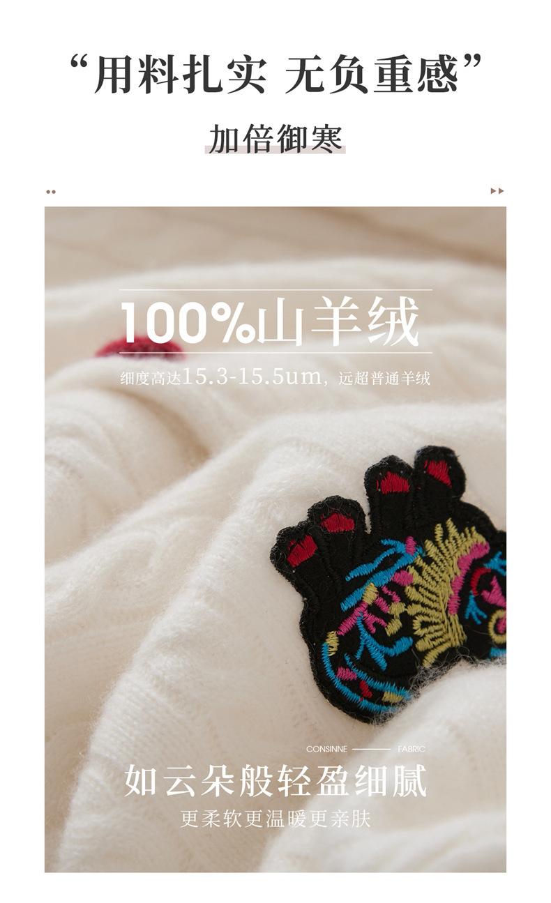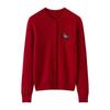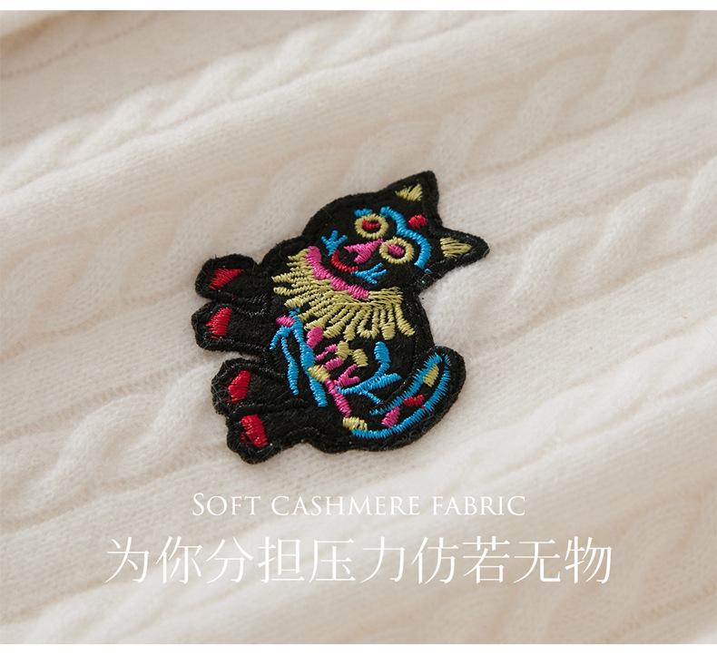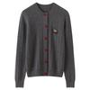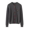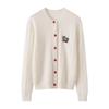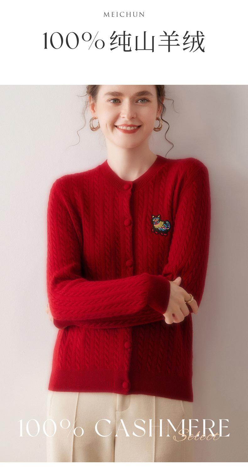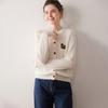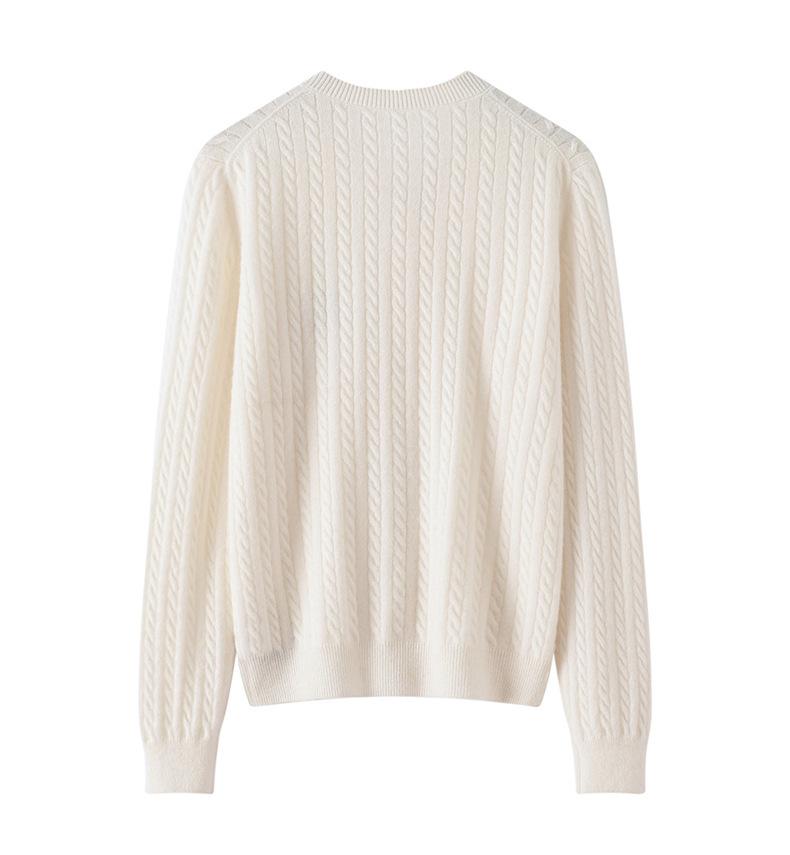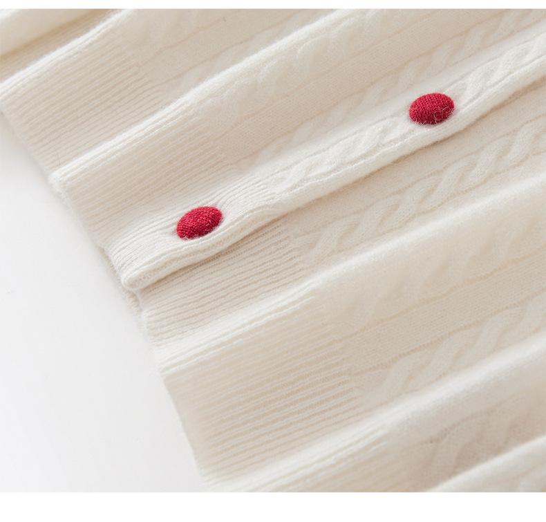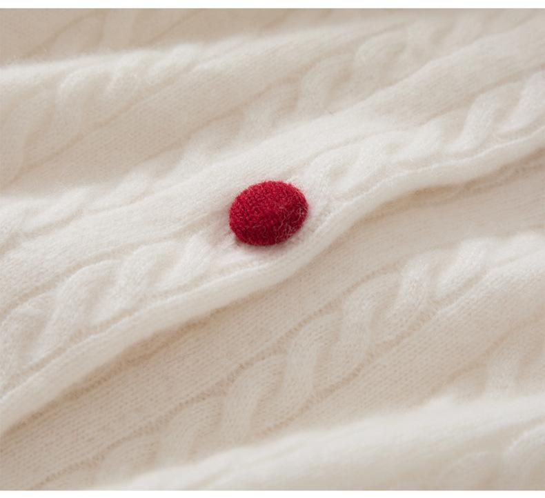 Suéter de Cachemira Pura para Mujer Otoño e Invierno Nuevo Cuello Redondo Manga Larga Cárdigan Suéter Tejido Abrigo Diseño Bordado Pesado Suéter Tejido de Cable