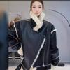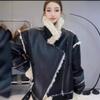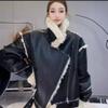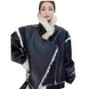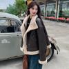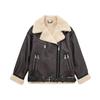 Chaqueta de motocicleta con piel integrada, abrigo de lana de cordero para mujer, invierno nuevo, sentido de alta gama, forro polar grueso, chaqueta superior con bloques de color