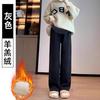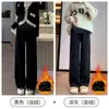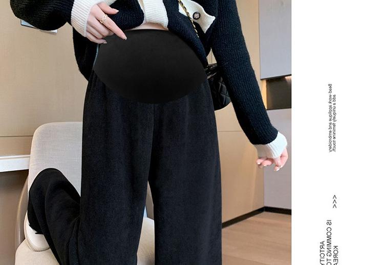 Pantalones de Maternidad Jingqi Pantalones Gruesos de Algodón con Forro Polar Otoño e Invierno Ropa Exterior 2025 Nuevos Pantalones de Pierna Ancha No Aprietan el Vientre Ropa de Invierno para Mujeres Embarazadas
