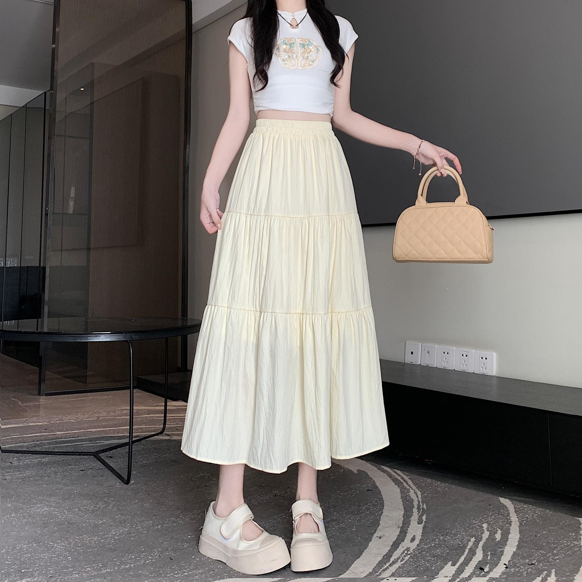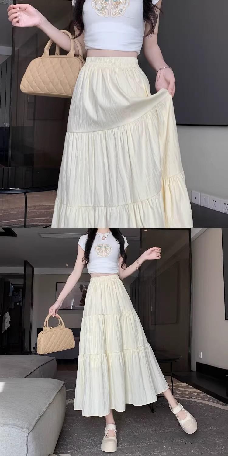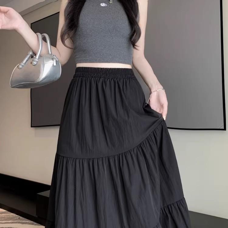 Falda Rosa para Mujer Verano 2025 Nuevo Estilo Estilo Suave Cintura Alta Línea A Falda Larga Look Adelgazante Falda Pastel para Personas Pequeñas