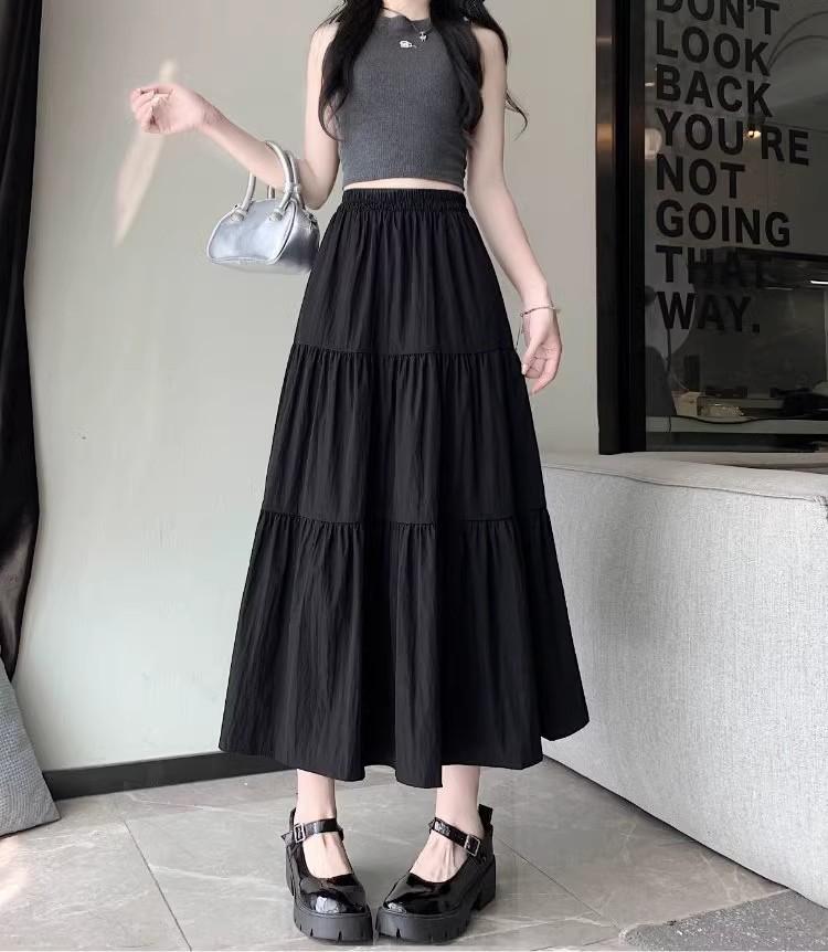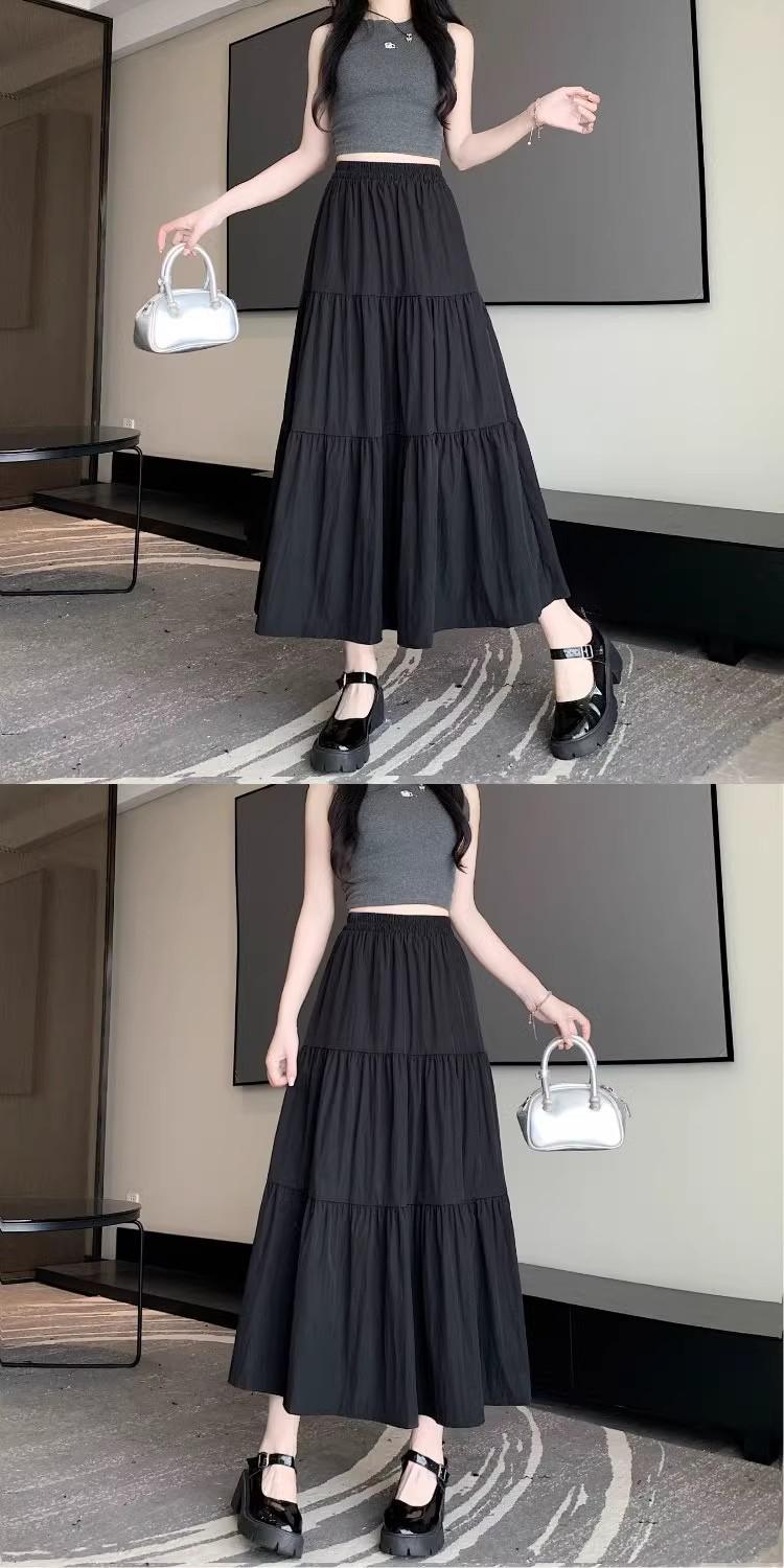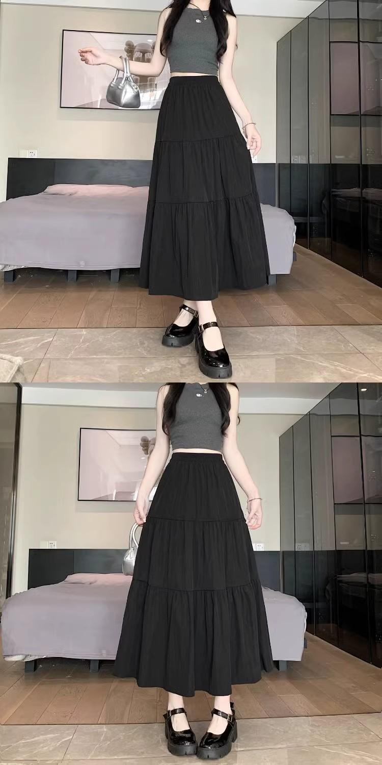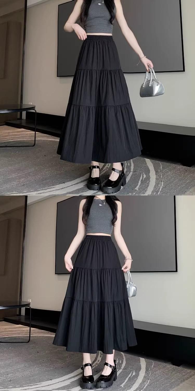 Falda Rosa para Mujer Verano 2025 Nuevo Estilo Estilo Suave Cintura Alta Línea A Falda Larga Look Adelgazante Falda Pastel para Personas Pequeñas