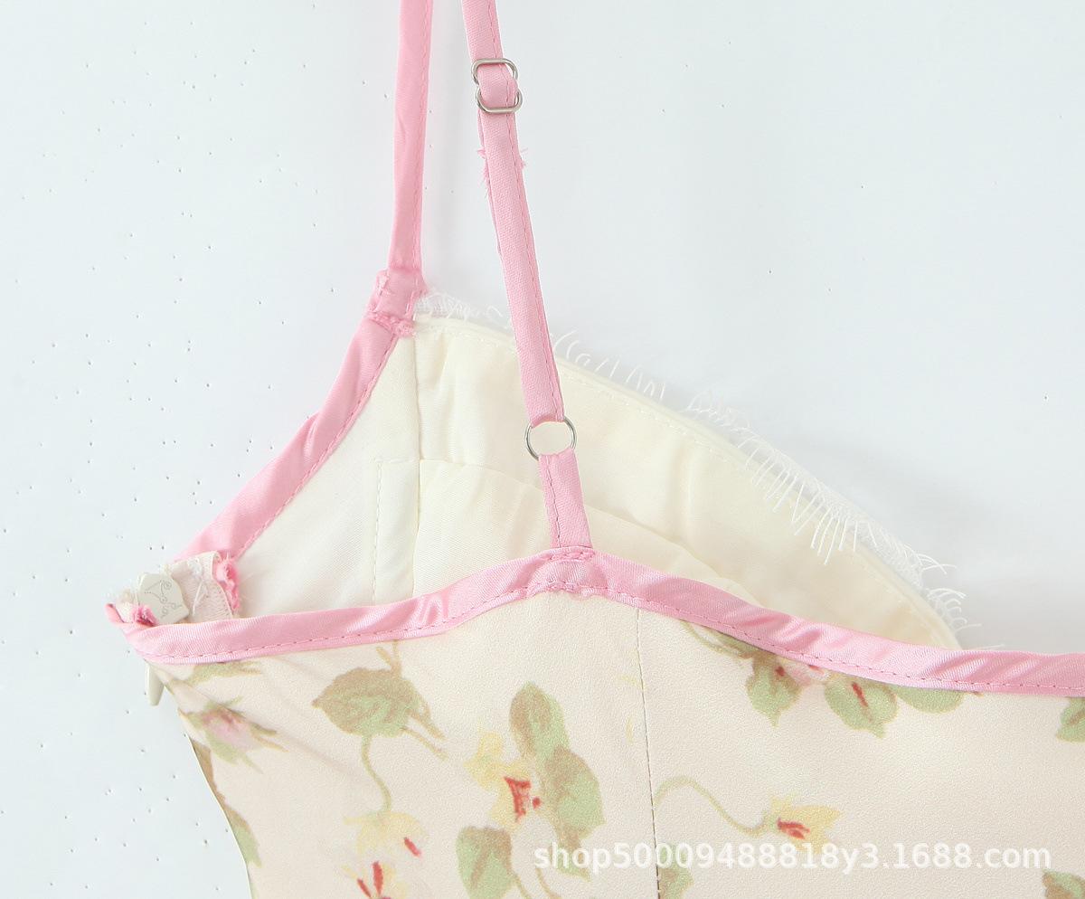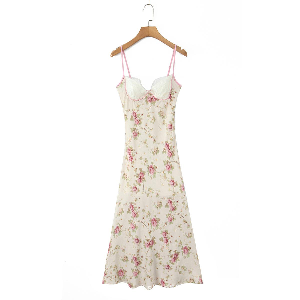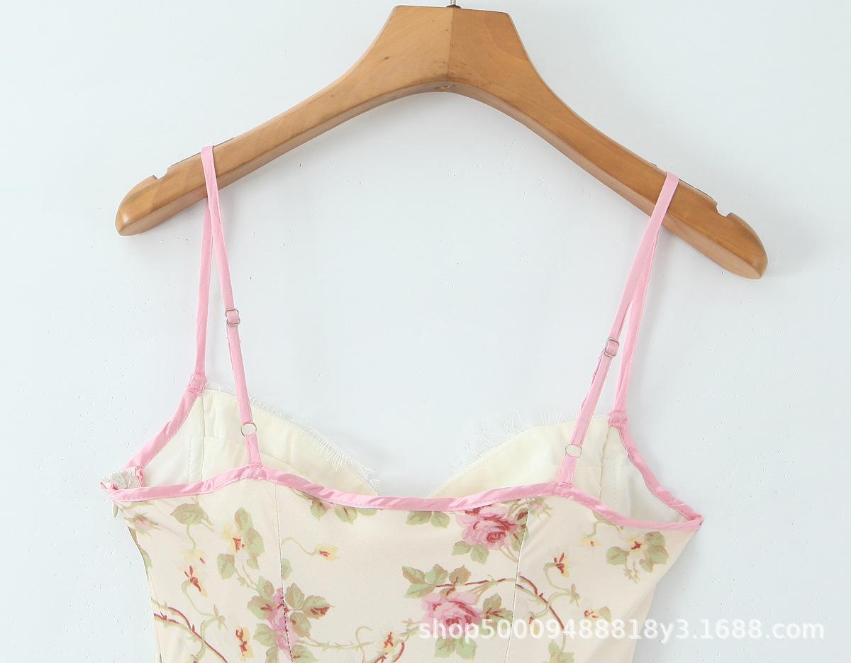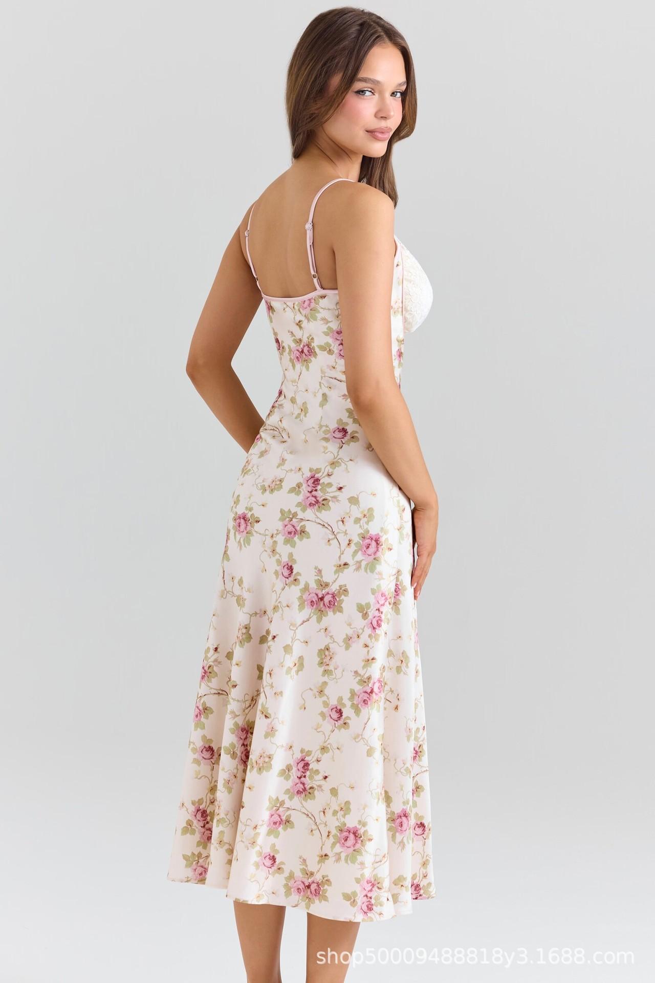 Casa mismo estilo estilo europeo y americano francés romántico dulce encaje floral patchwork sexy vestido camisola con cuello en V