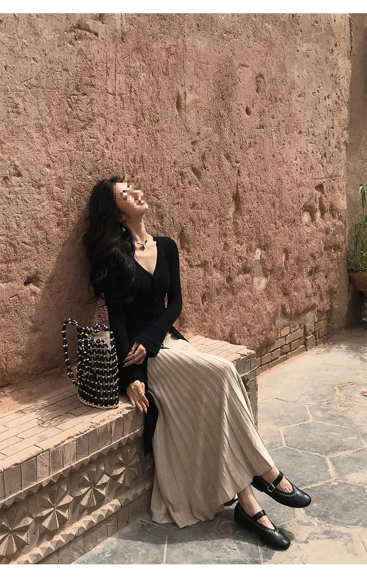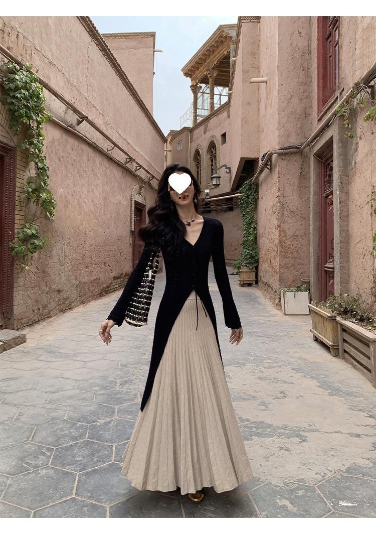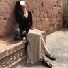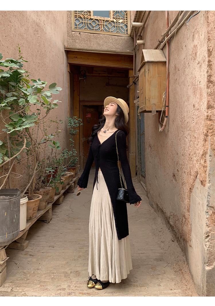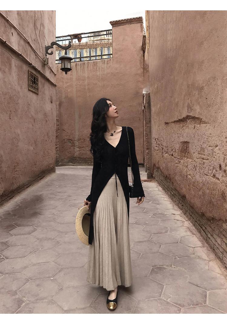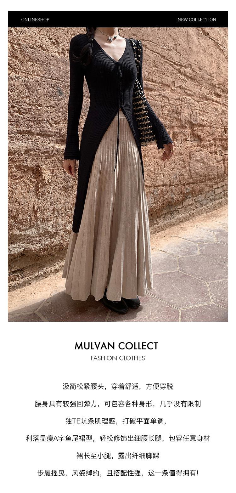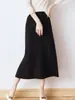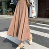 Falda Midi de Punto Beige para Mujer Otoño Invierno Cintura Alta Línea A Lana Acampanada Paraguas