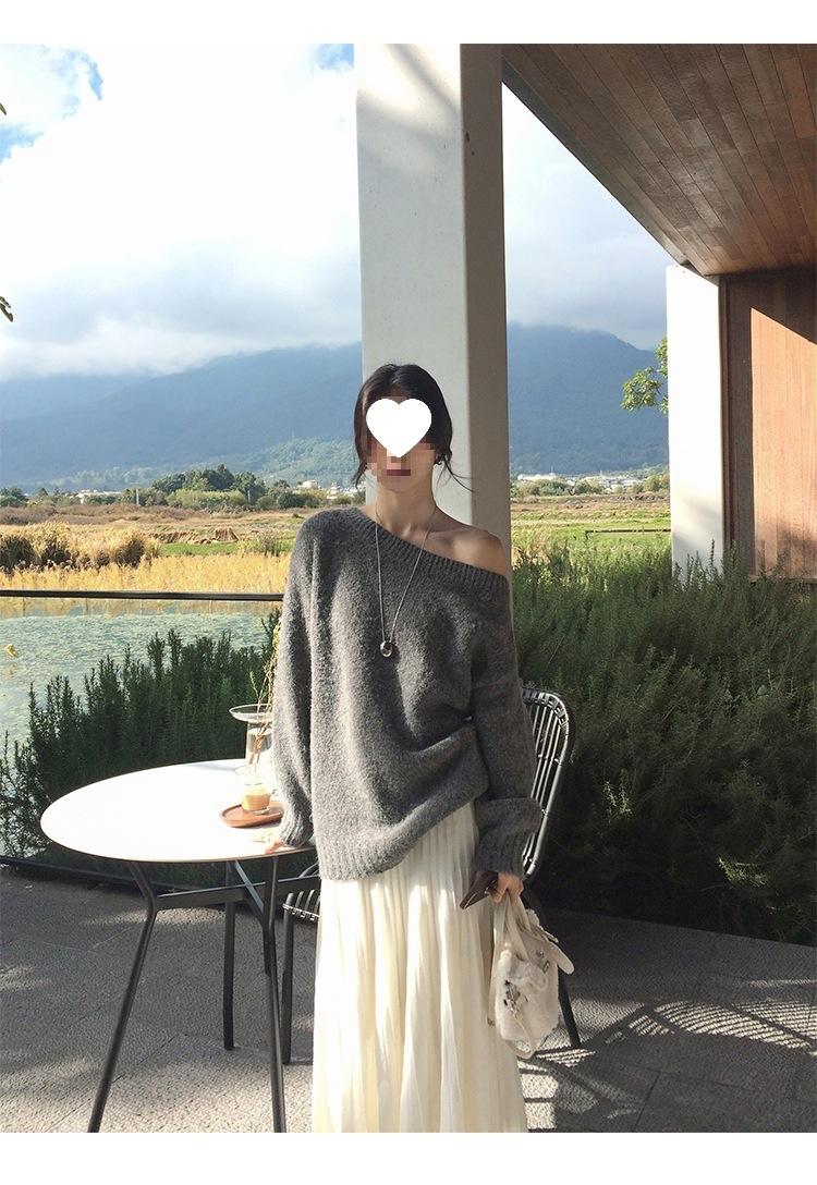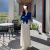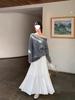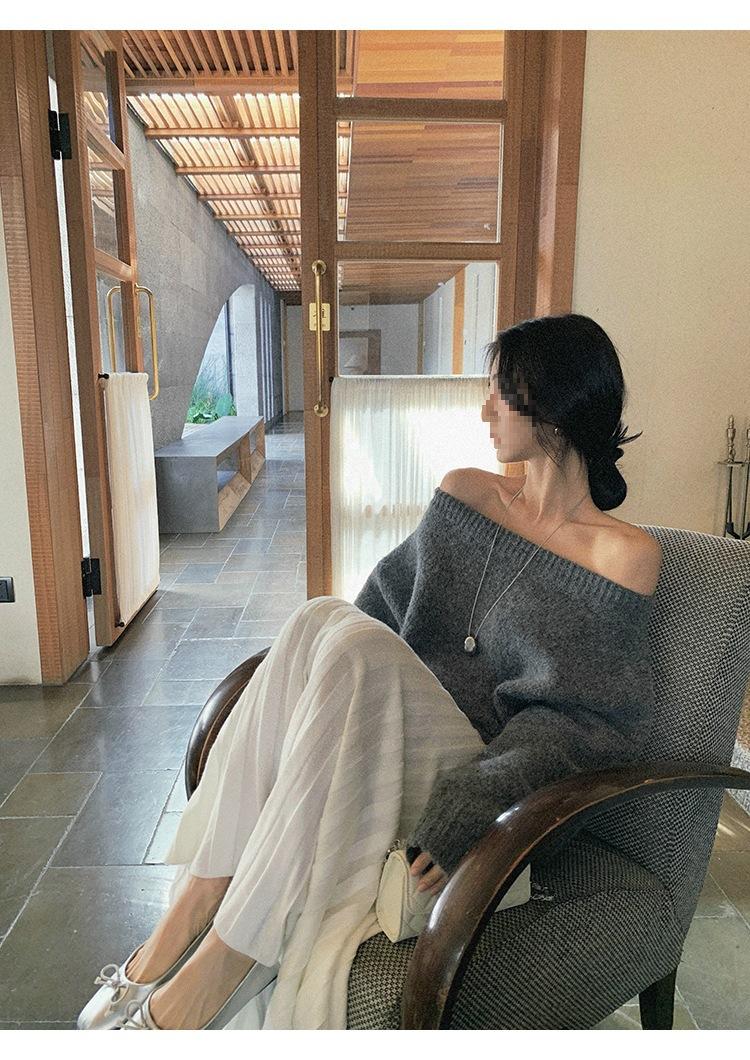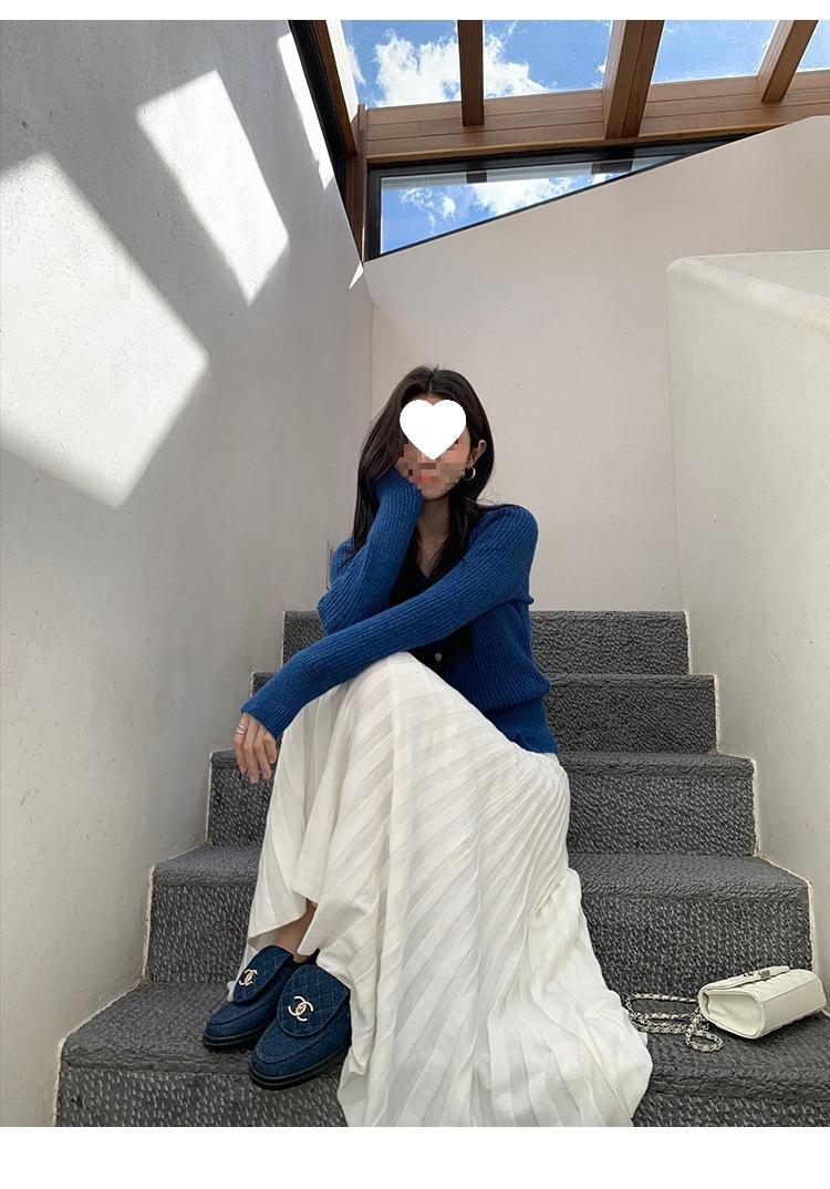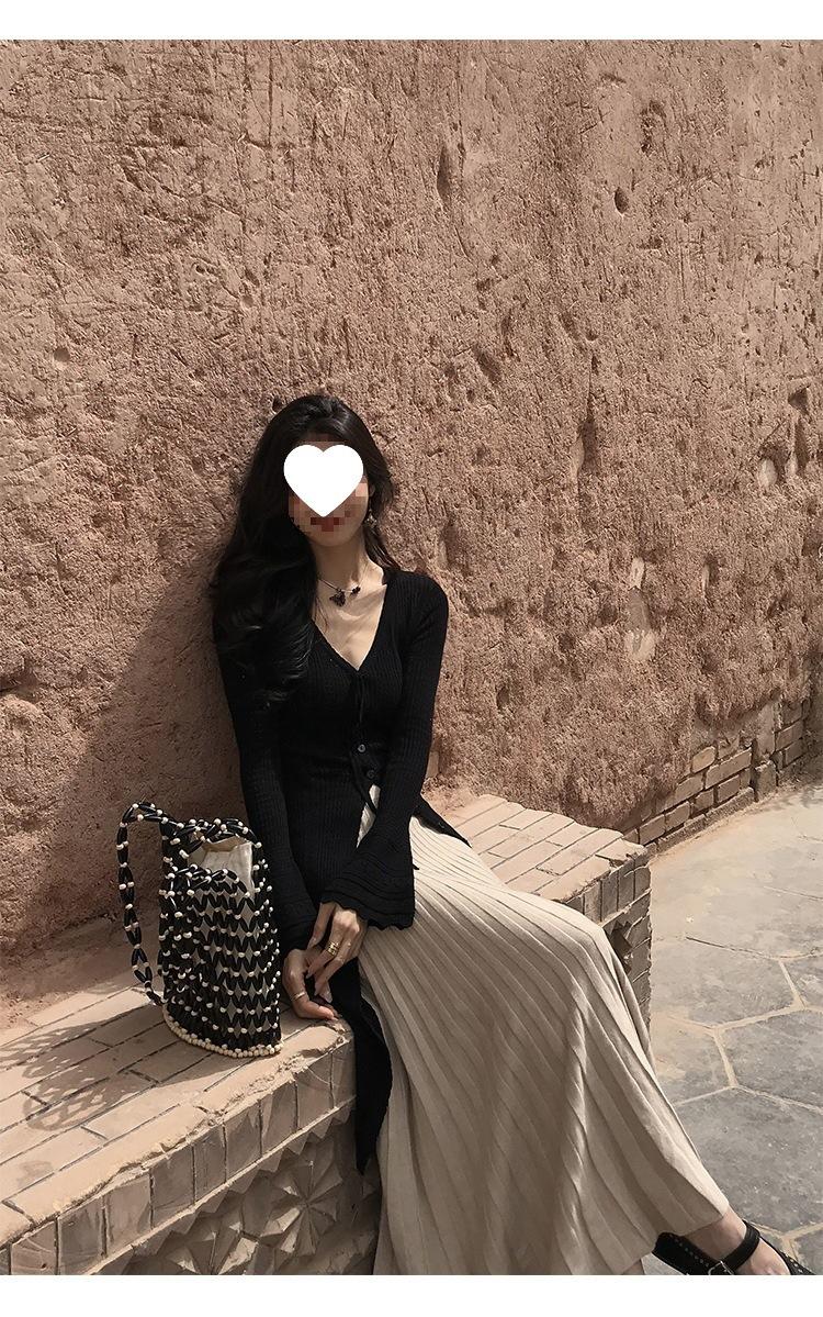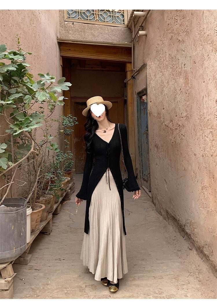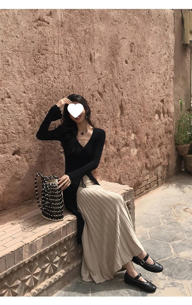 Falda Midi de Punto Beige para Mujer Otoño Invierno Cintura Alta Línea A Lana Acampanada Paraguas