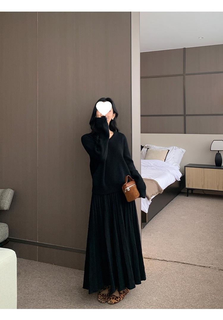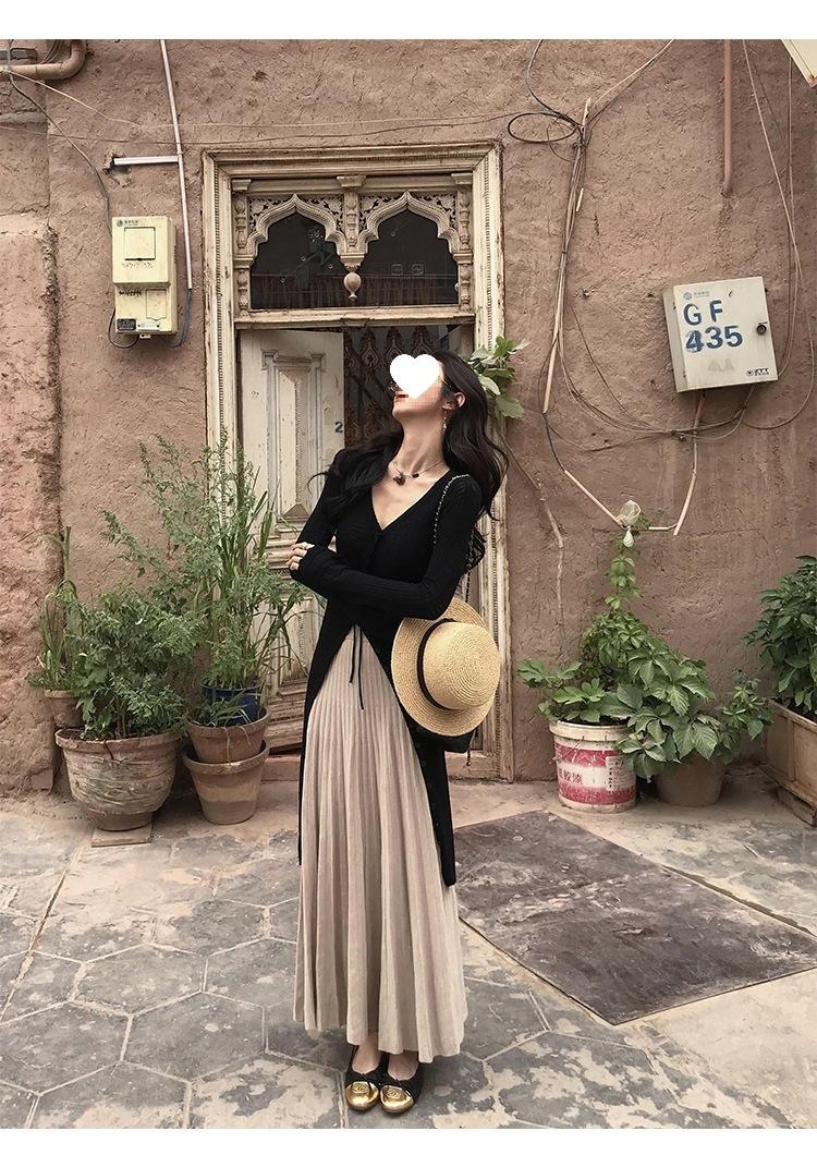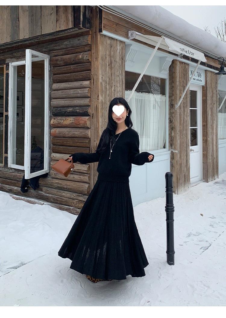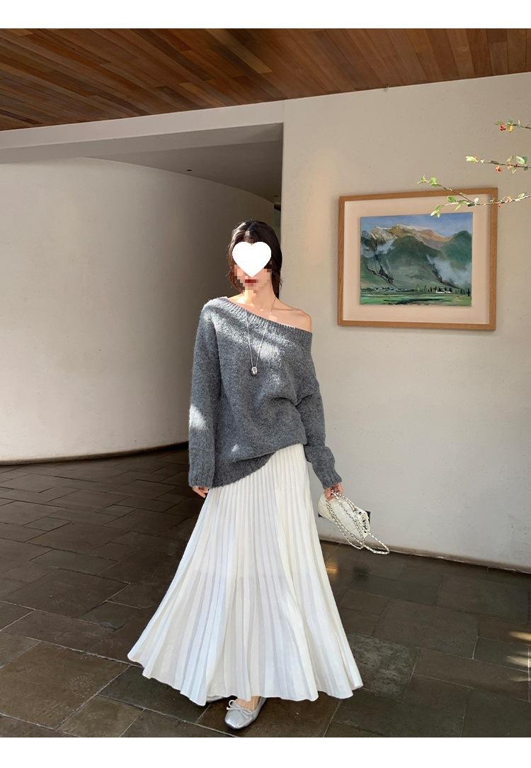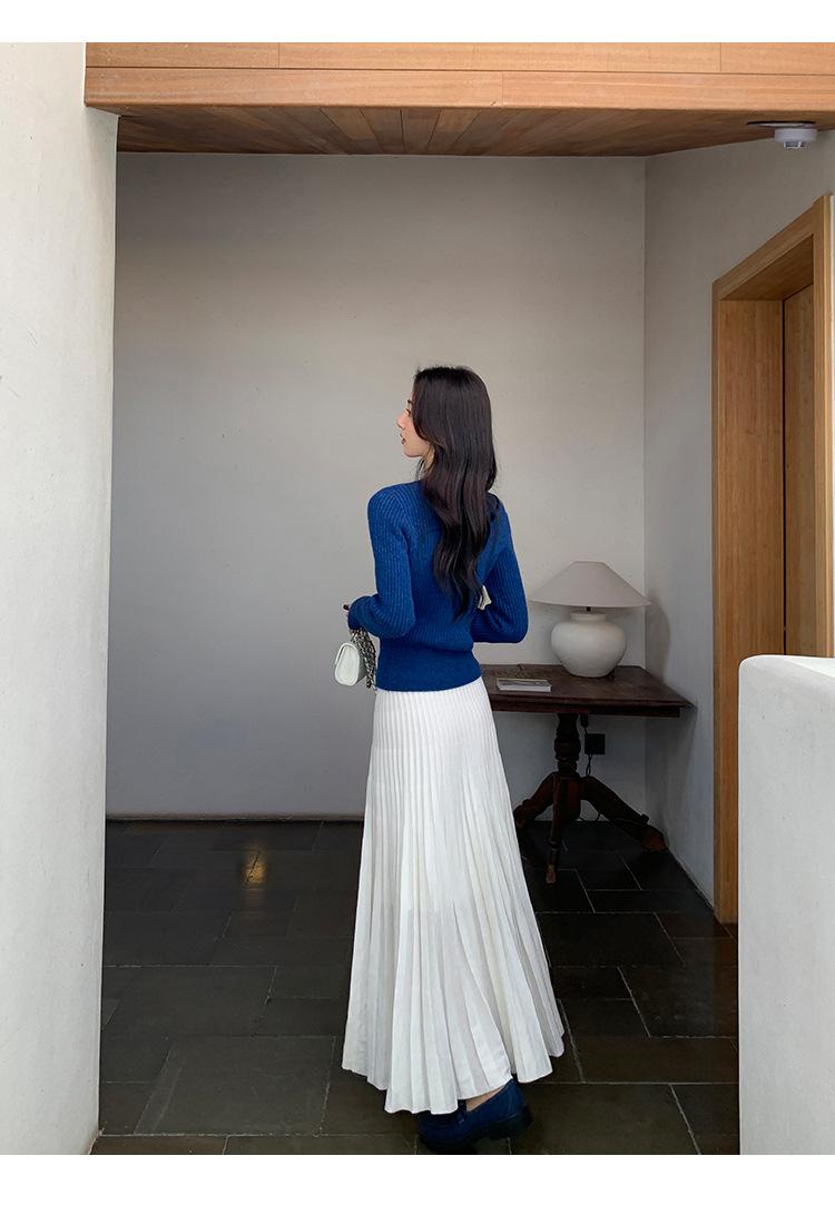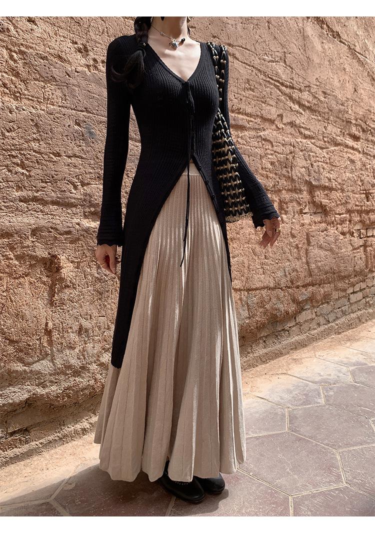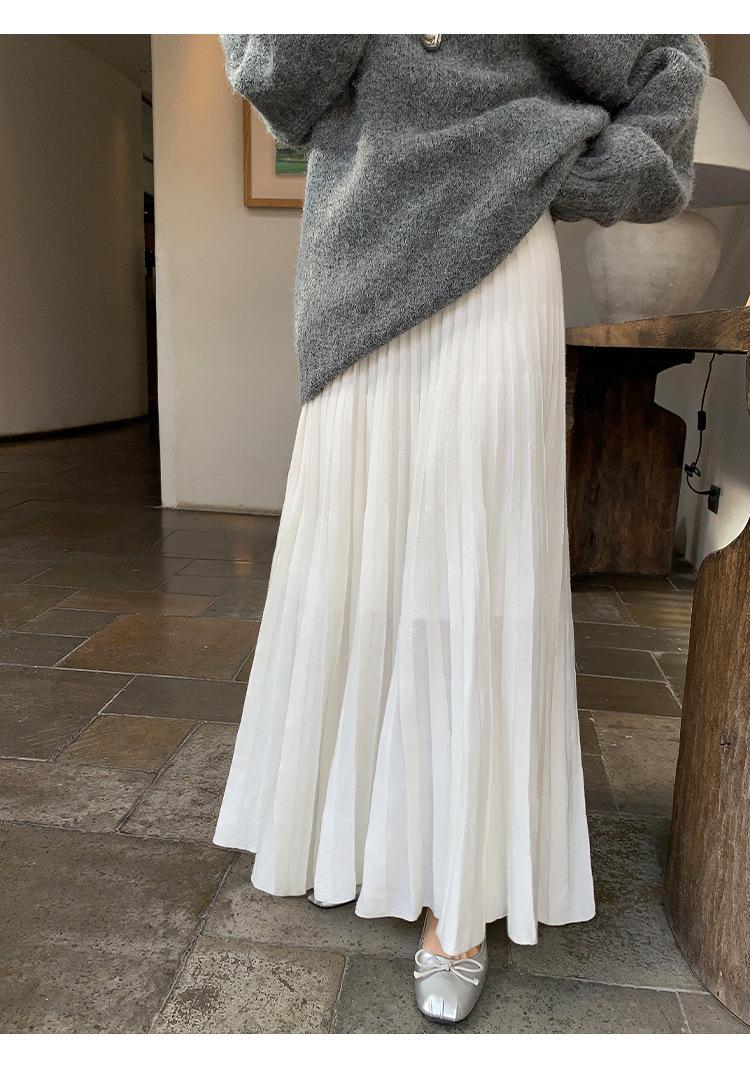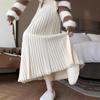 Falda midi gruesa de punto beige para mujer otoño invierno cintura alta línea A tejido de lana falda paraguas acampanada completa falda plisada de largo medio
