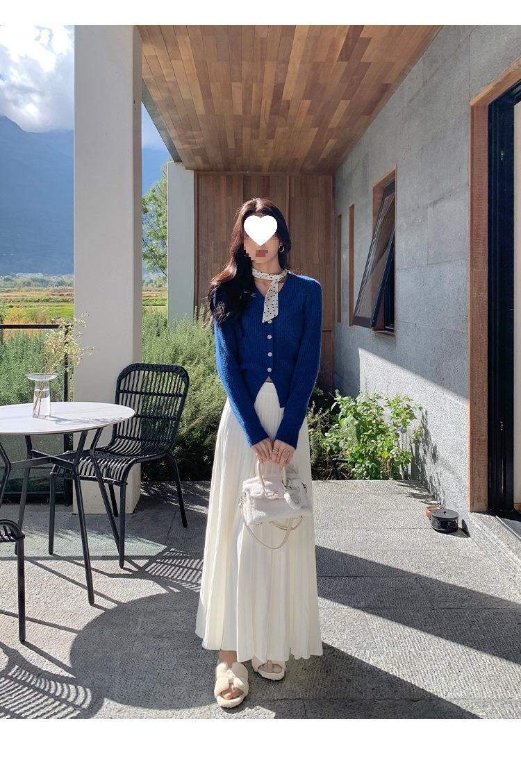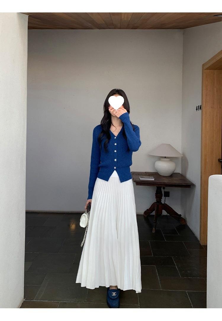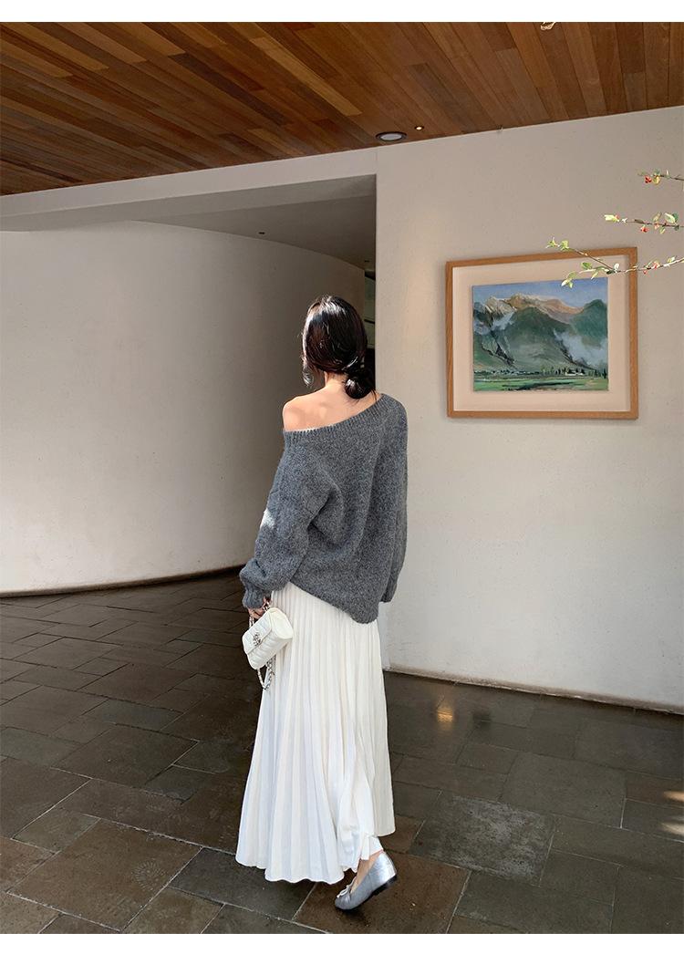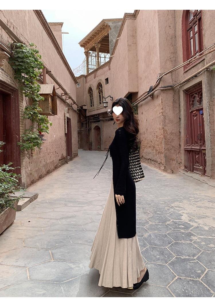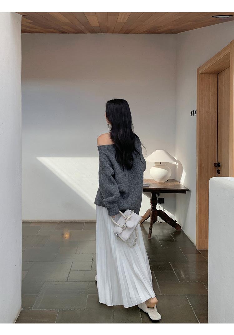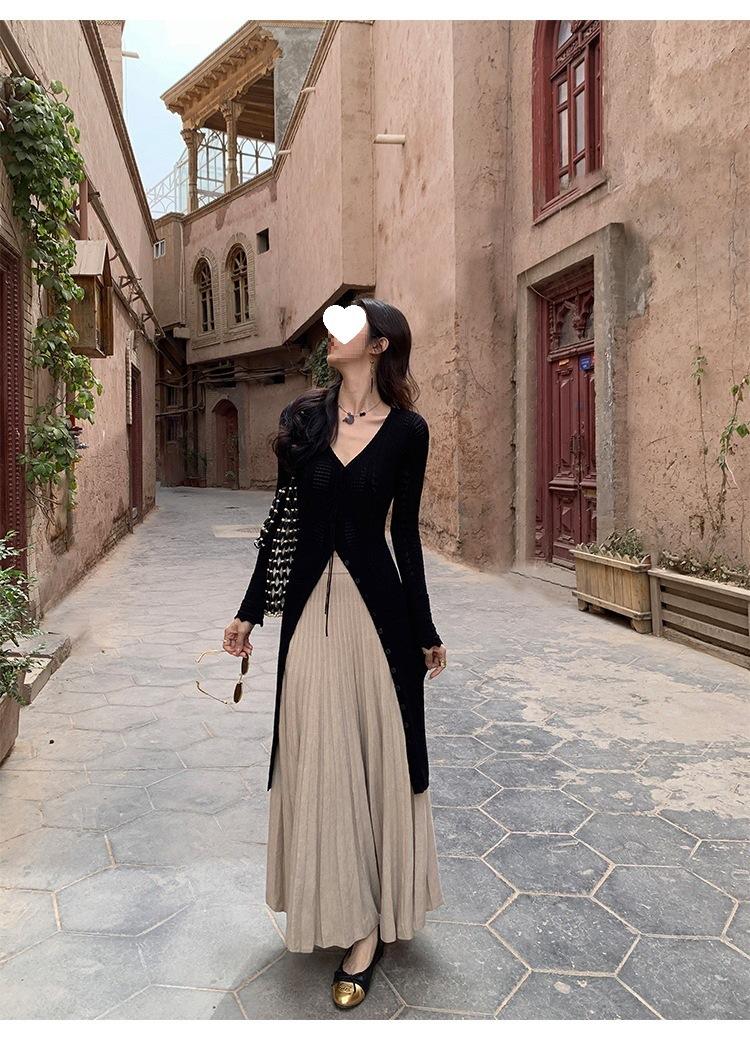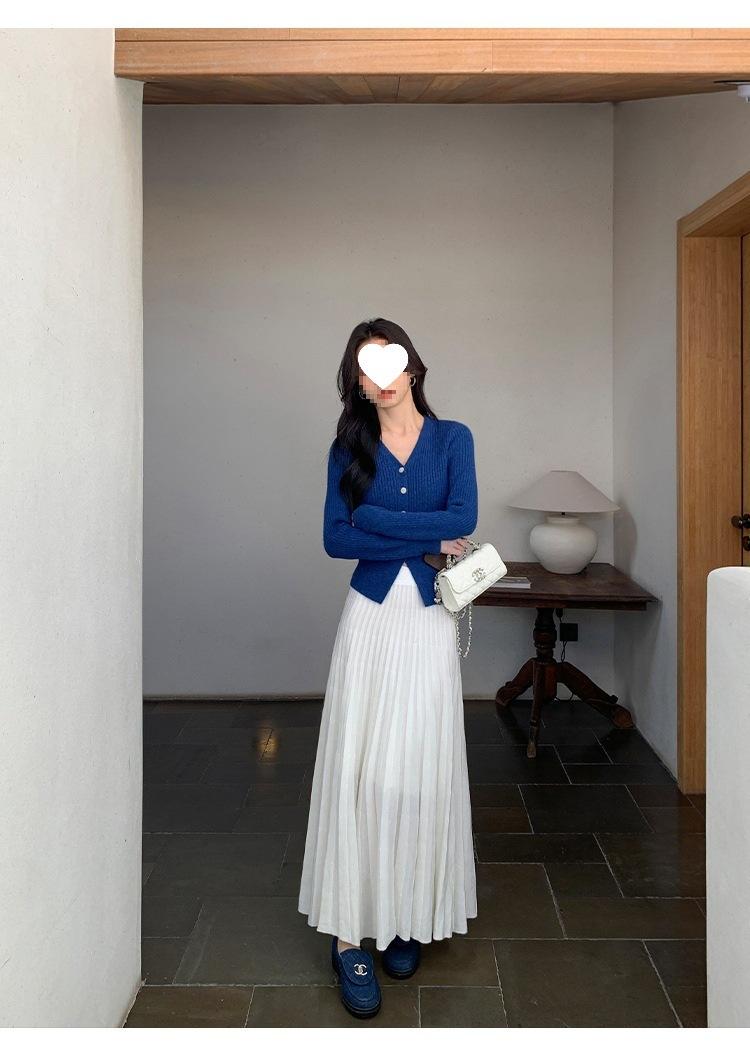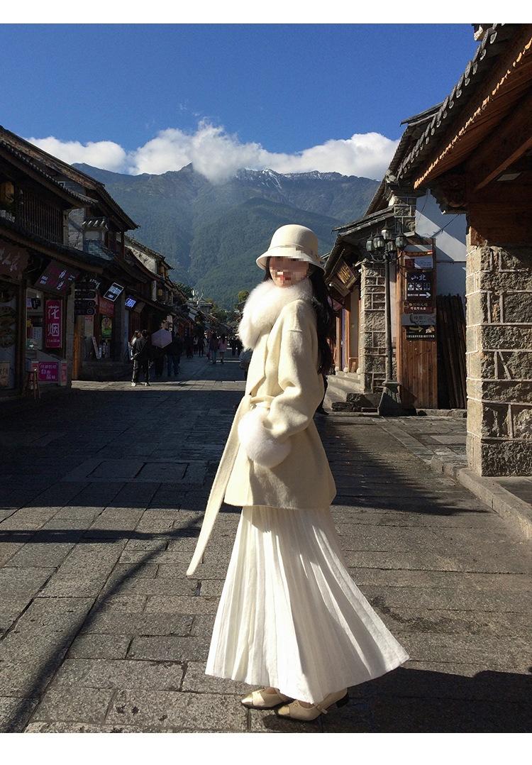 Falda midi gruesa de punto beige para mujer otoño invierno cintura alta línea A tejido de lana falda paraguas acampanada completa falda plisada de largo medio