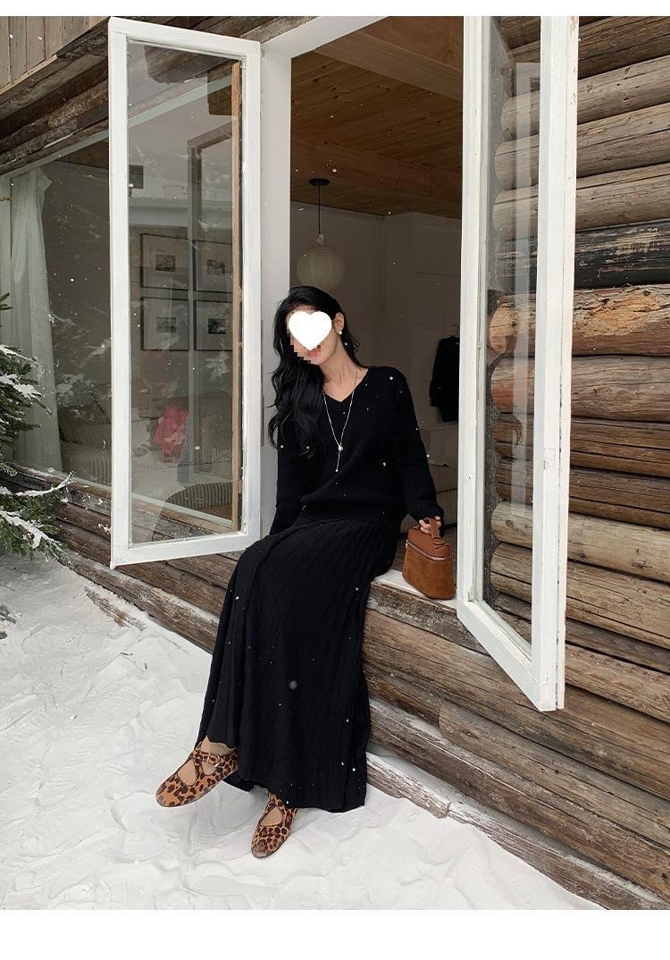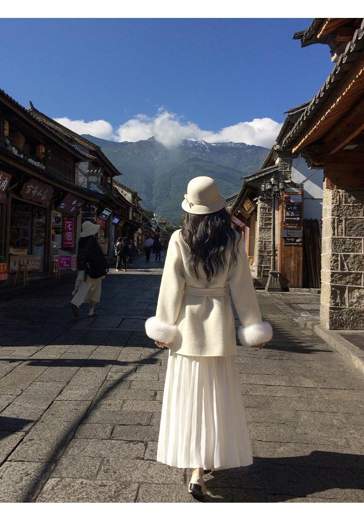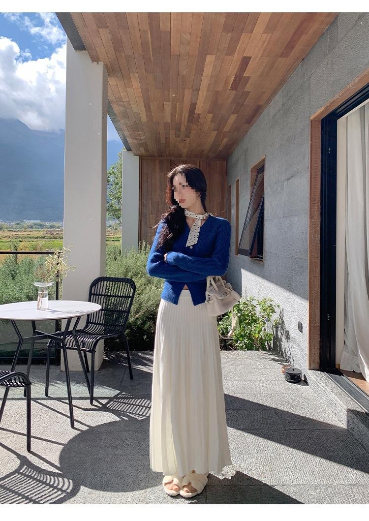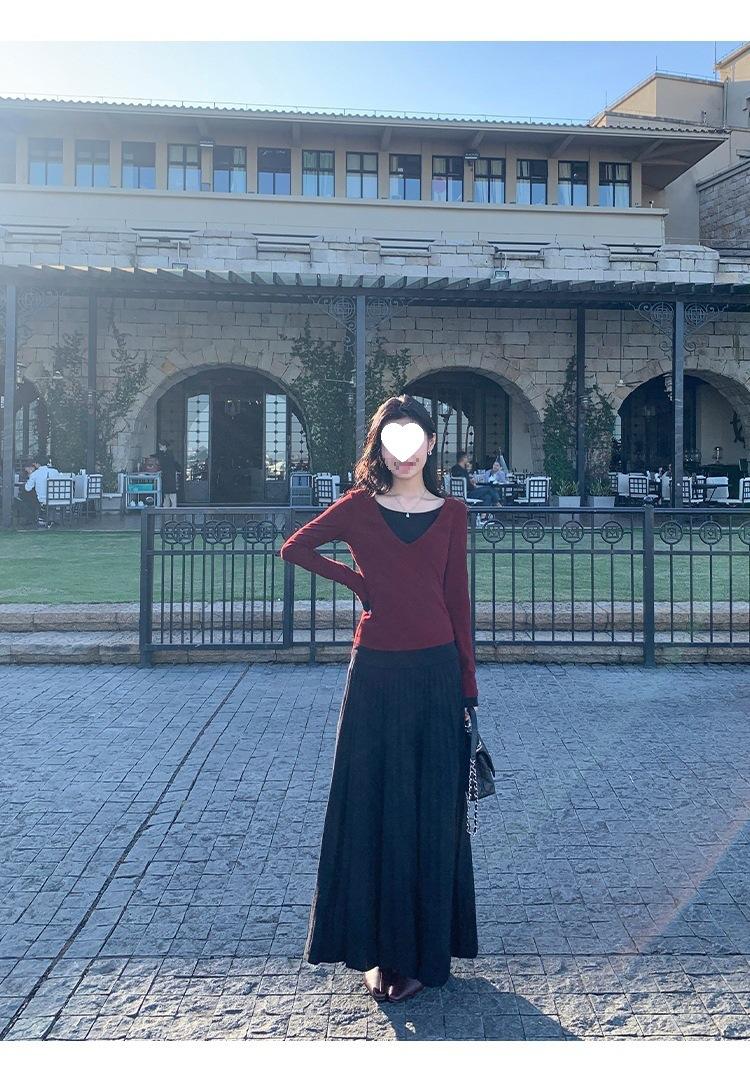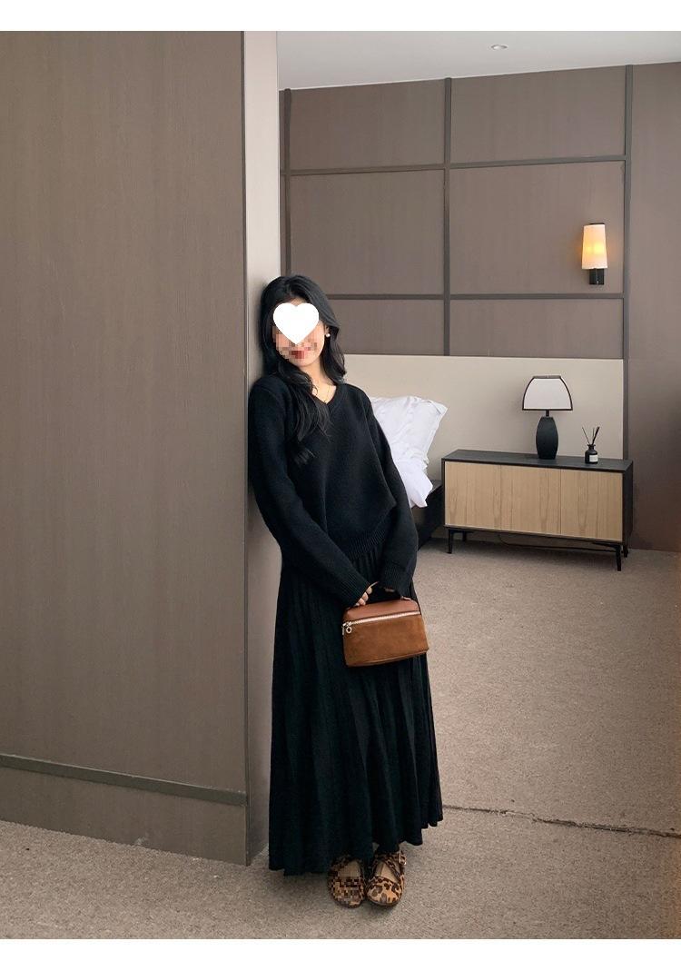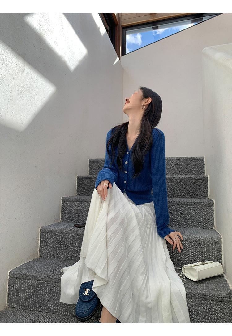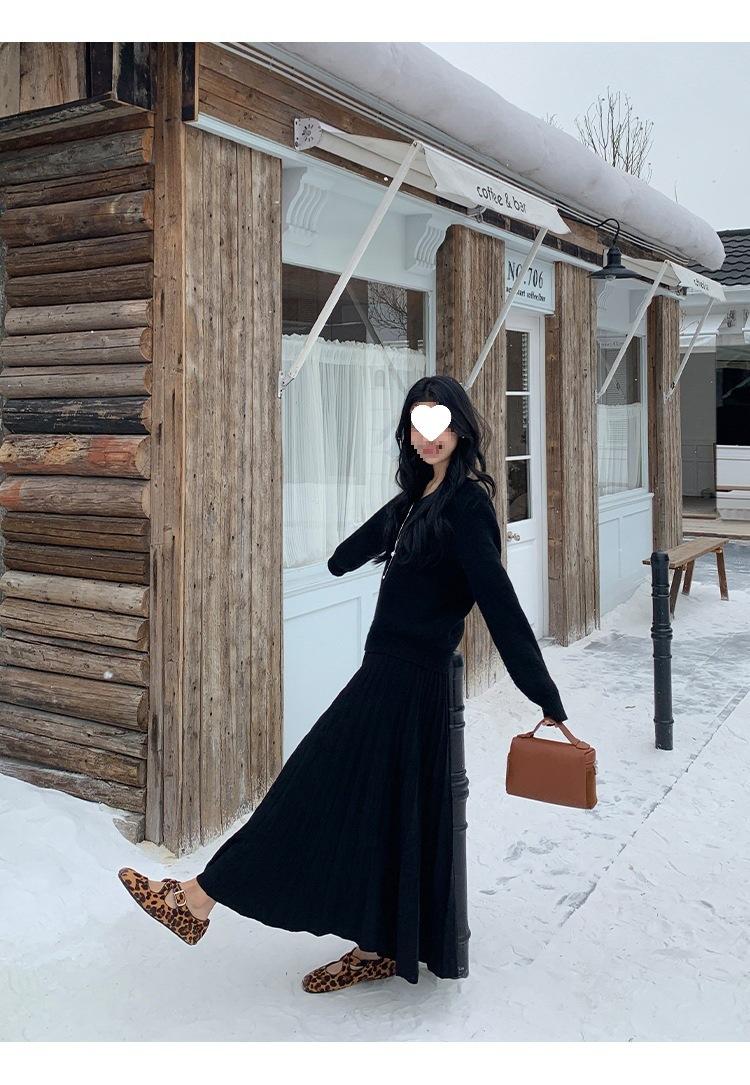 Falda midi gruesa de punto beige para mujer otoño invierno cintura alta línea A tejido de lana falda paraguas acampanada completa falda plisada de largo medio