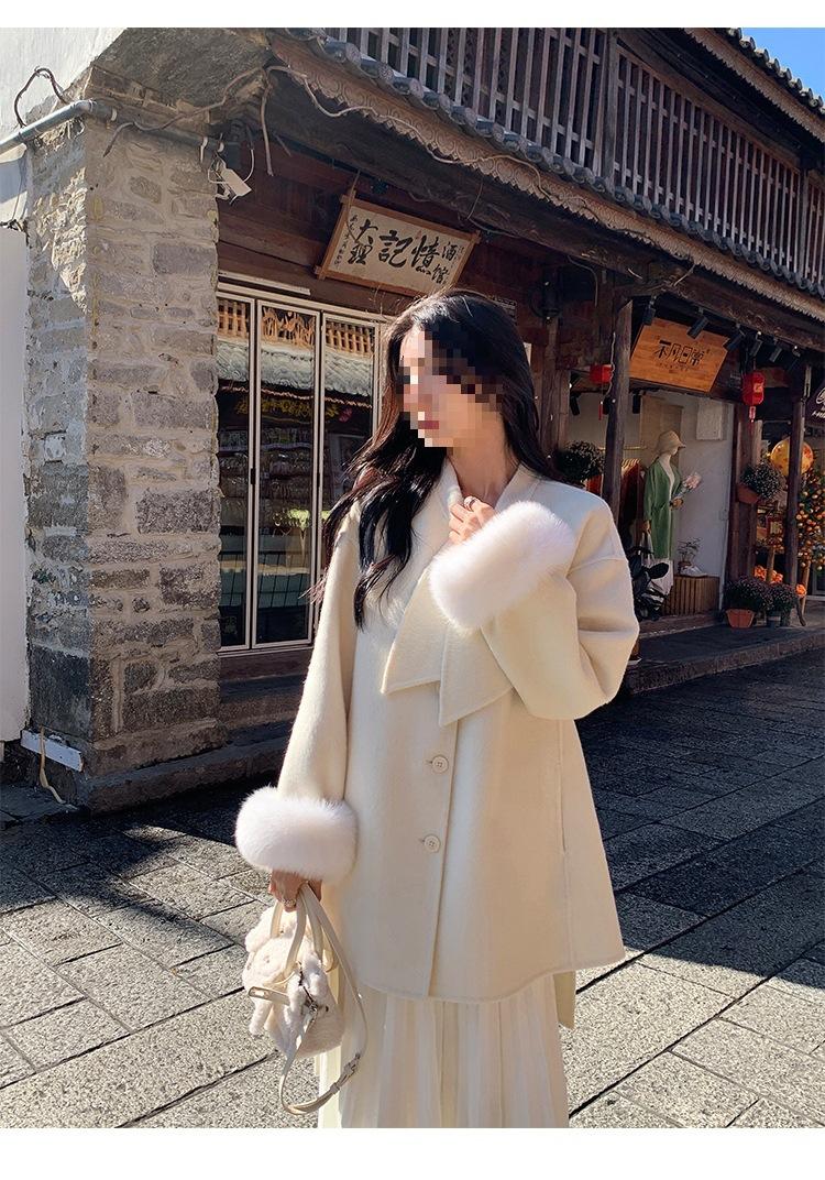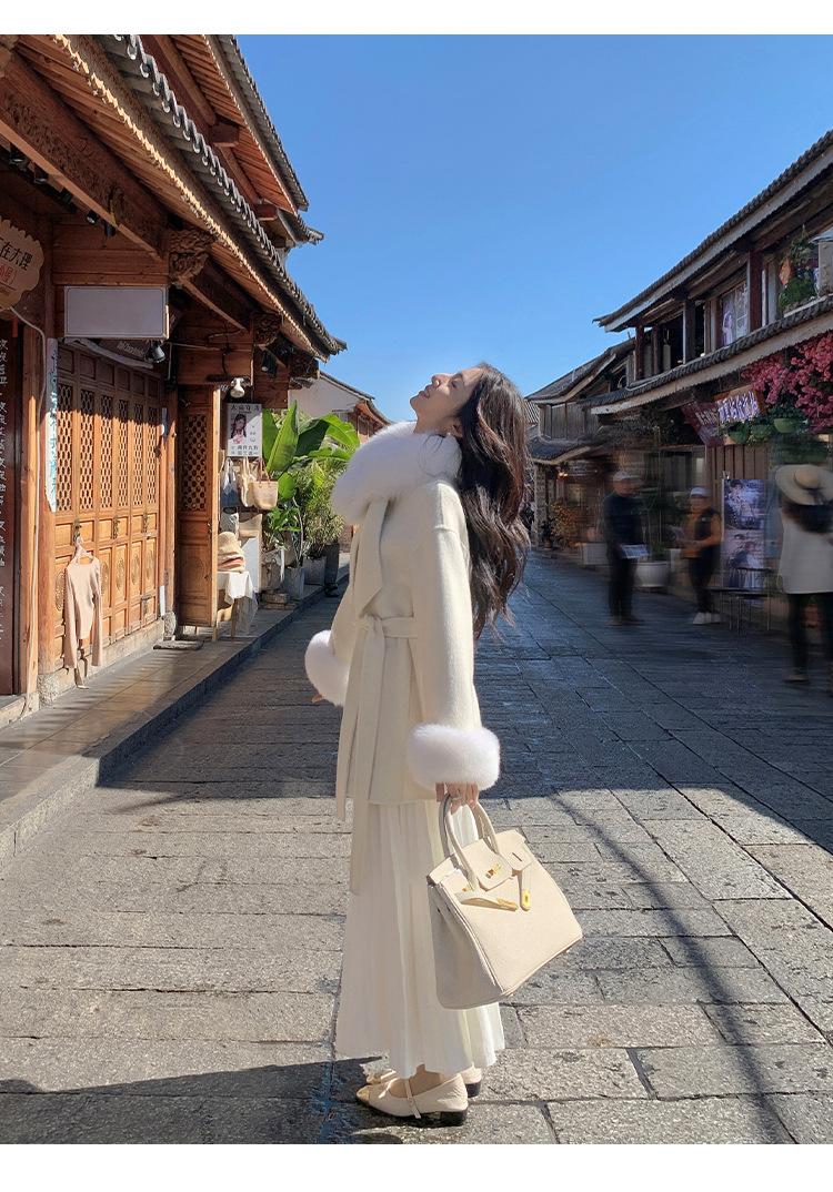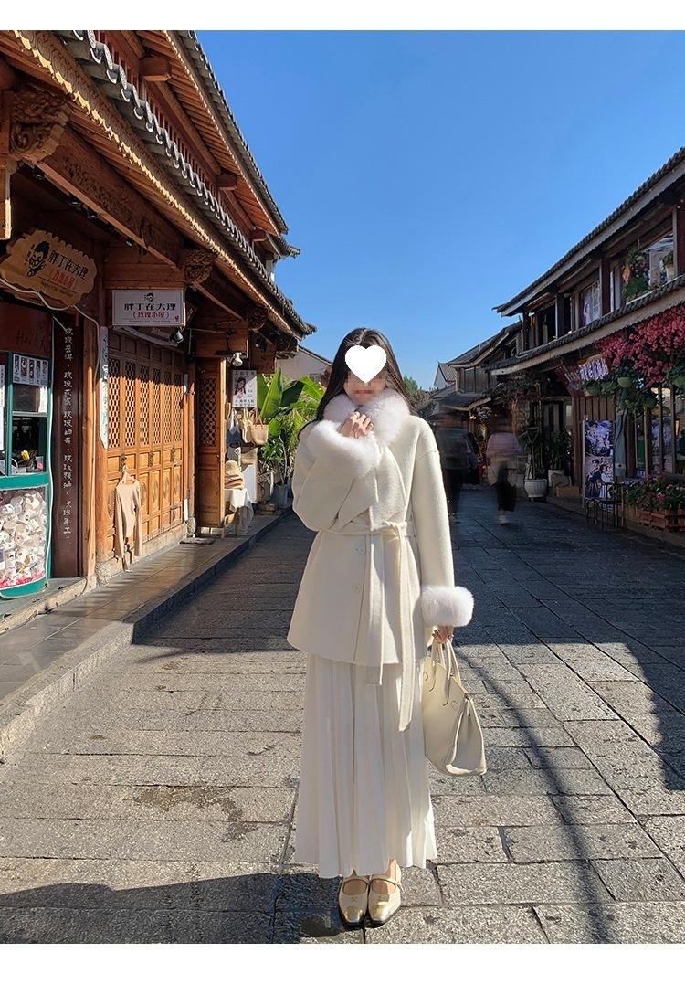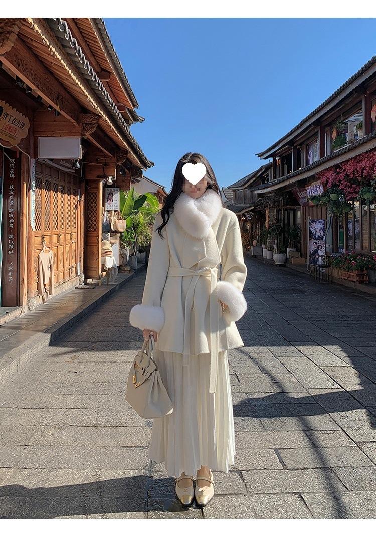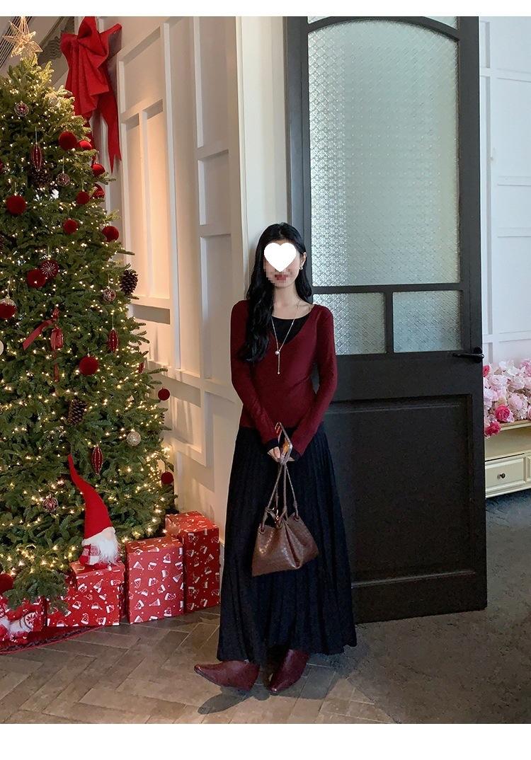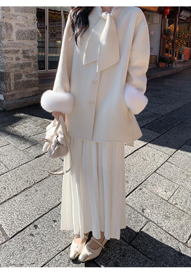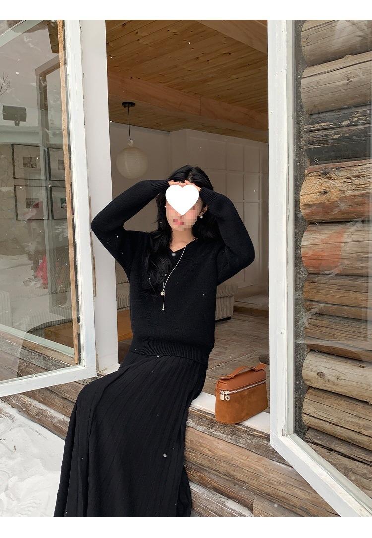 Falda midi gruesa de punto beige para mujer otoño invierno cintura alta línea A tejido de lana falda paraguas acampanada completa falda plisada de largo medio