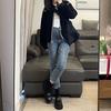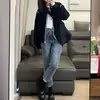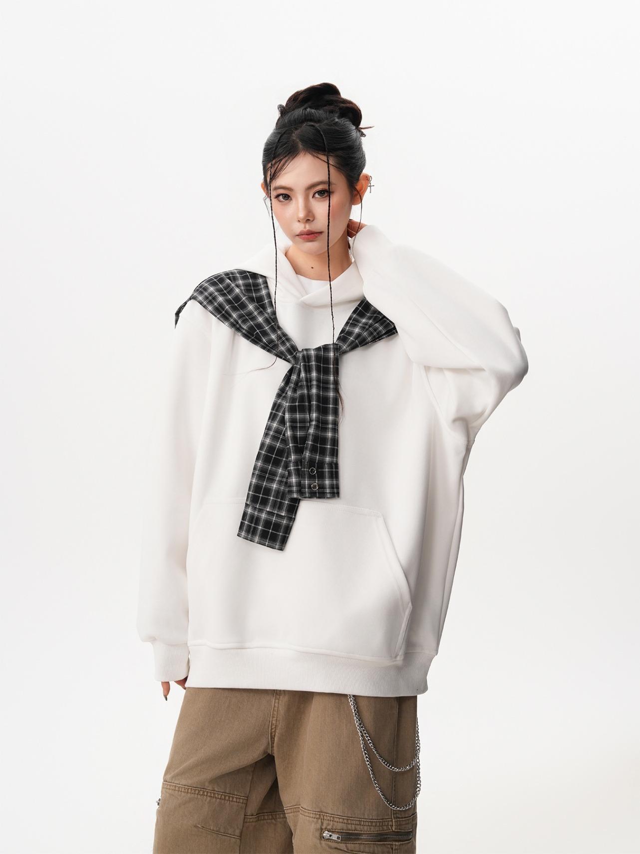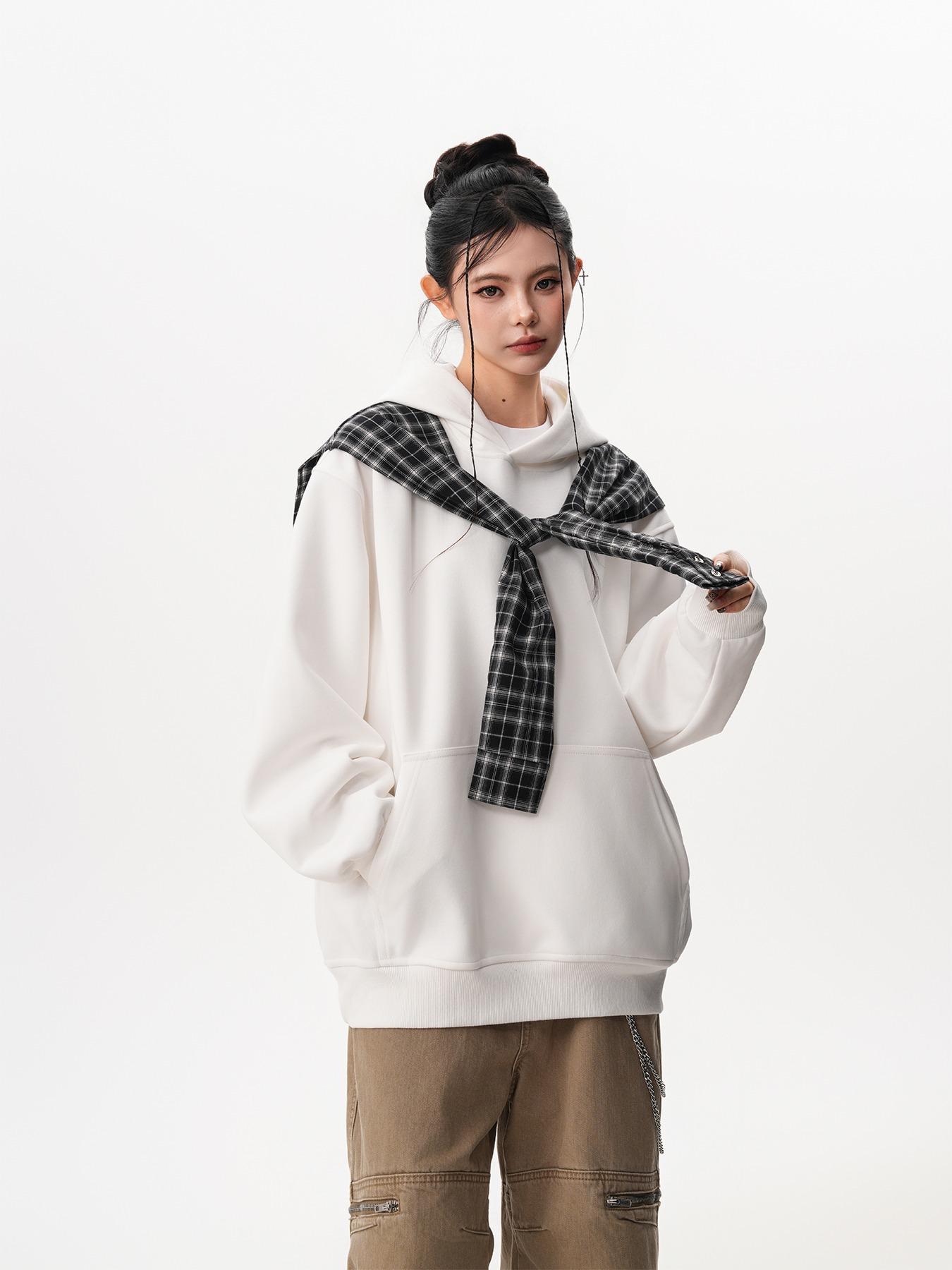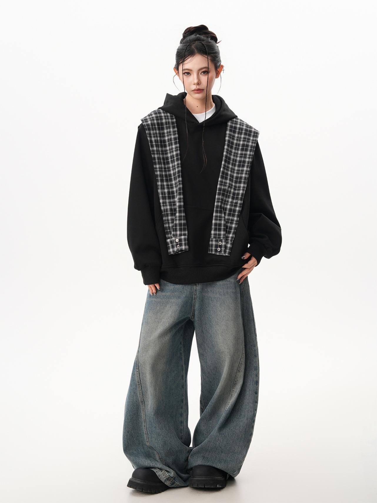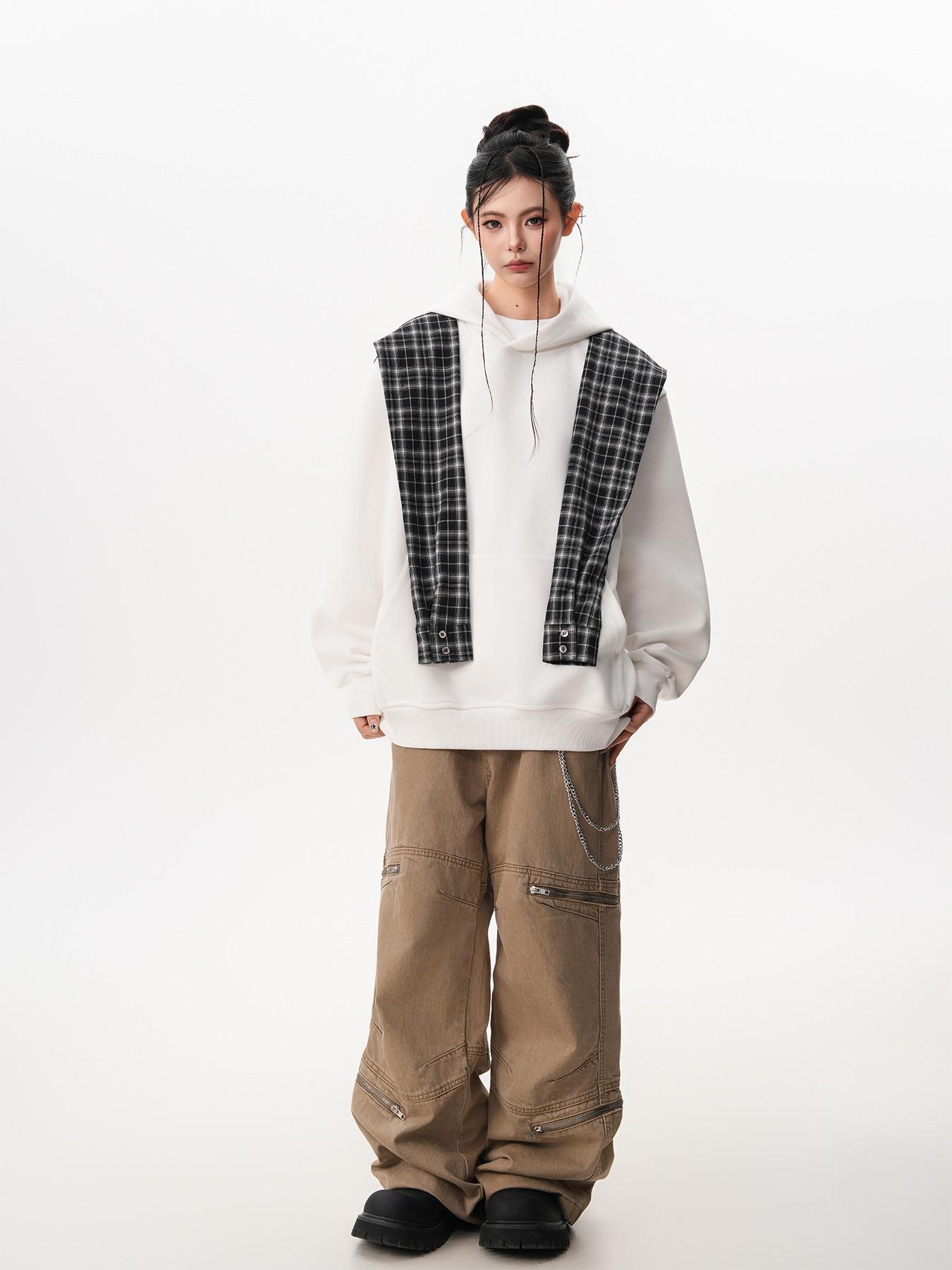 Chal de cuadros con bloques de color Sudadera con capucha de dos piezas falsas Mujer Hombre Otoño Sentido del diseño de minoría Perezoso Versátil Top para pareja