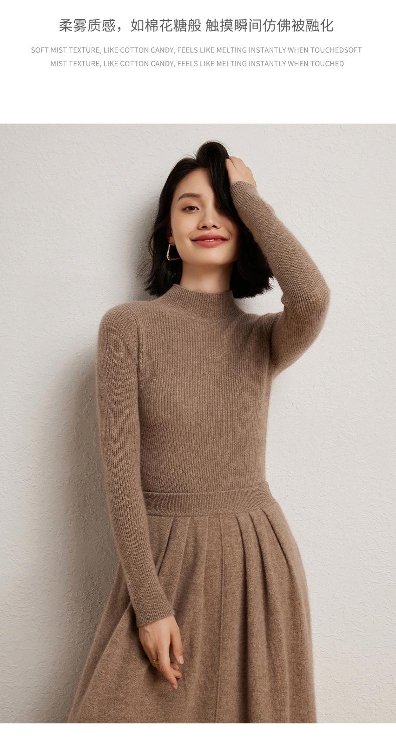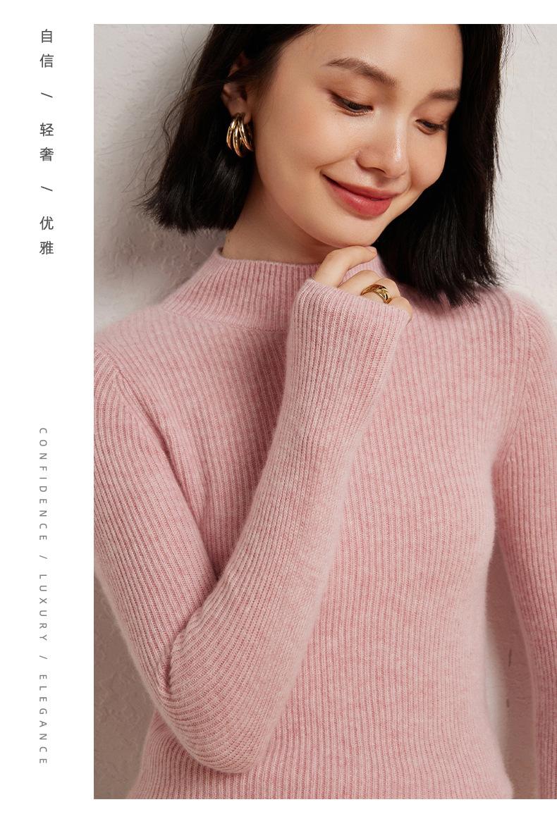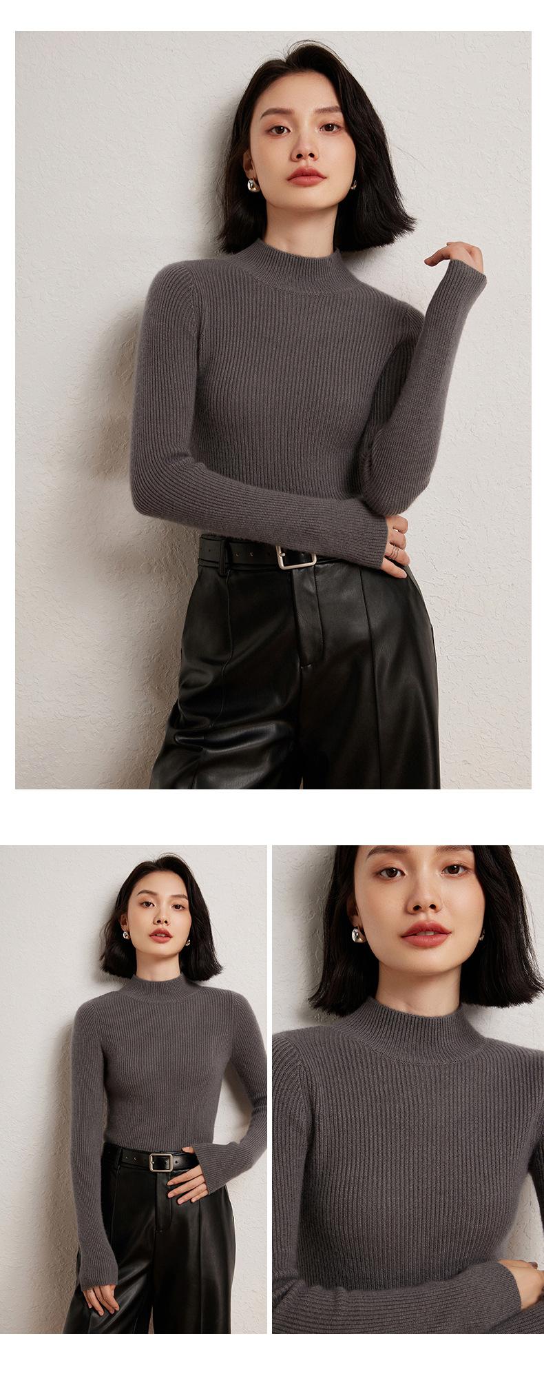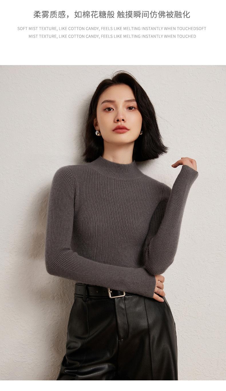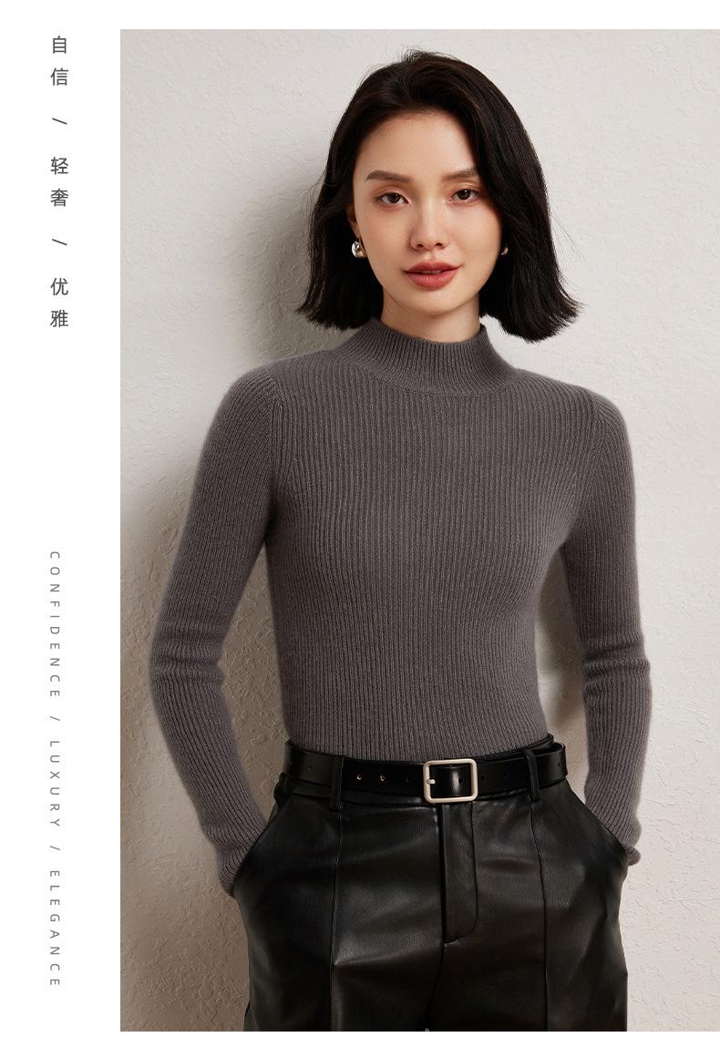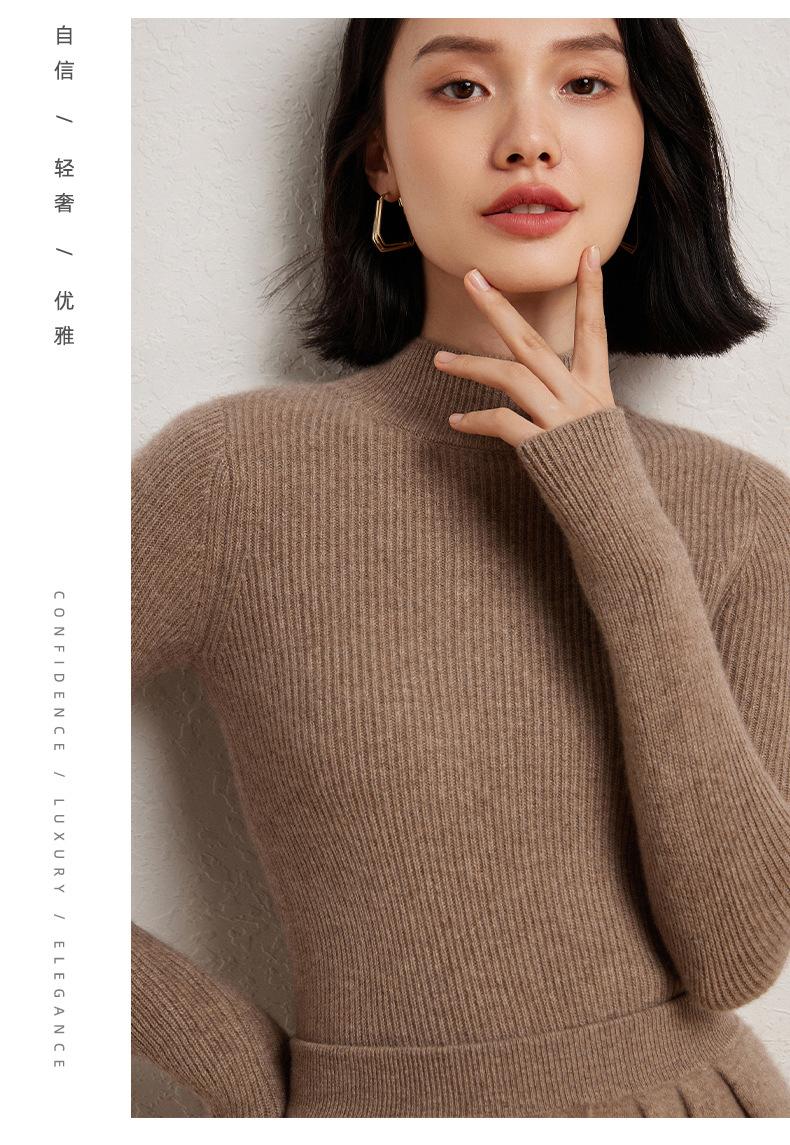 Suéter de cachemira nuevo otoño e invierno para mujer cuello medio alto tejido de punto acanalado de siete agujas ajuste ceñido suéter básico color sólido manga larga suéter tipo jersey