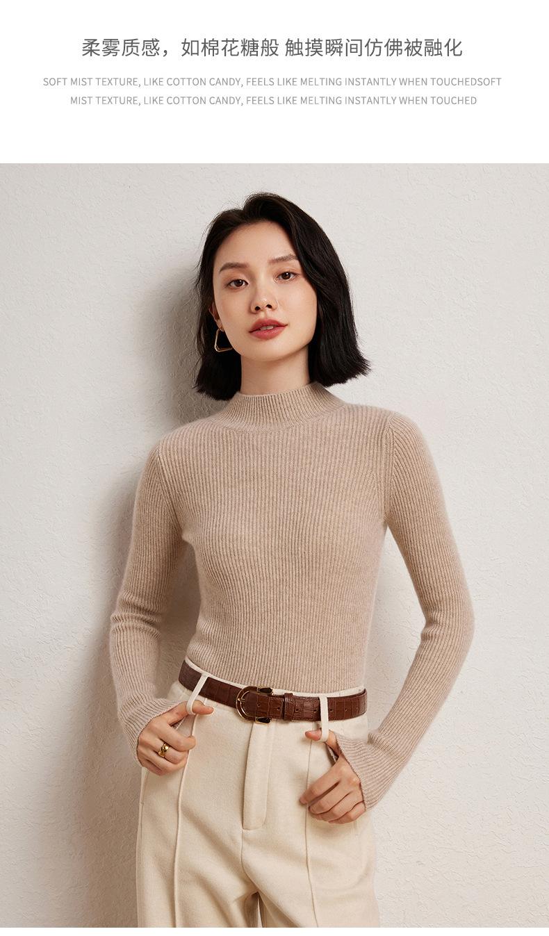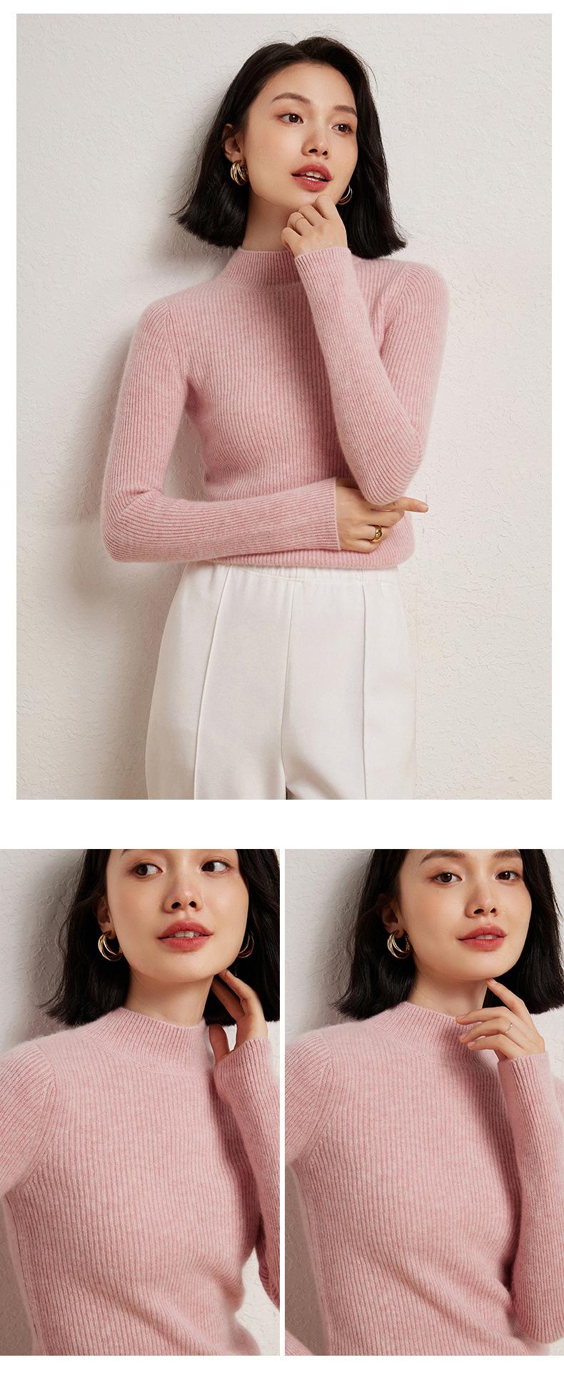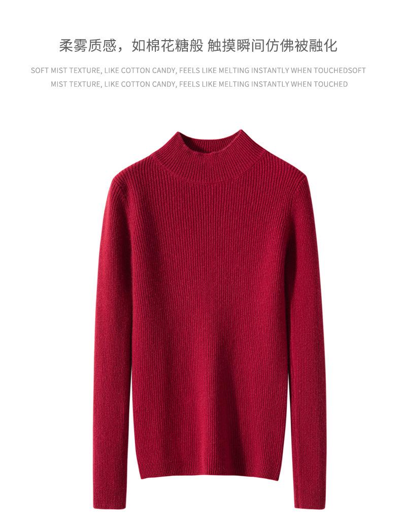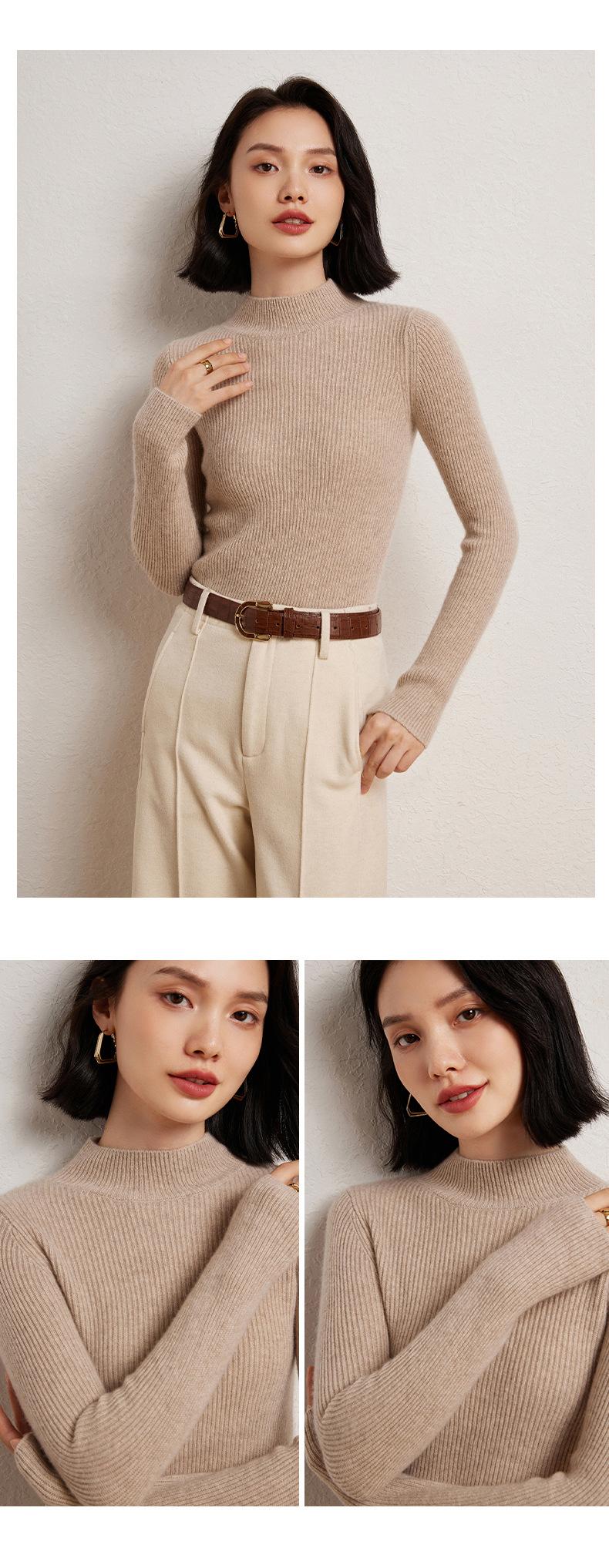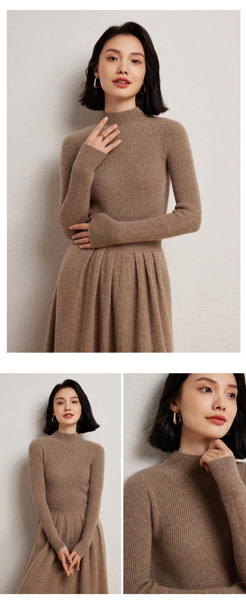 Suéter de cachemira nuevo otoño e invierno para mujer cuello medio alto tejido de punto acanalado de siete agujas ajuste ceñido suéter básico color sólido manga larga suéter tipo jersey