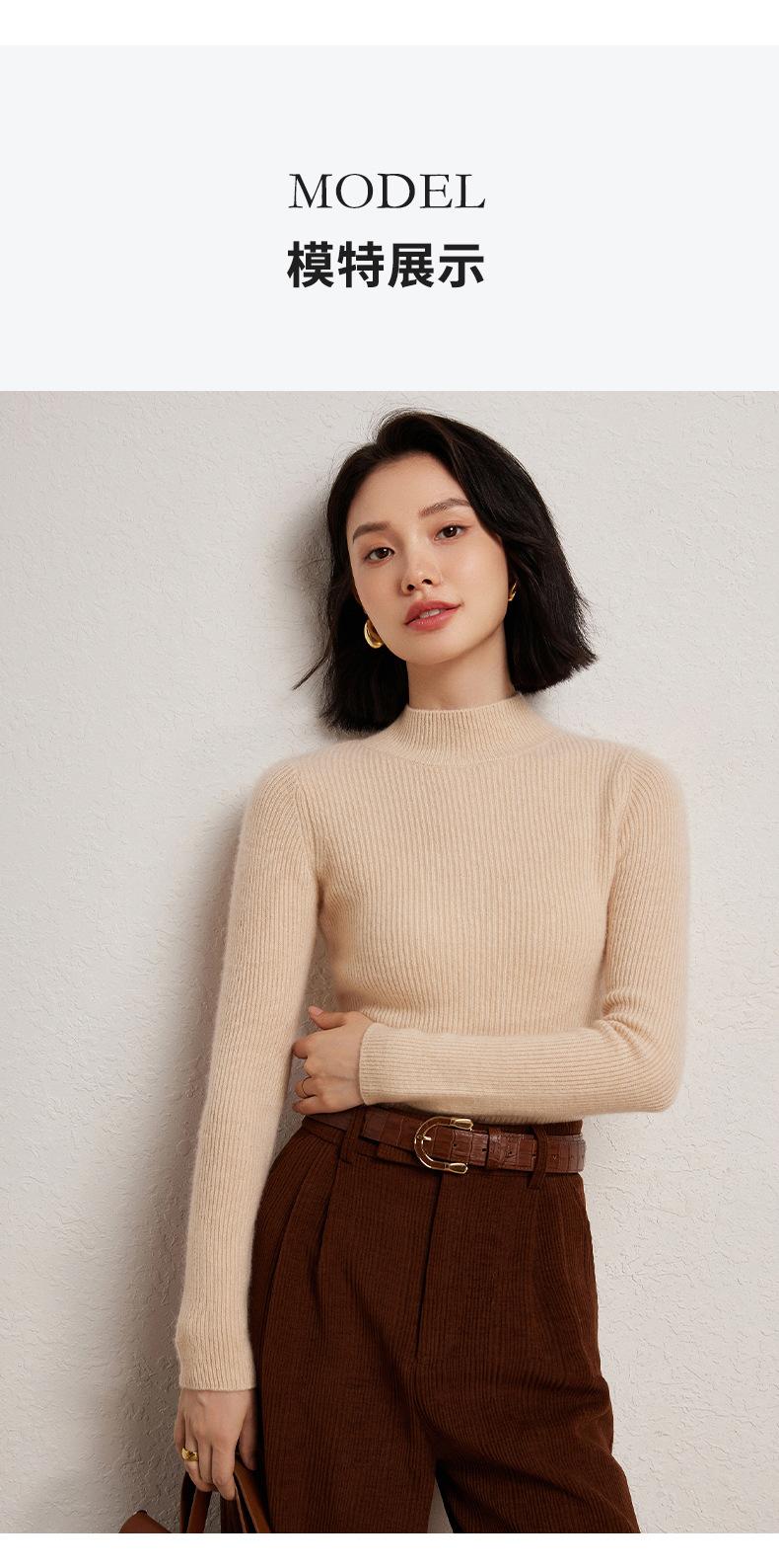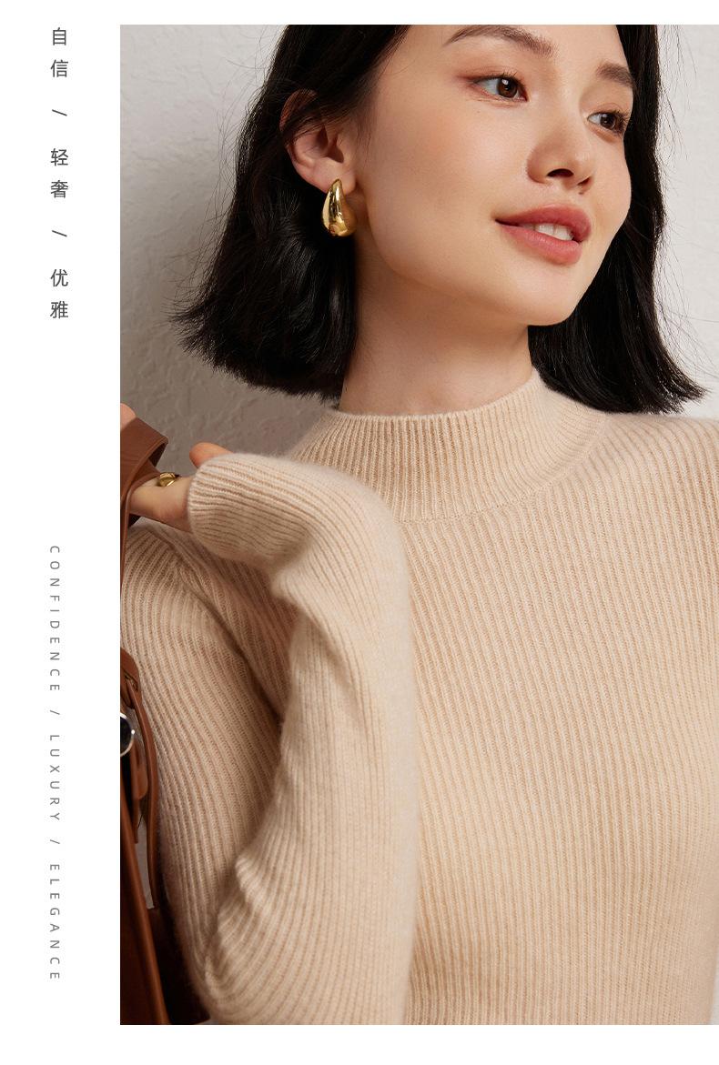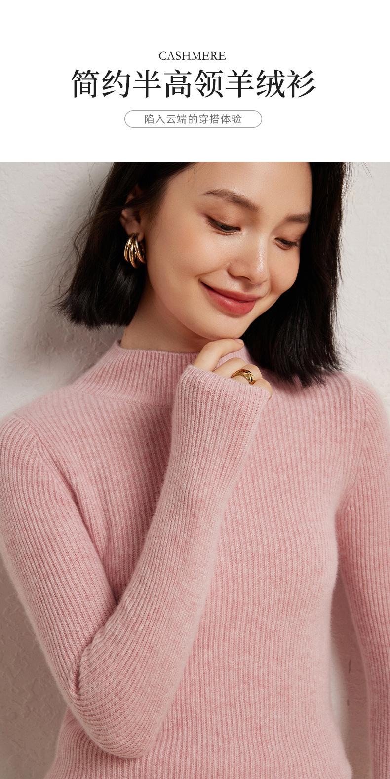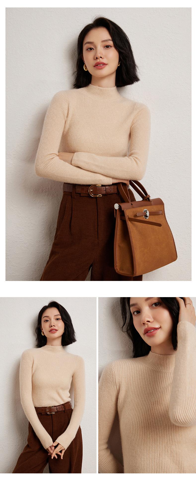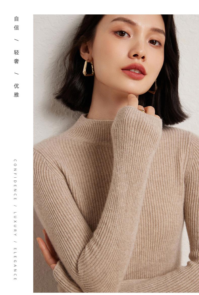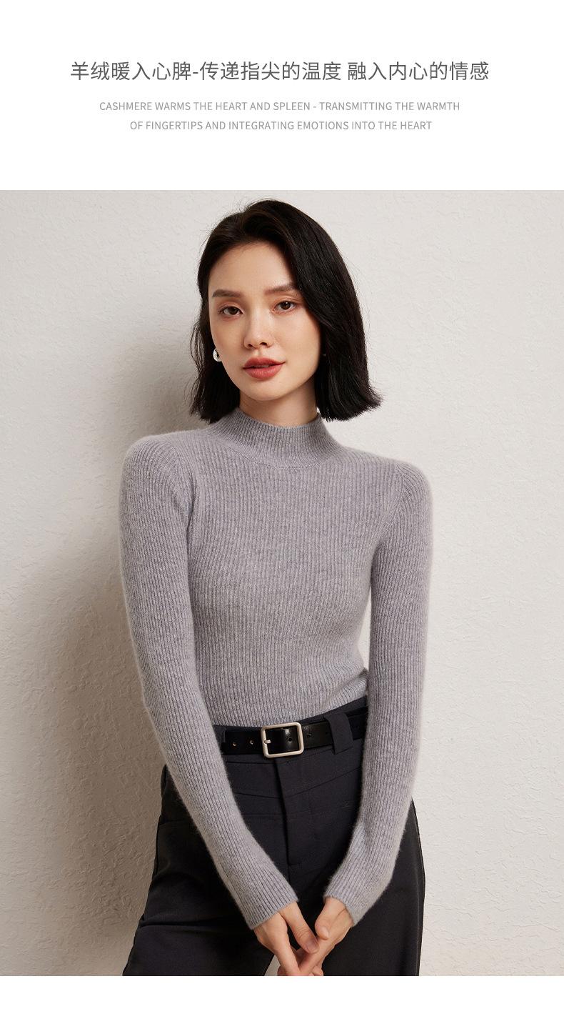 Suéter de cachemira nuevo otoño e invierno para mujer cuello medio alto tejido de punto acanalado de siete agujas ajuste ceñido suéter básico color sólido manga larga suéter tipo jersey