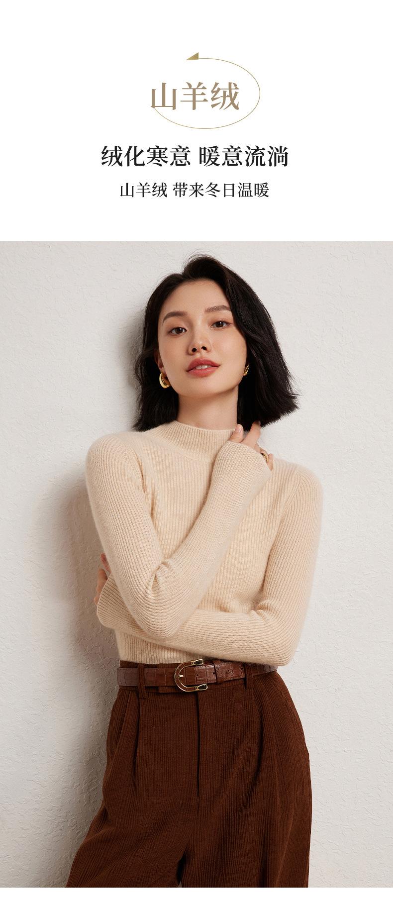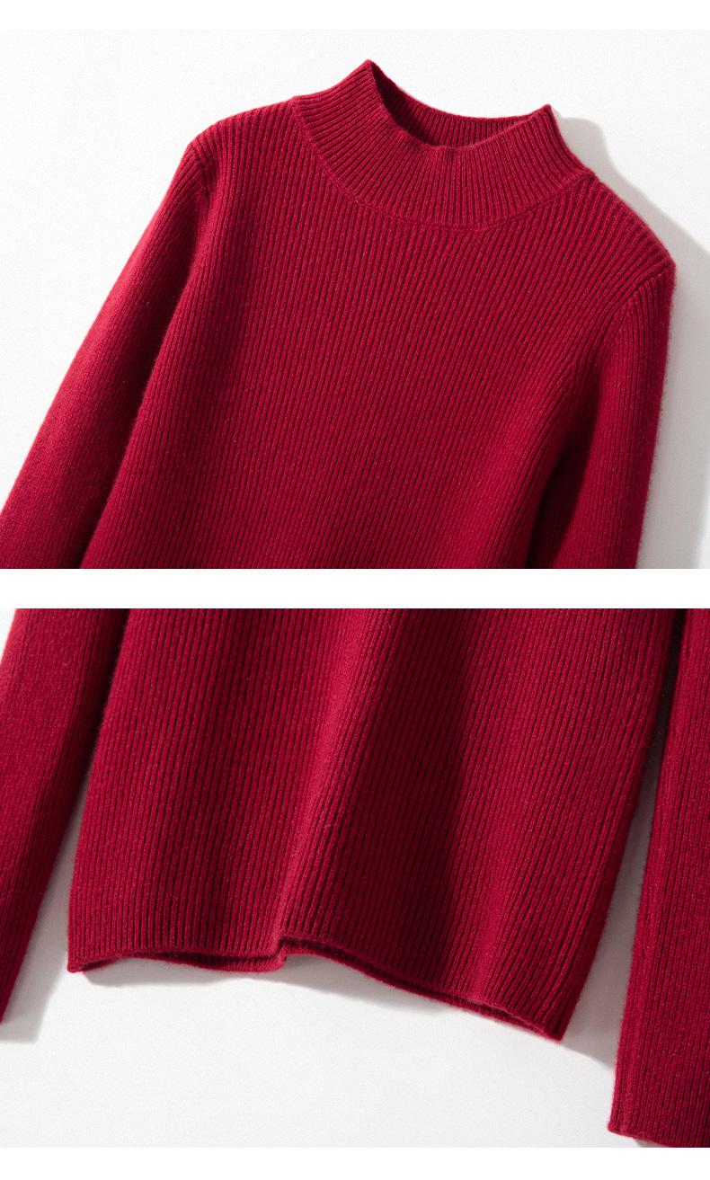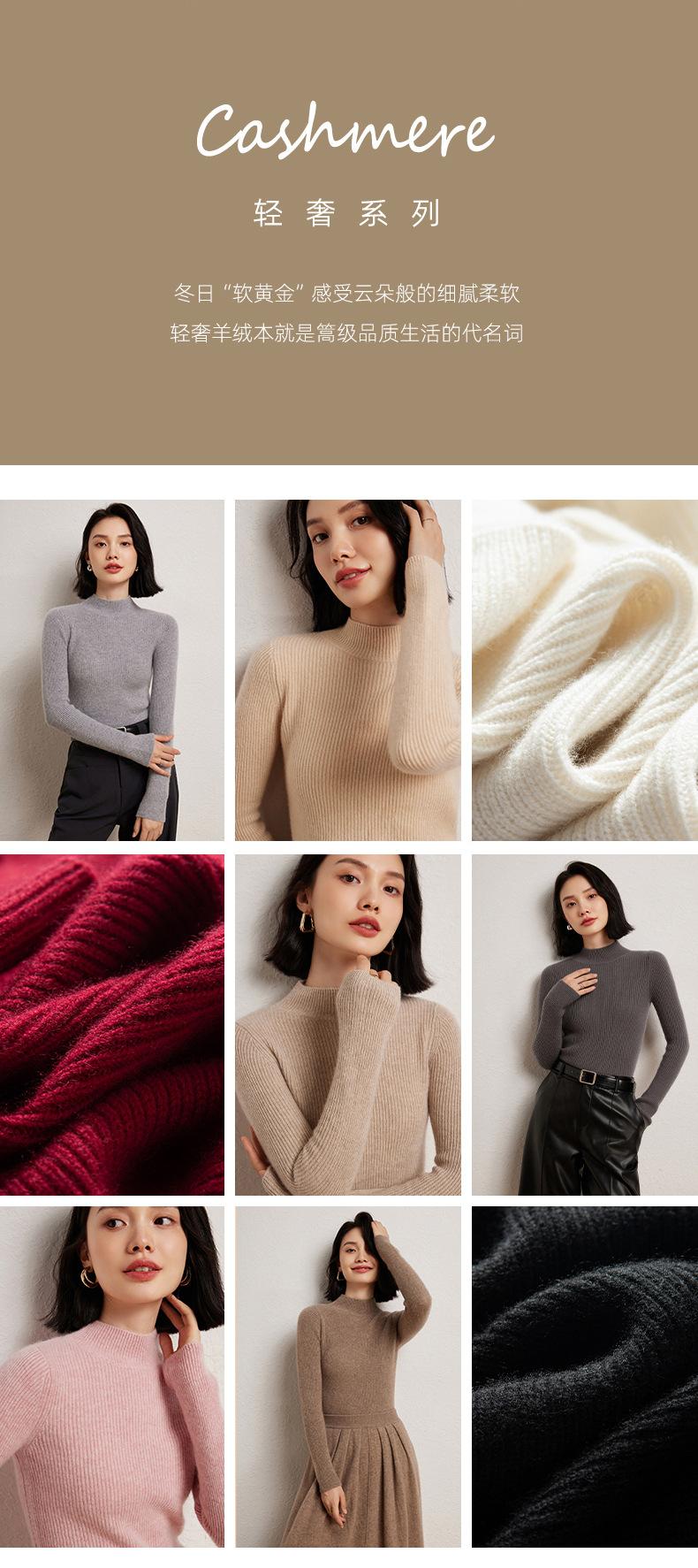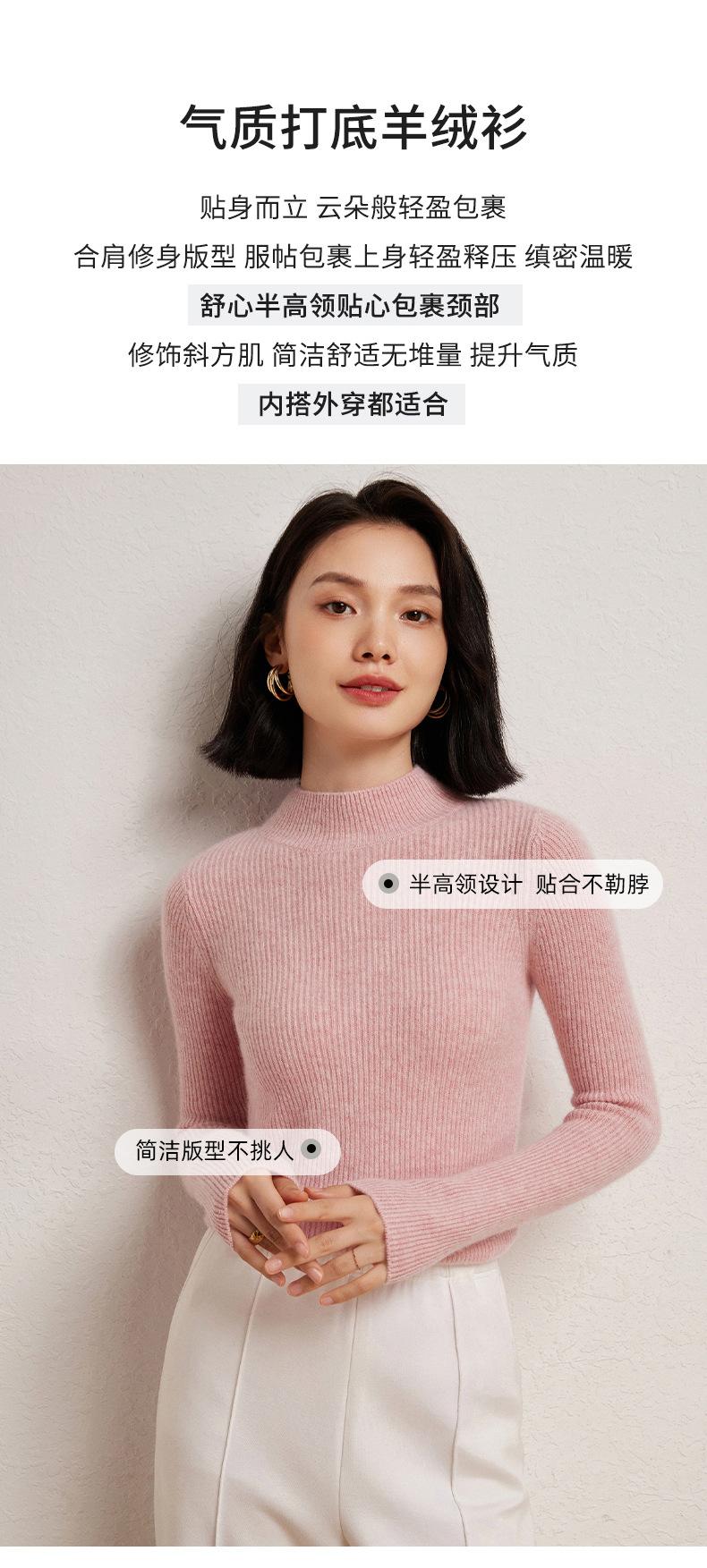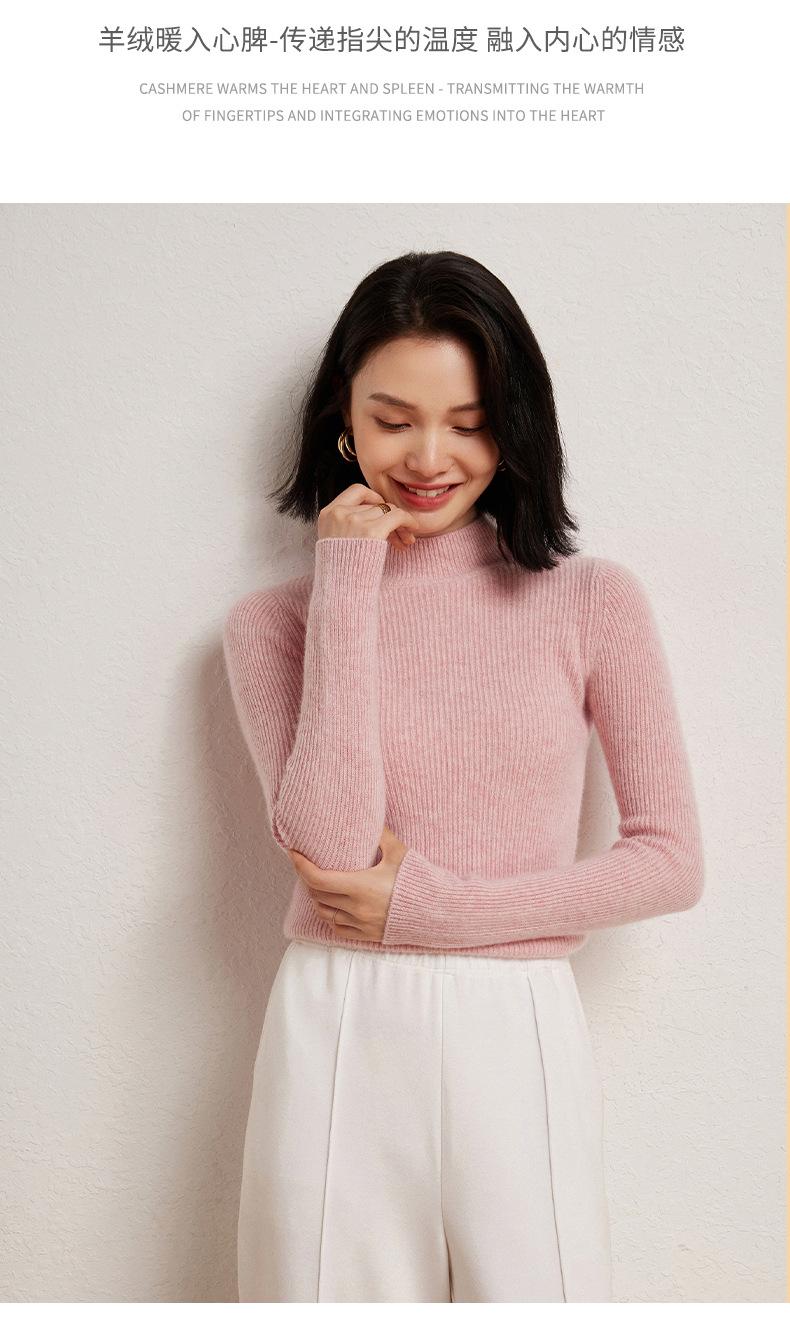 Suéter de cachemira nuevo otoño e invierno para mujer cuello medio alto tejido de punto acanalado de siete agujas ajuste ceñido suéter básico color sólido manga larga suéter tipo jersey
