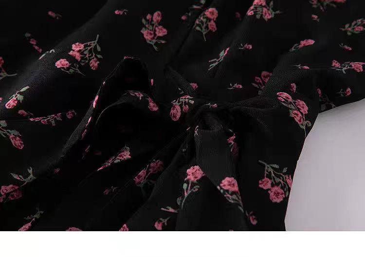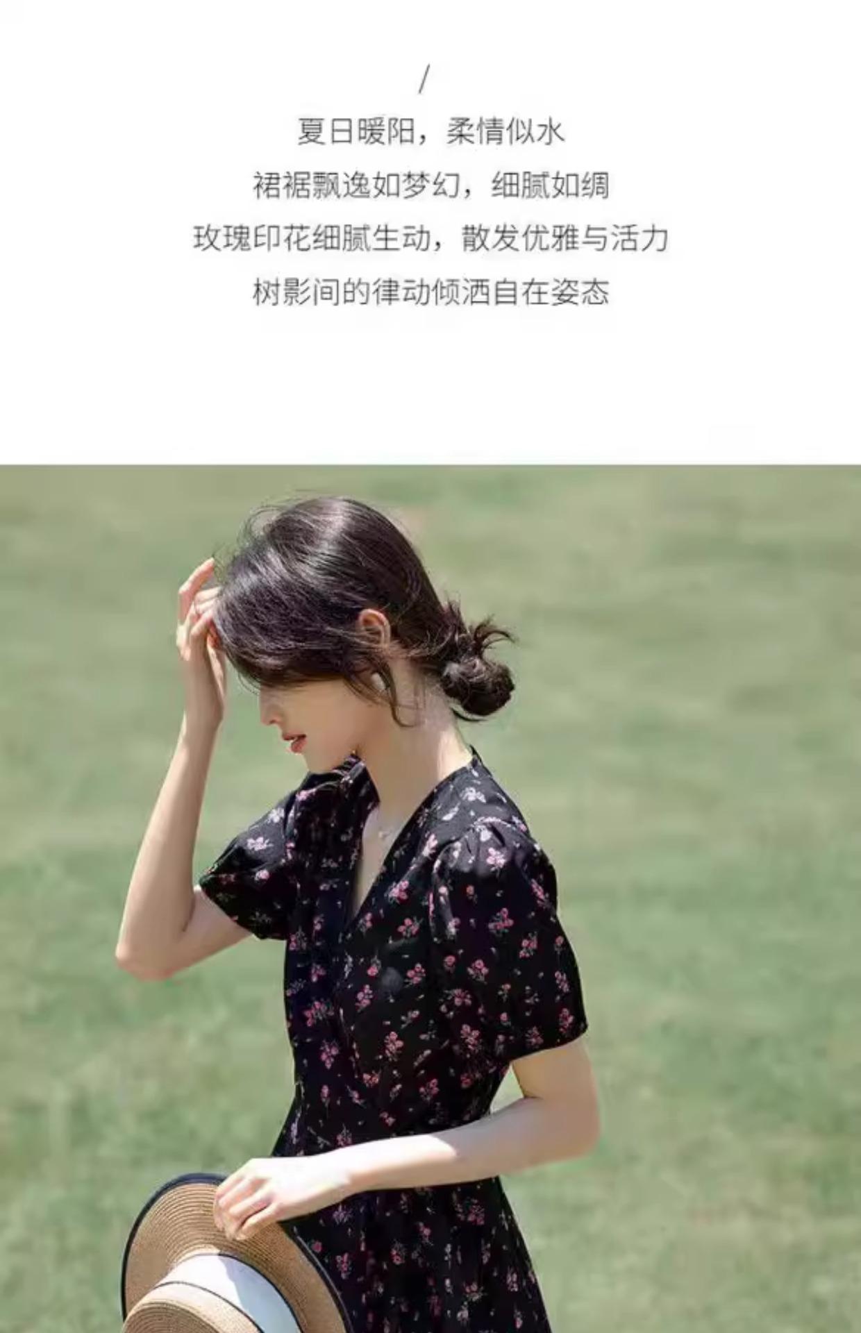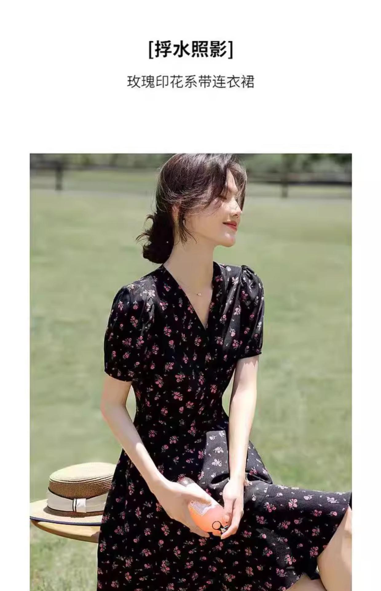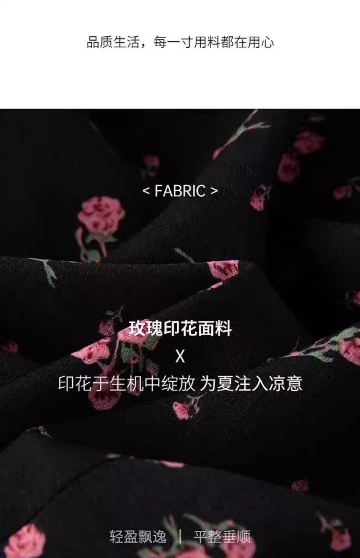 2025 Nuevo Verano Romántico Estampado de Rosas Elegante Vestido Adelgazante con Cordones en la Cintura para Mujer