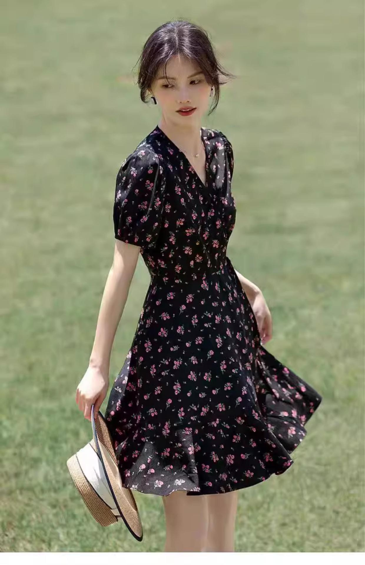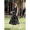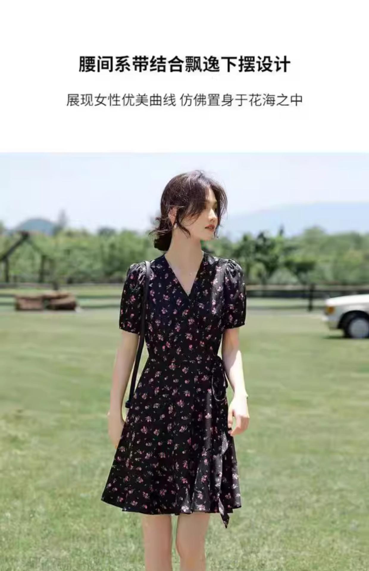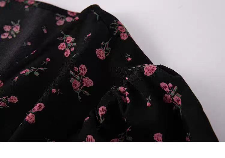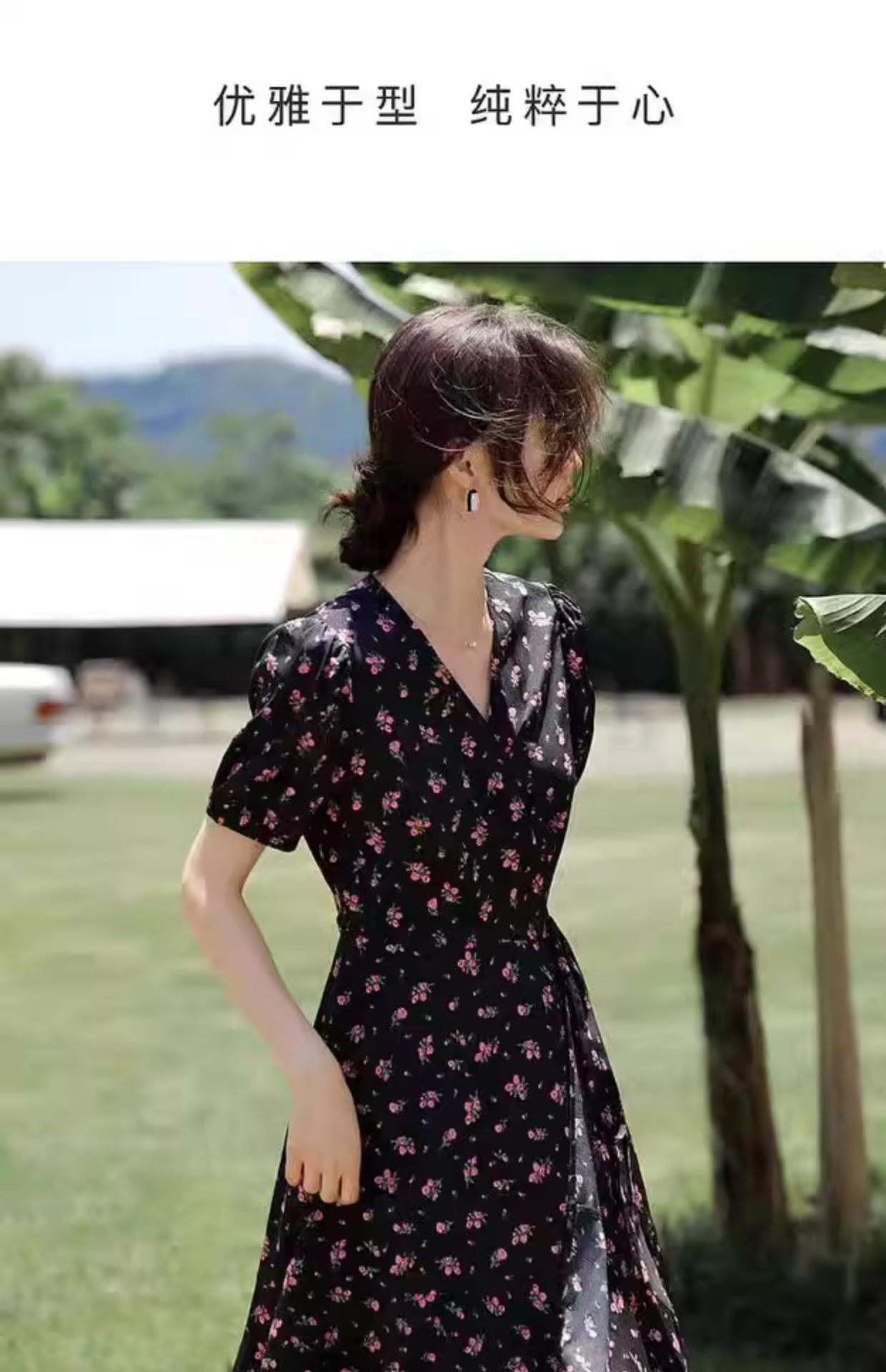 2025 Nuevo Verano Romántico Estampado de Rosas Elegante Vestido Adelgazante con Cordones en la Cintura para Mujer