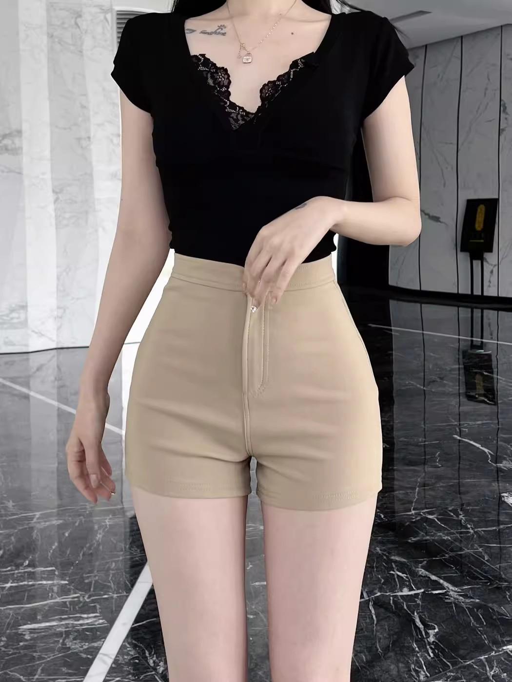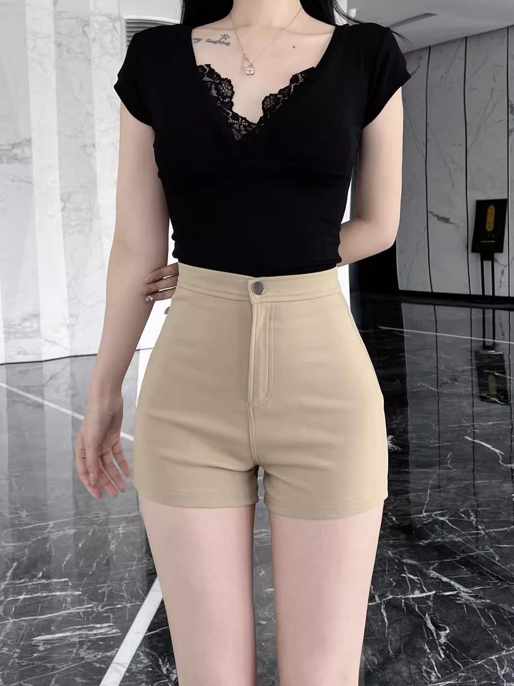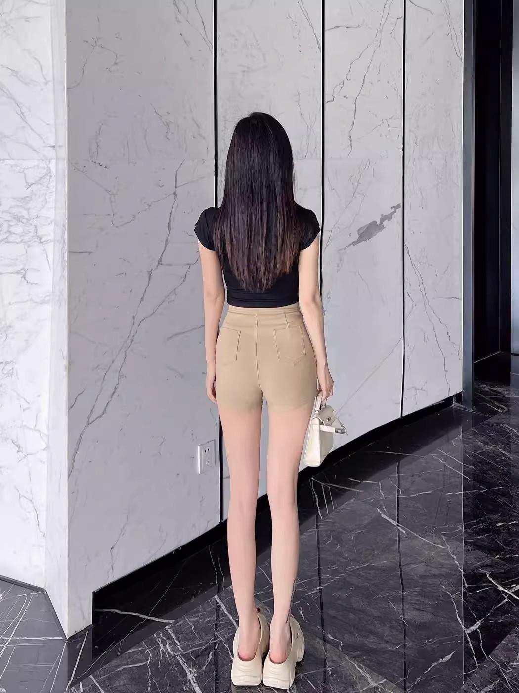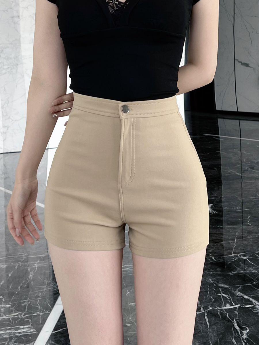 Pantalones cortos de traje de cintura alta para mujer 2025 verano nuevo pequeña chica sexy elásticos adelgazantes que realzan las caderas casual básicos pantalones cortos sexys