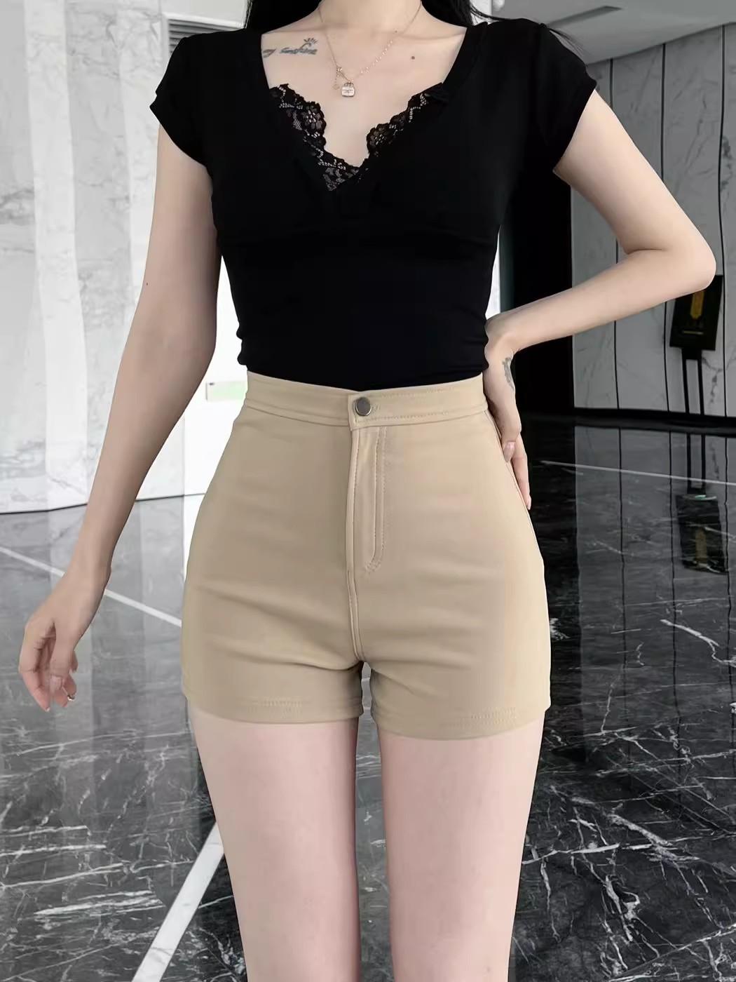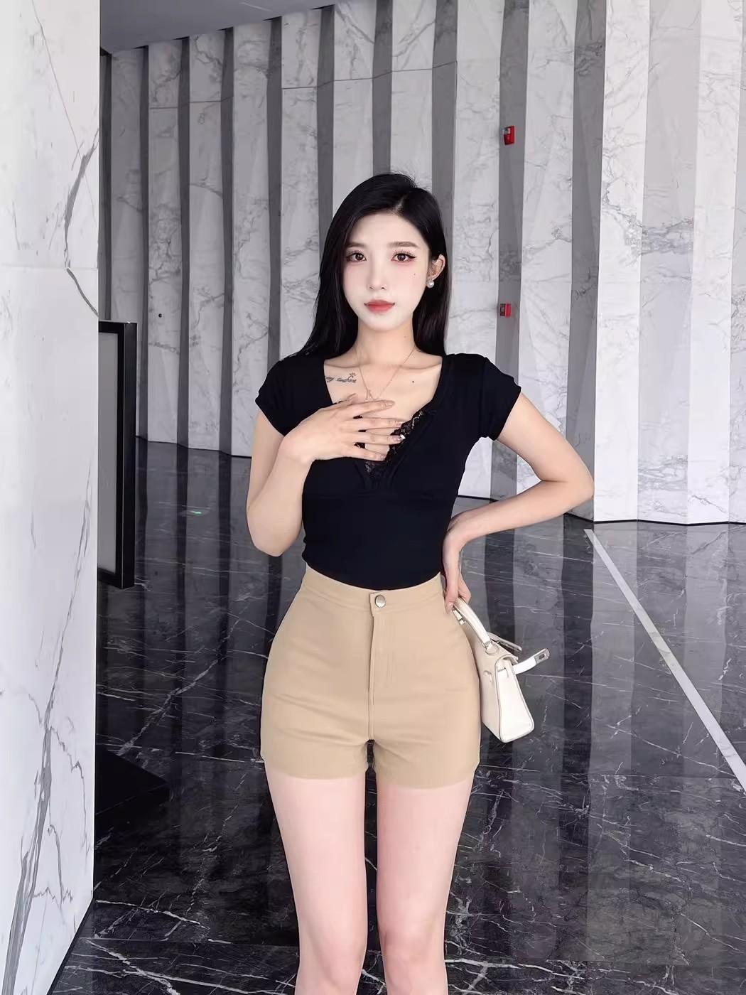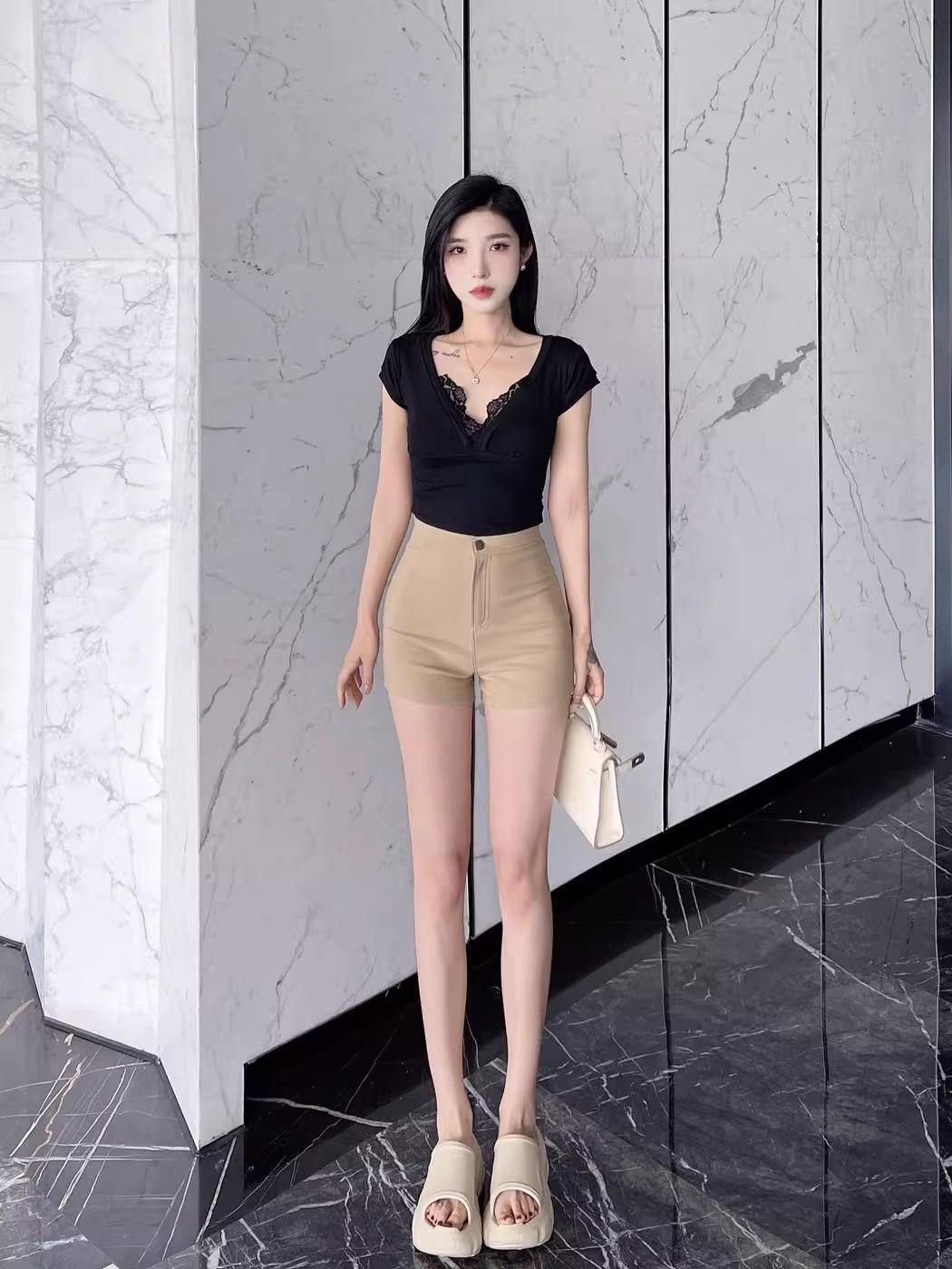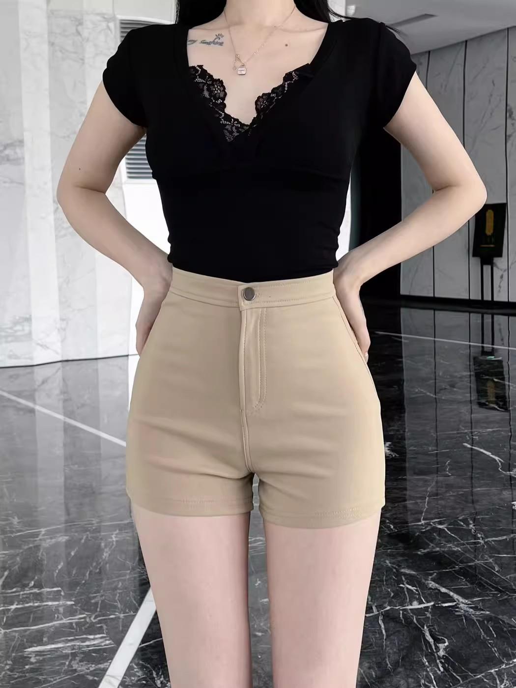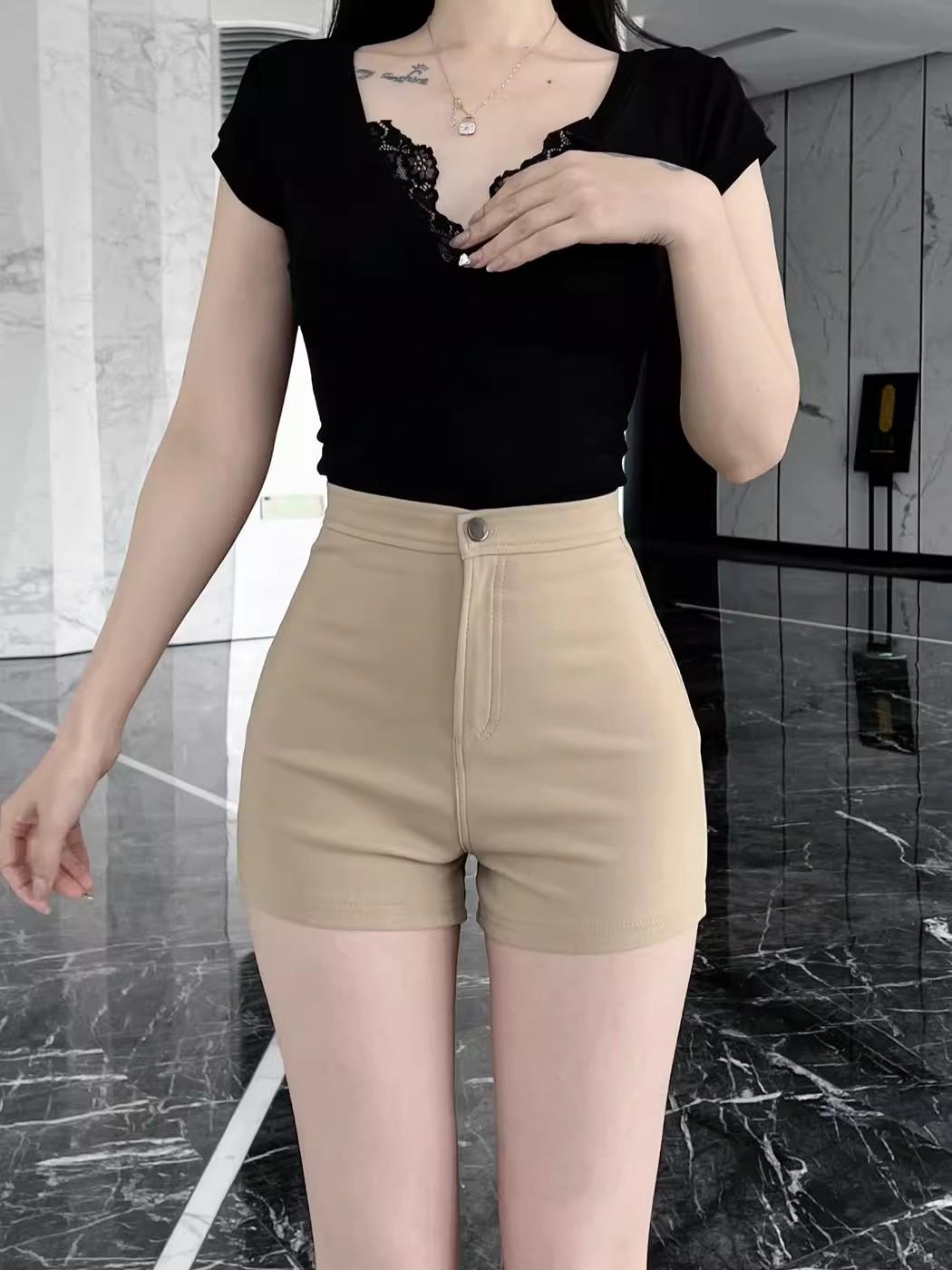 Pantalones cortos de traje de cintura alta para mujer 2025 verano nuevo pequeña chica sexy elásticos adelgazantes que realzan las caderas casual básicos pantalones cortos sexys