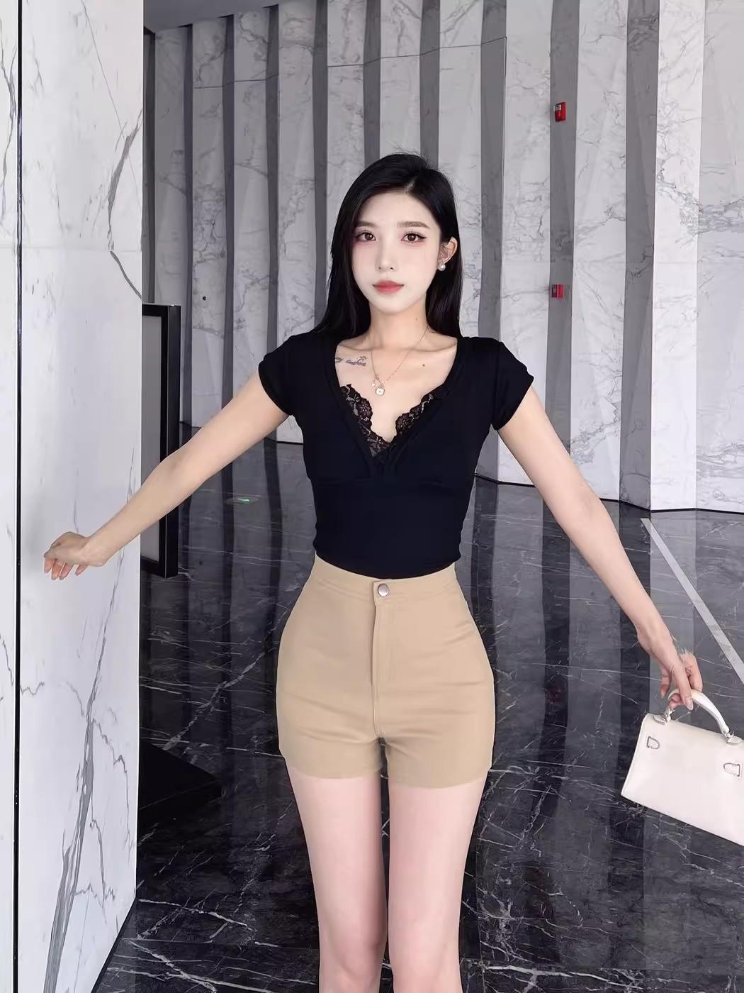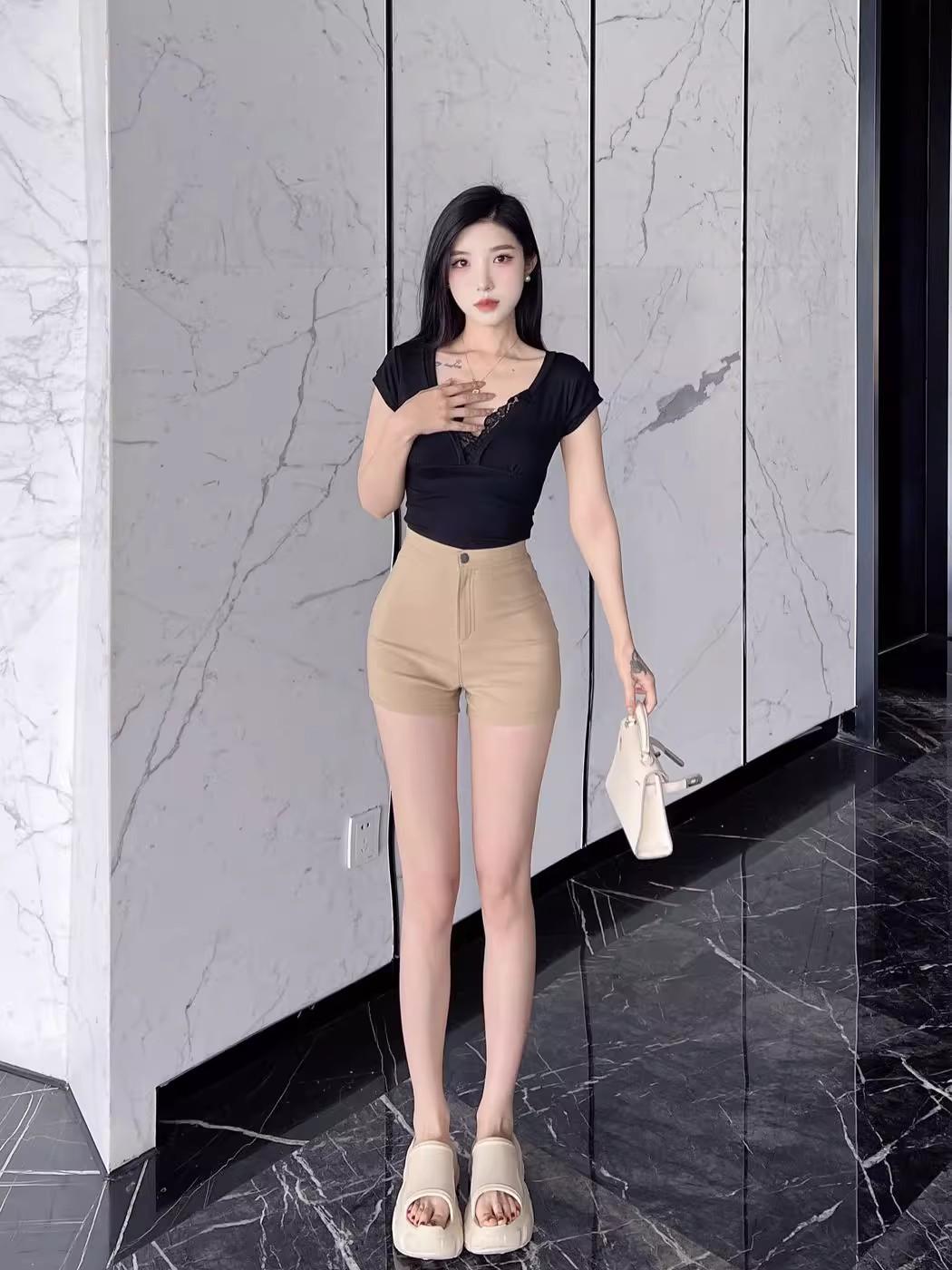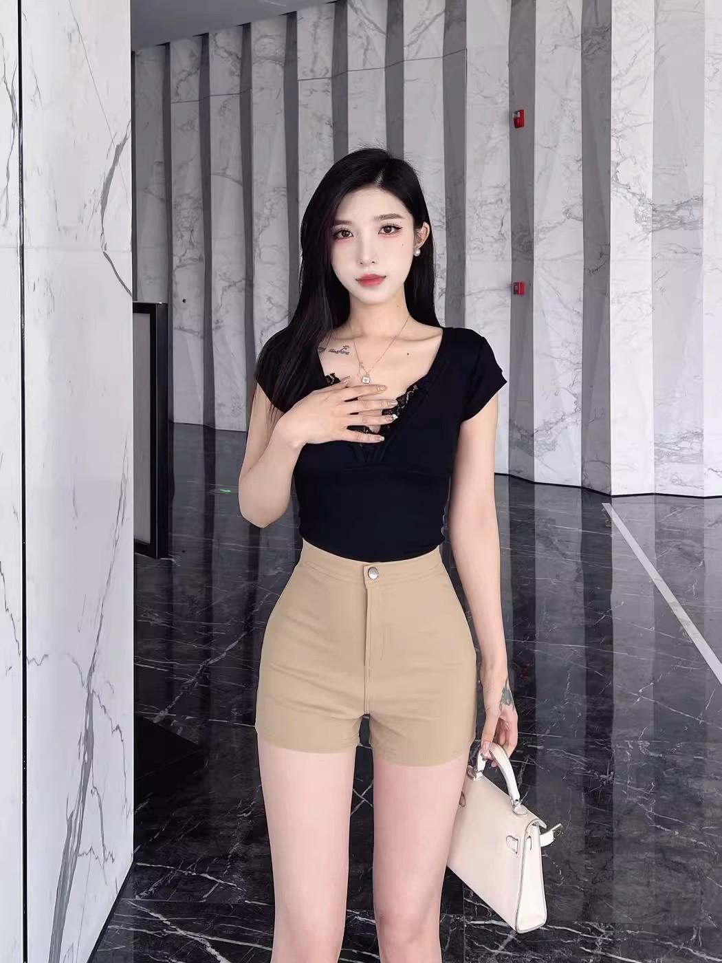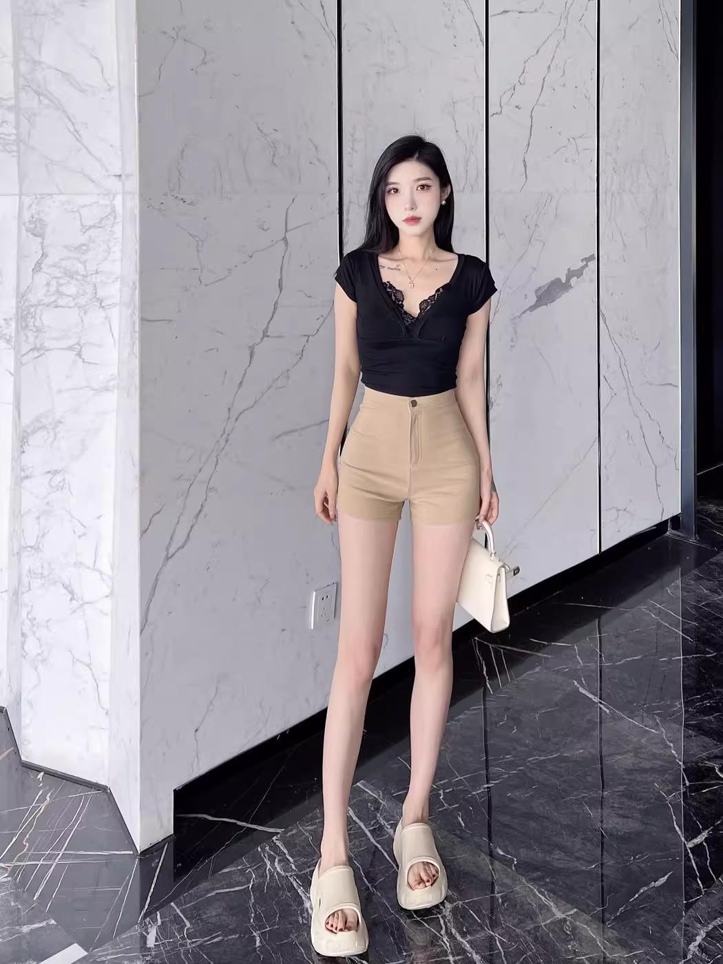 Pantalones cortos de traje de cintura alta para mujer 2025 verano nuevo pequeña chica sexy elásticos adelgazantes que realzan las caderas casual básicos pantalones cortos sexys