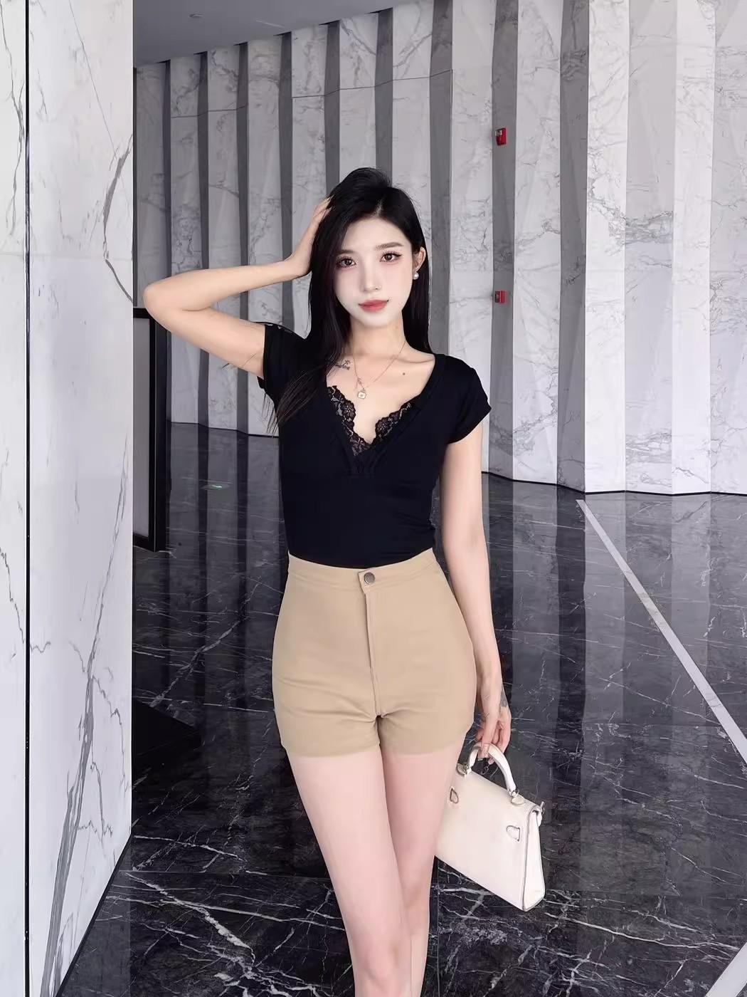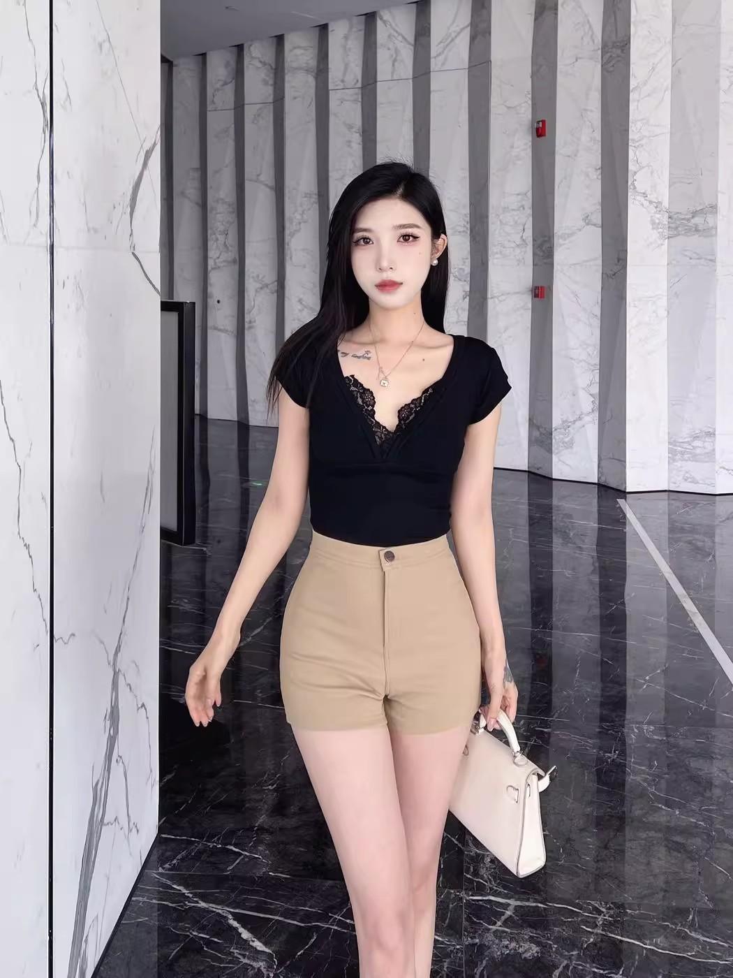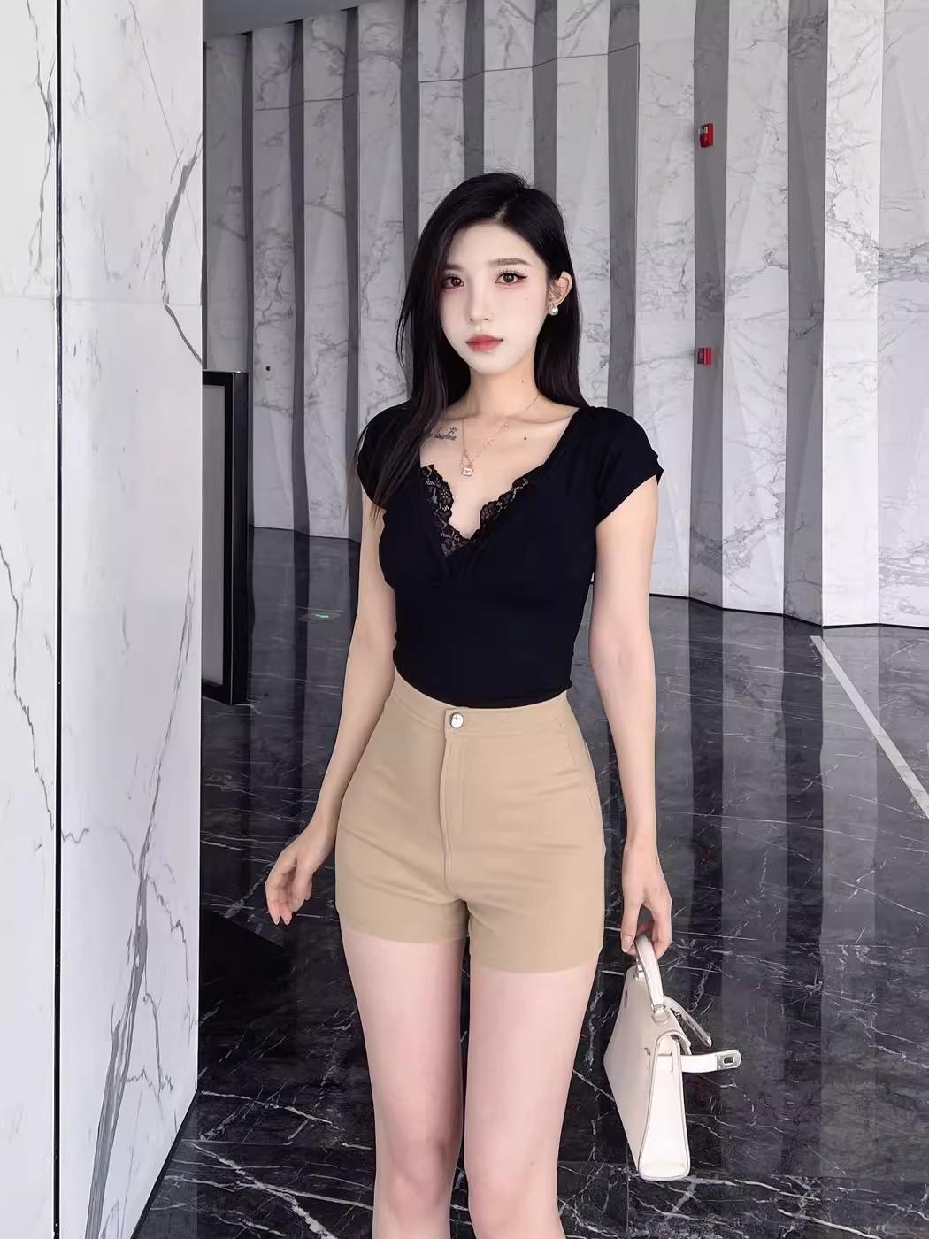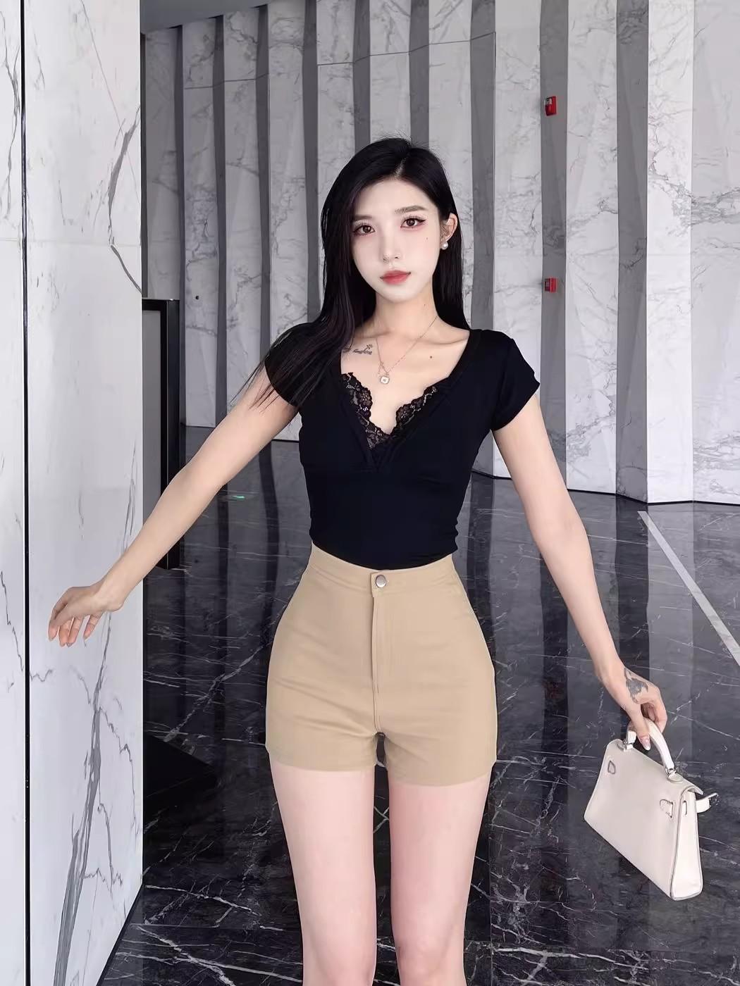 Pantalones cortos de traje de cintura alta para mujer 2025 verano nuevo pequeña chica sexy elásticos adelgazantes que realzan las caderas casual básicos pantalones cortos sexys