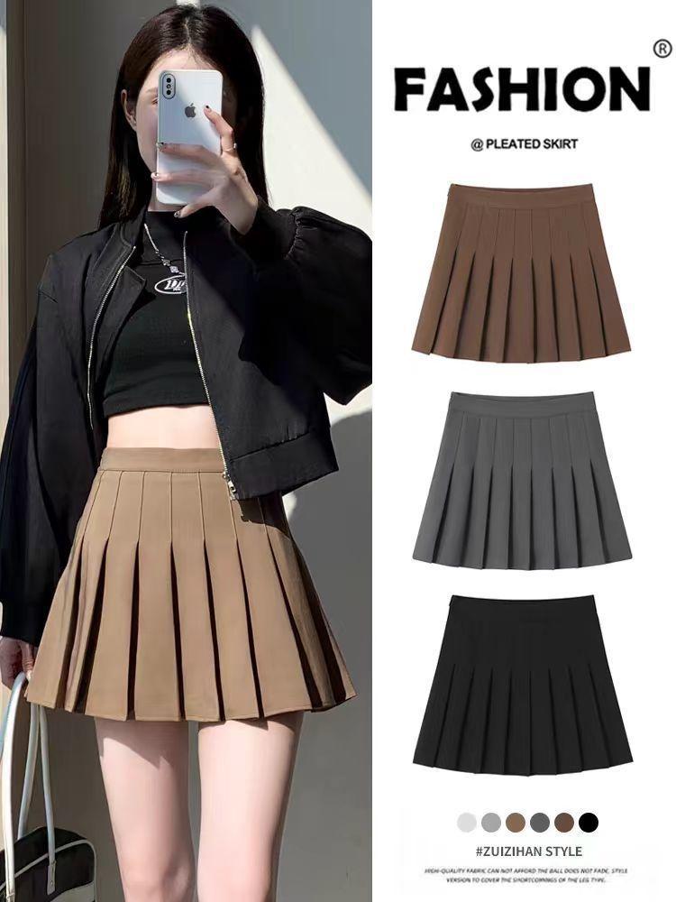 Falda plisada popular para mujer en otoño e invierno Falda de nuevo estilo Talla grande Falda acampanada Cintura alta Slim Versátil Pantalones cortos para mujer