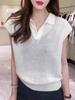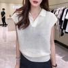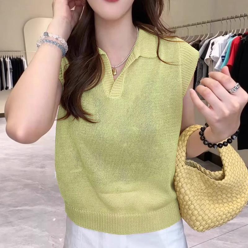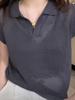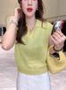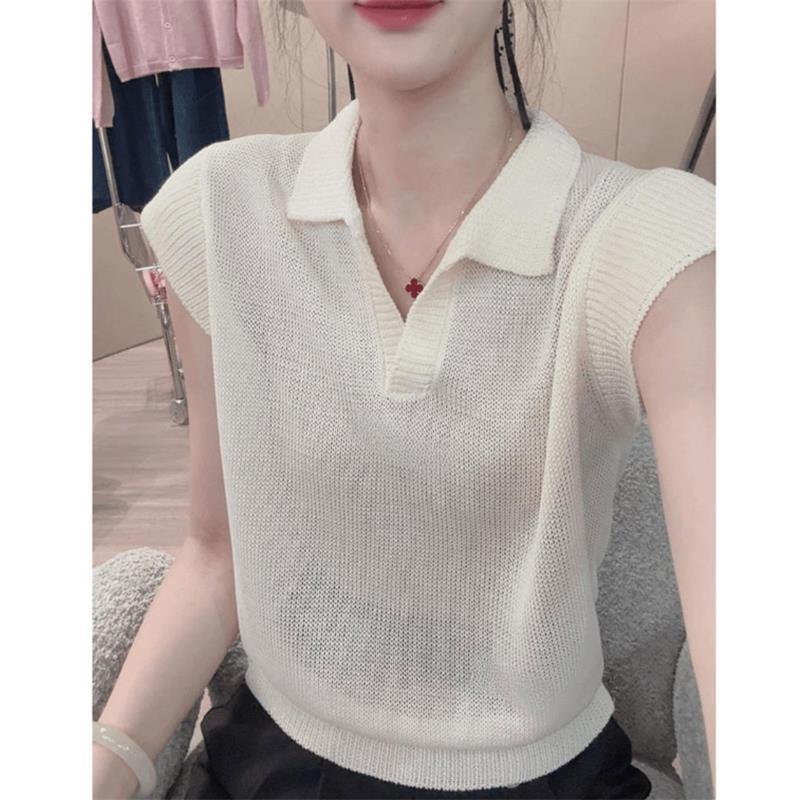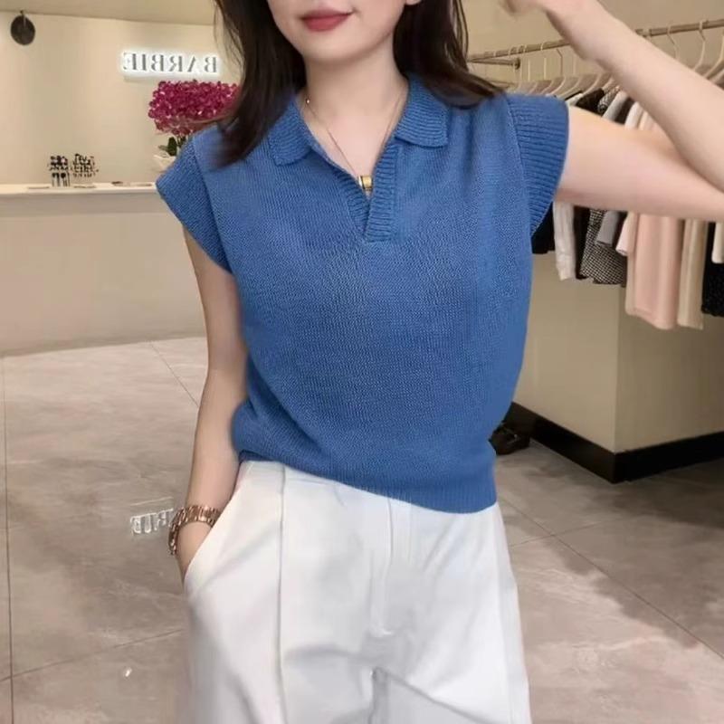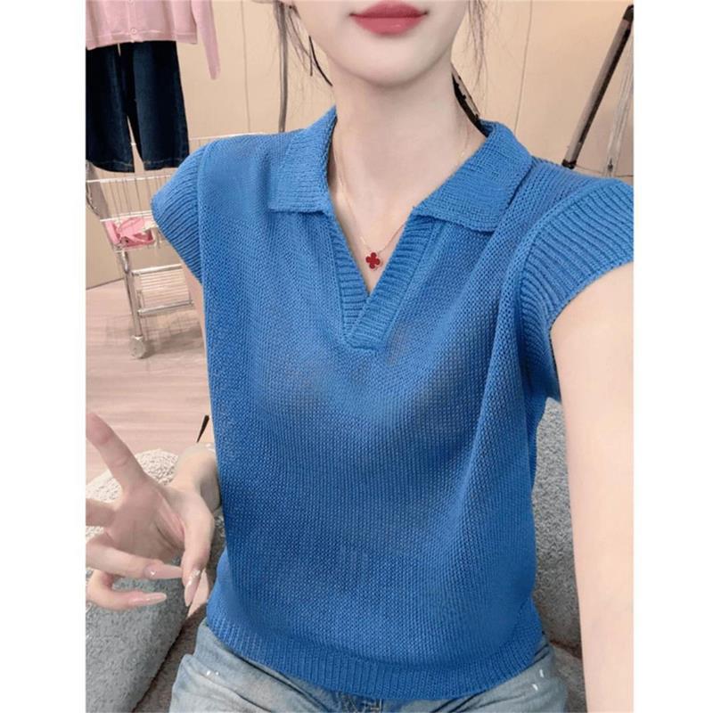Polo de Punto Estilo Coreano Color Puro Manga Corta Sencillo Verano 2025 Nuevo Estilo Elegante Mangas Vuelo Top Versátil Look Adelgazante