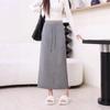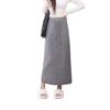 Falda Elástica Simple de Temperamento Gris con Doble Cordón para Mujer Otoño 2025 Nueva Moda Versátil Falda Midi con Abertura