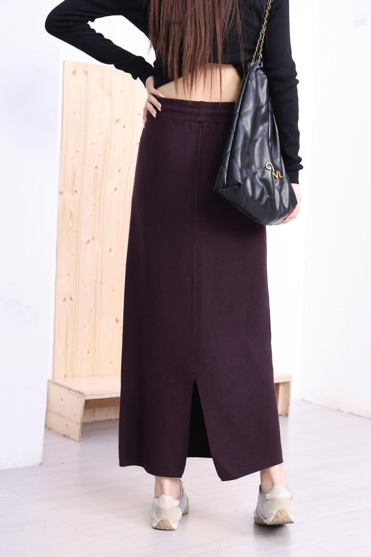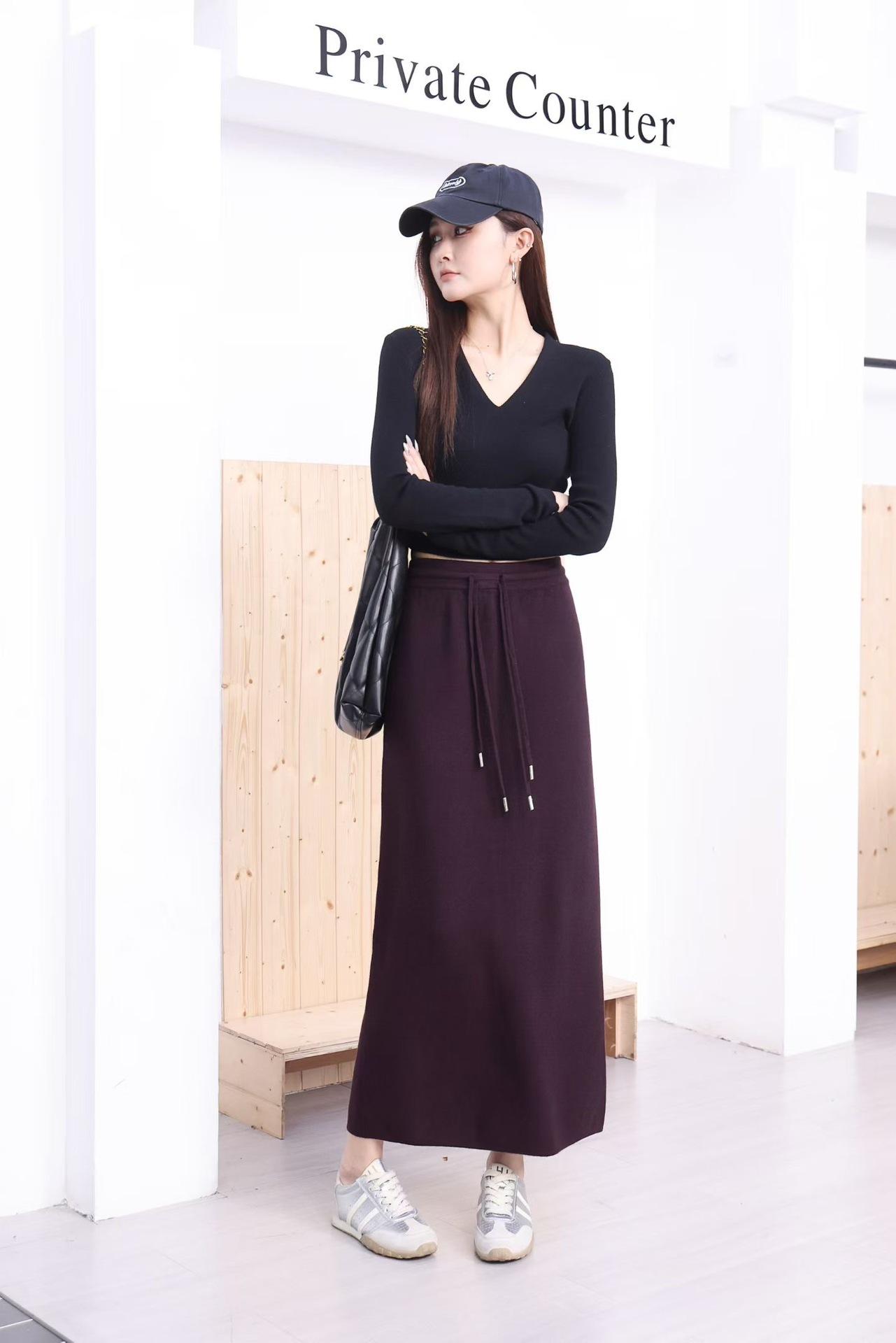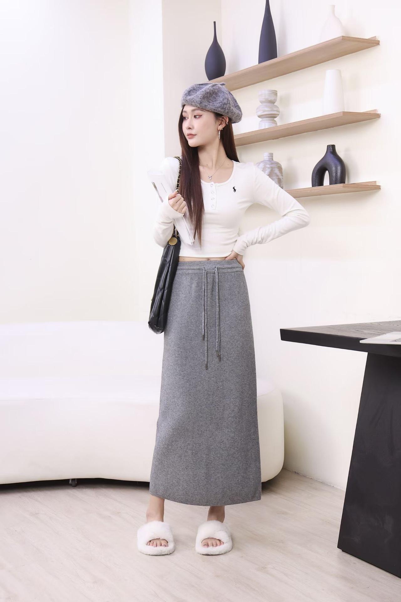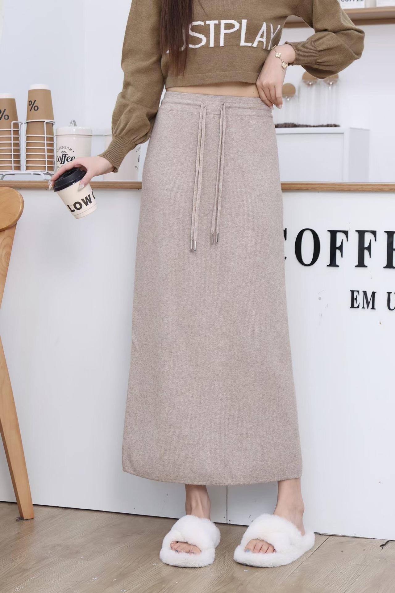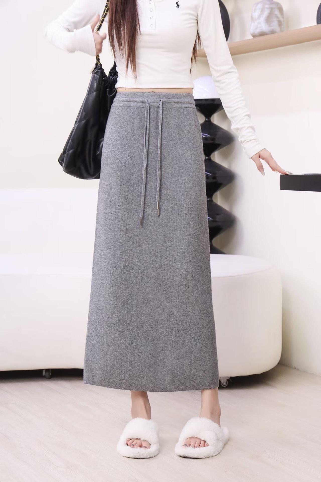 Falda Minimalista de Punto Elástica con Doble Cordón Ajustable de Largo Medio para Mujer 2025 Otoño/Invierno Nueva Moda Falda de Lana con Abertura