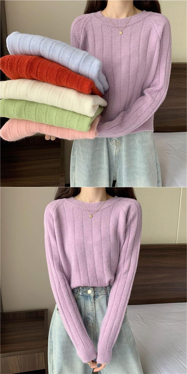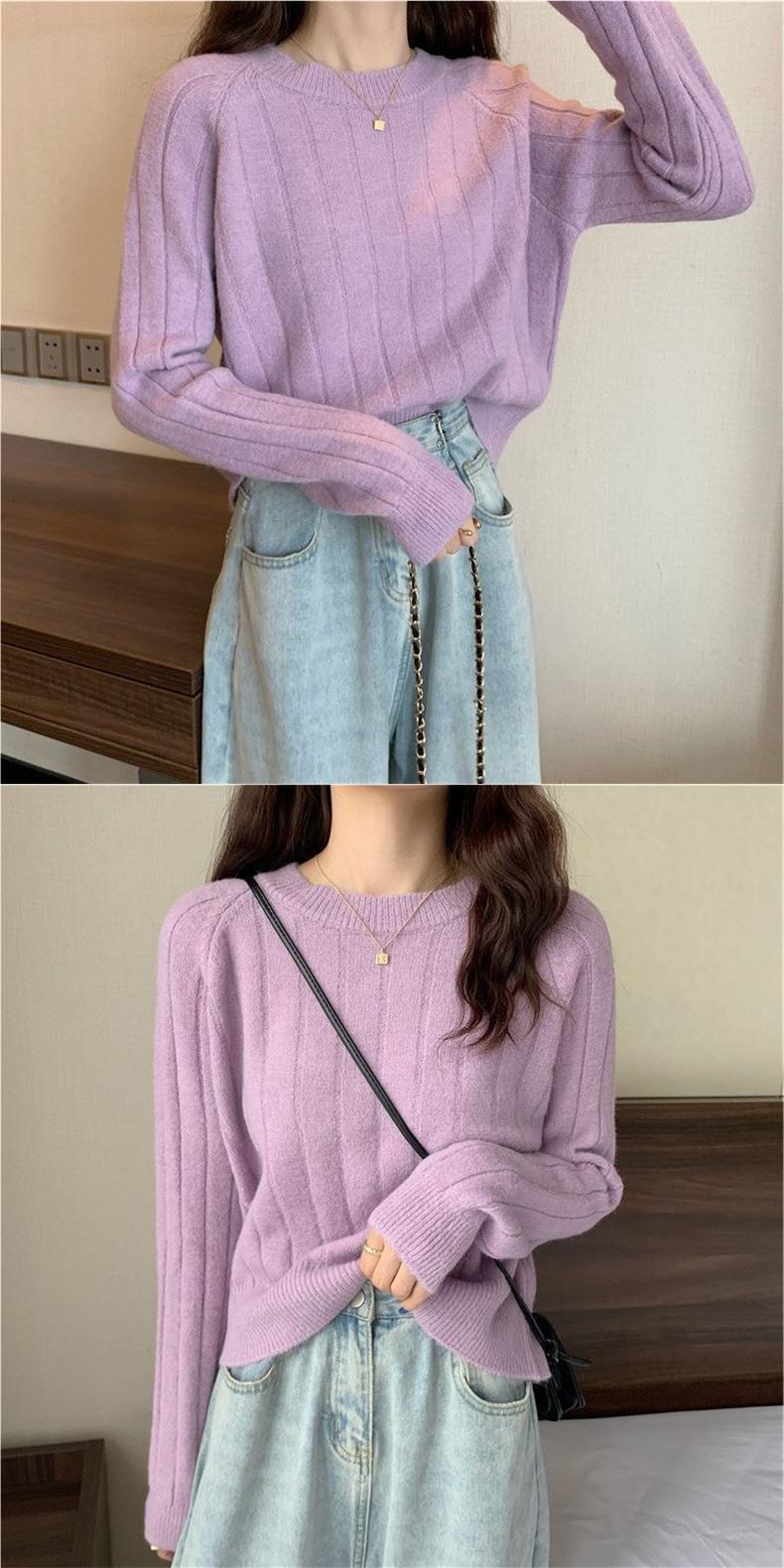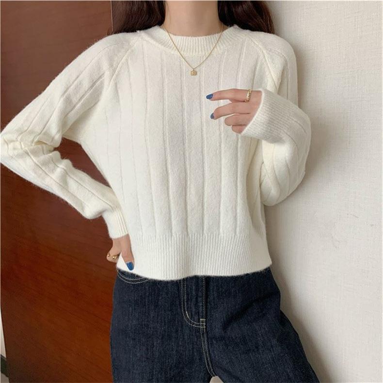 Suéter holgado y de estilo perezoso con cuello redondo para mujer, diseño de nicho con sentido del diseño para otoño e invierno, punto base para llevar debajo, top moderno