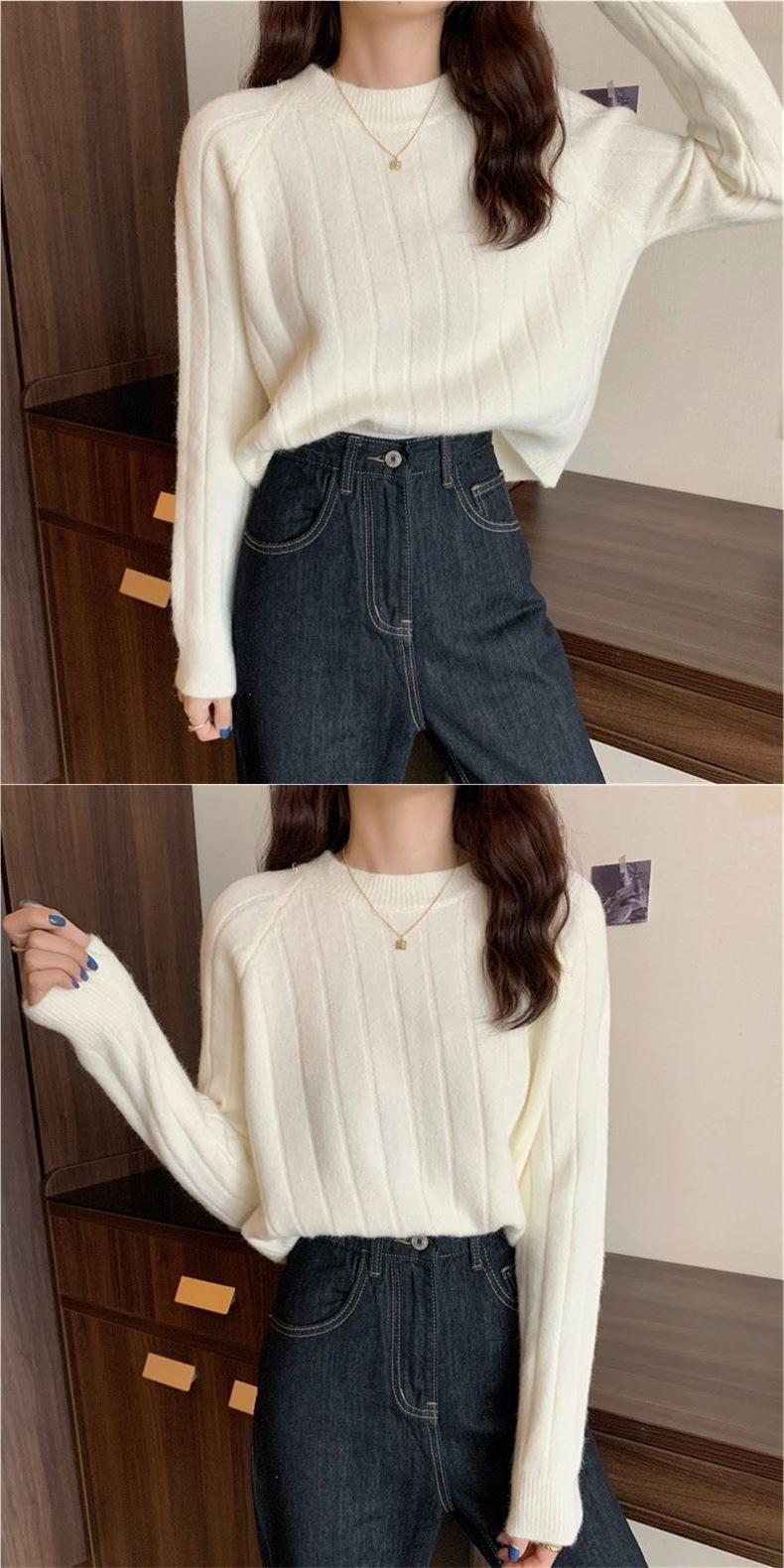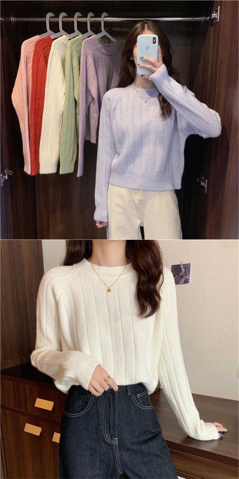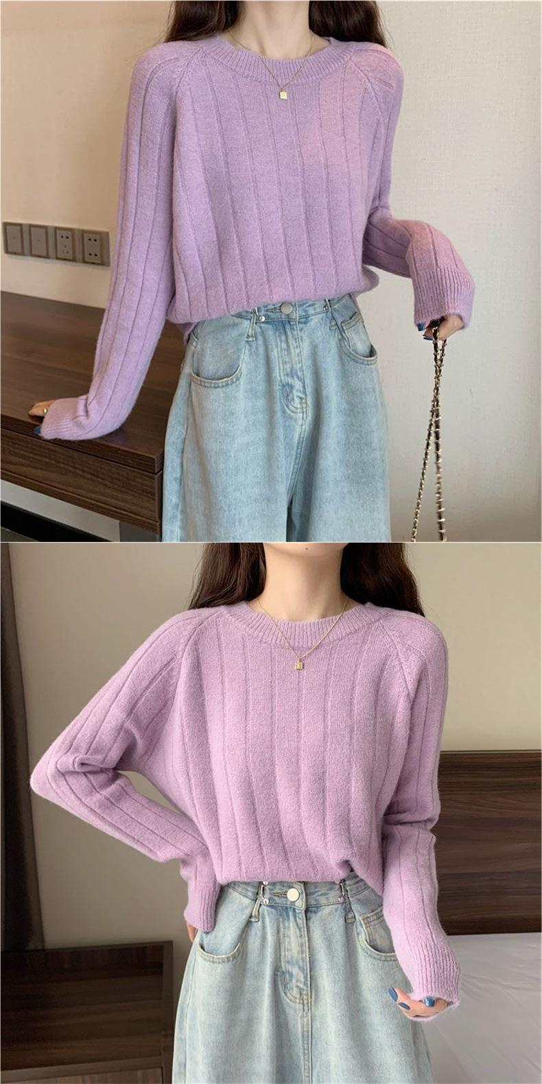 Suéter holgado y de estilo perezoso con cuello redondo para mujer, diseño de nicho con sentido del diseño para otoño e invierno, punto base para llevar debajo, top moderno