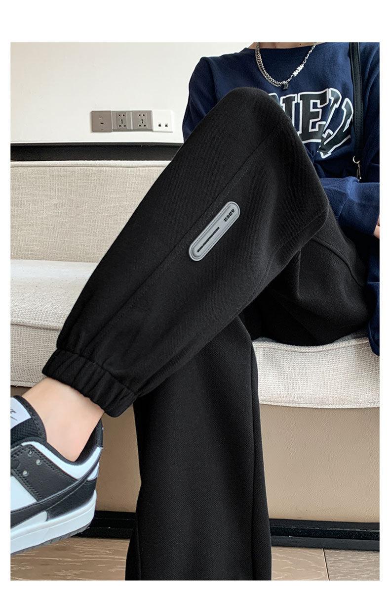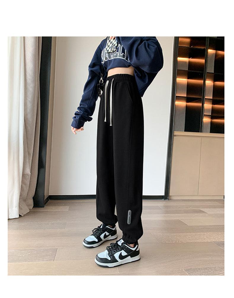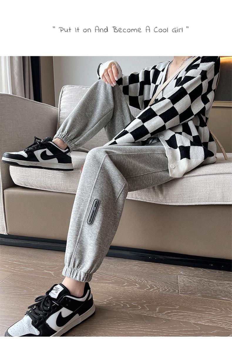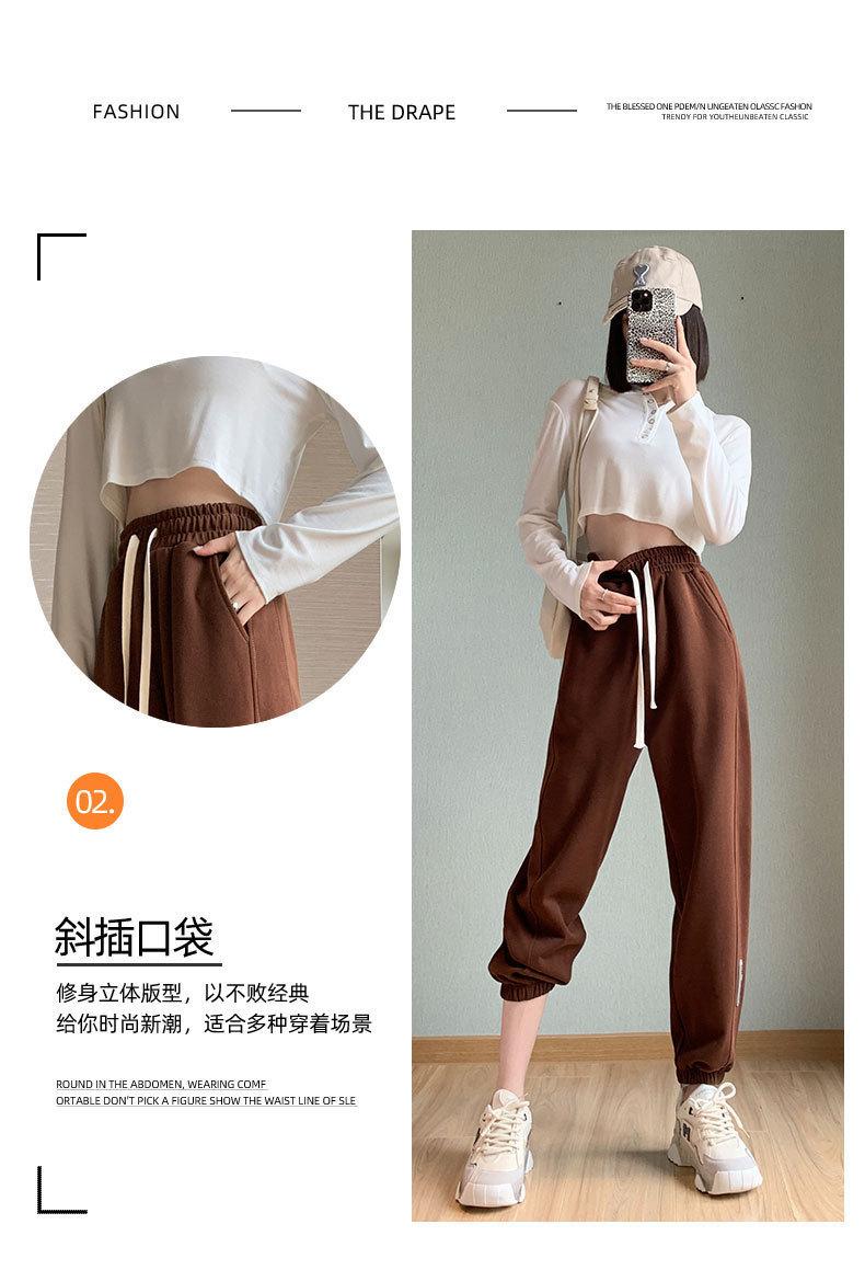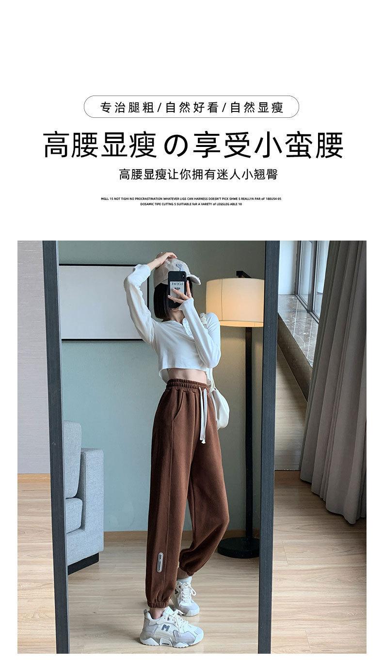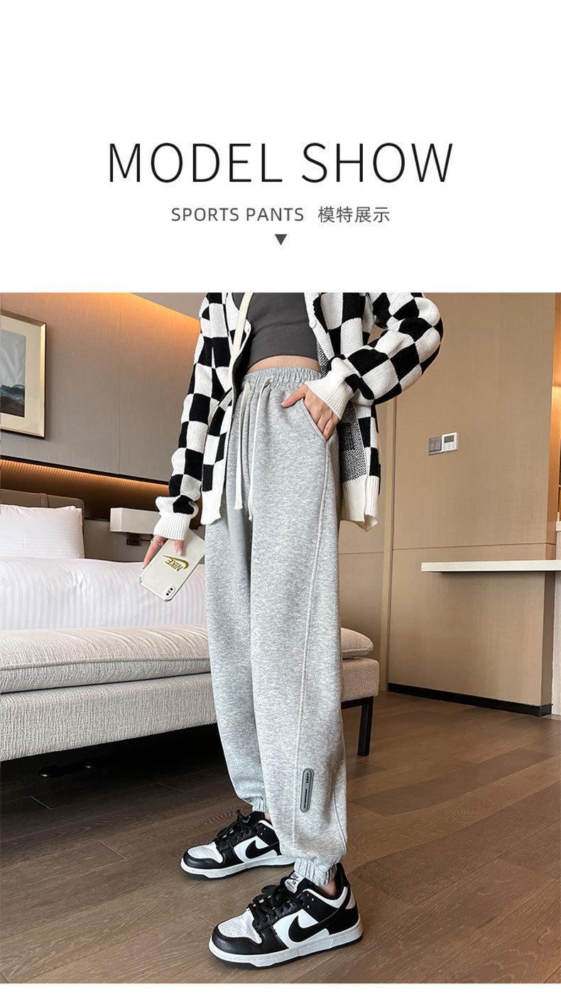 Pantalón deportivo pequeño gris para mujer otoño e invierno 2023 Nuevo Cintura alta holgado adelgazante forrado con polar tobillero tipo harén